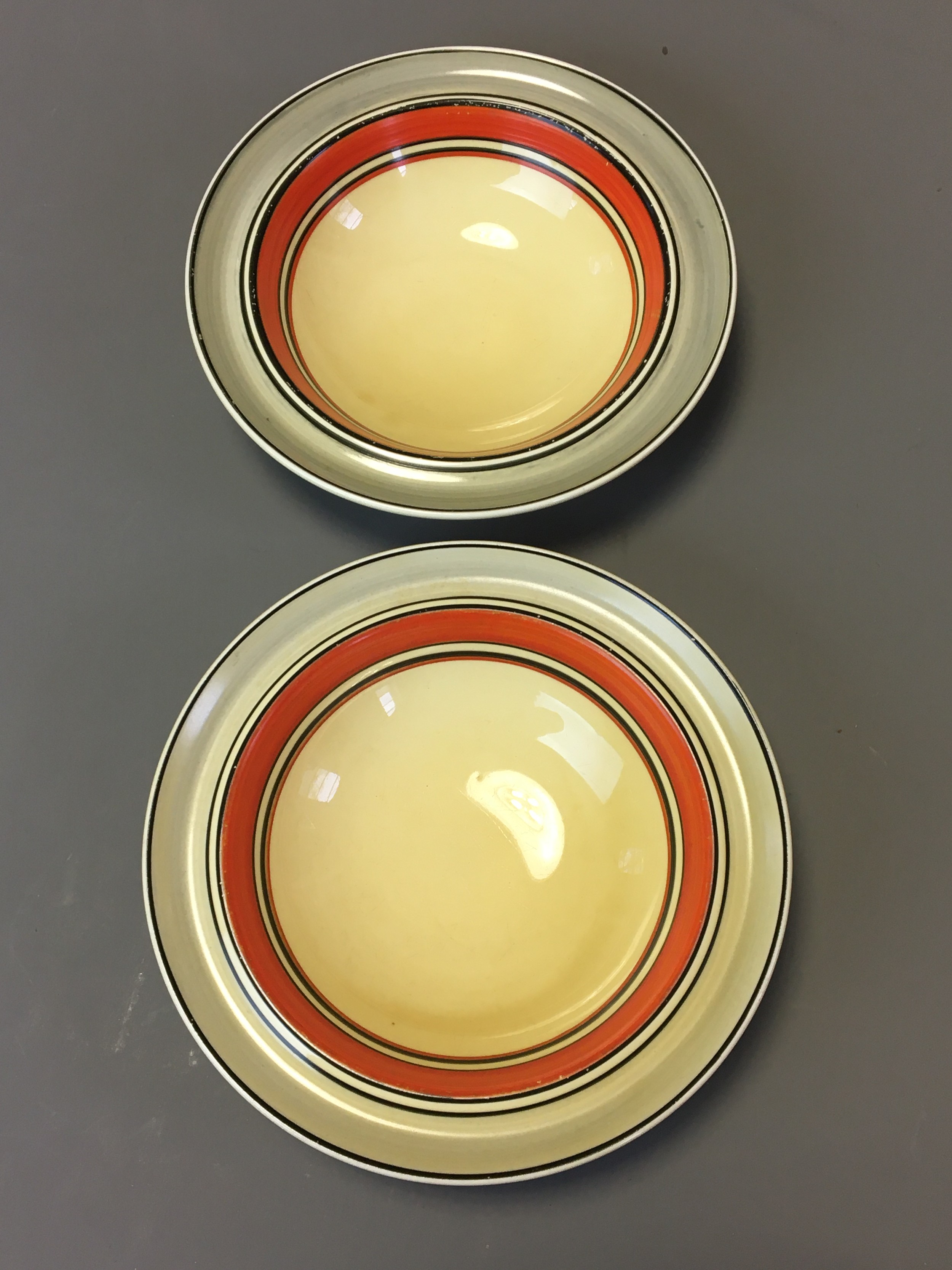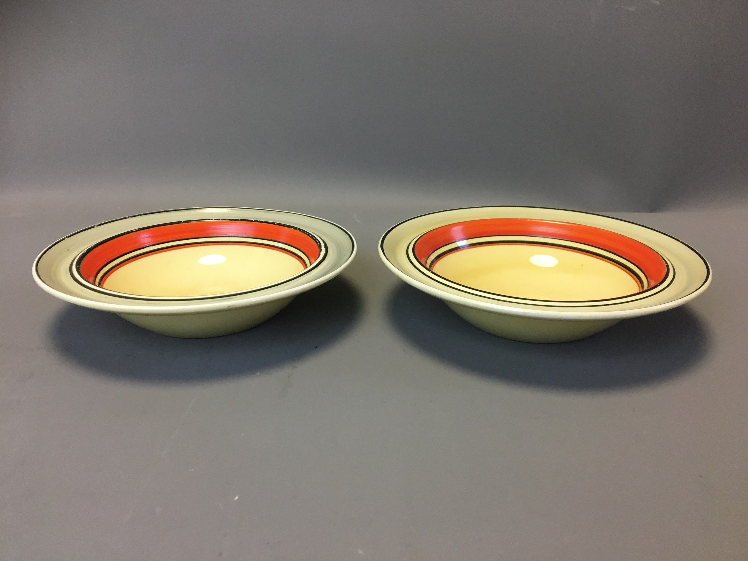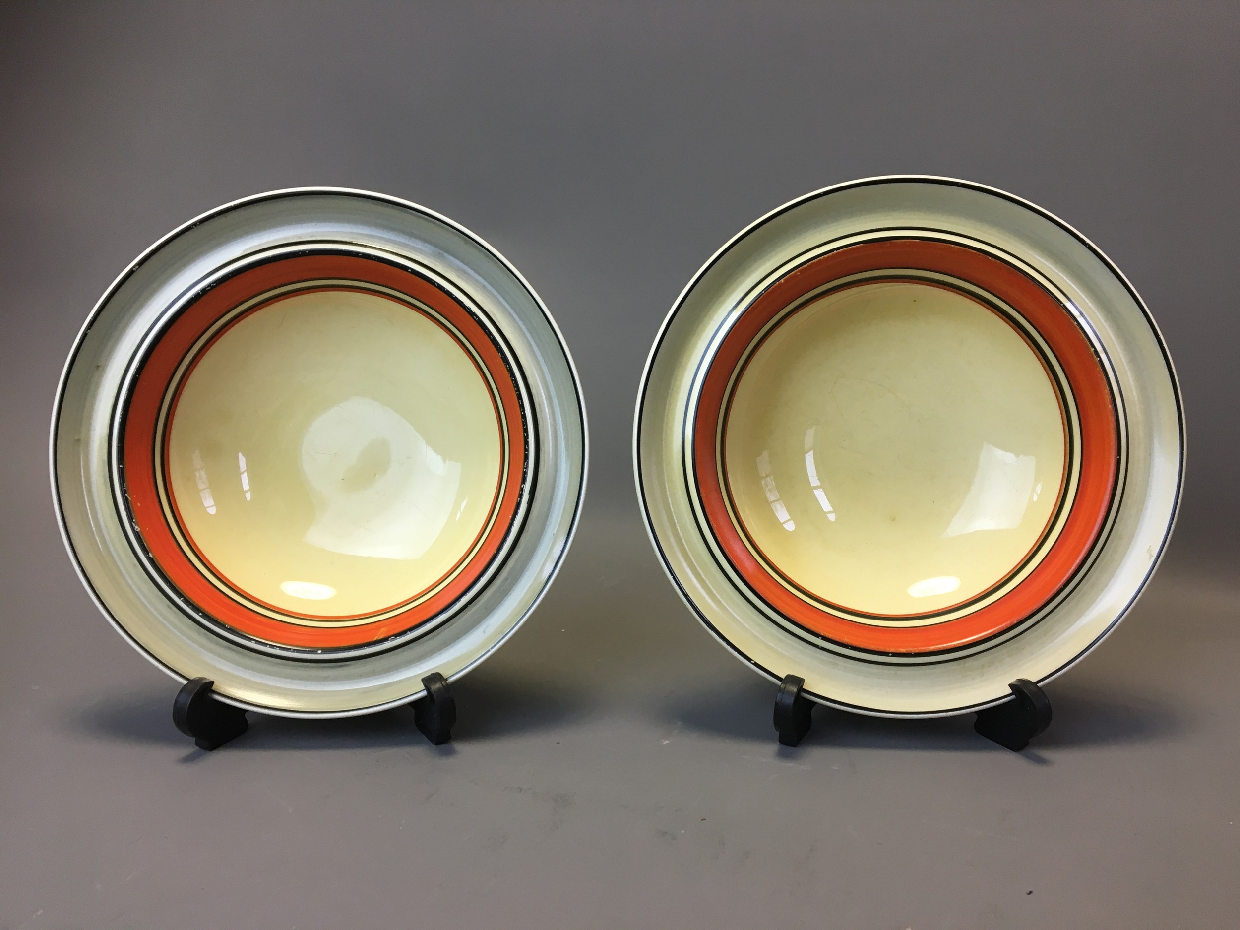 Art Deco - Pair of Clarice Cliff Bizarre Range Banded Bowls.Dia 16cm