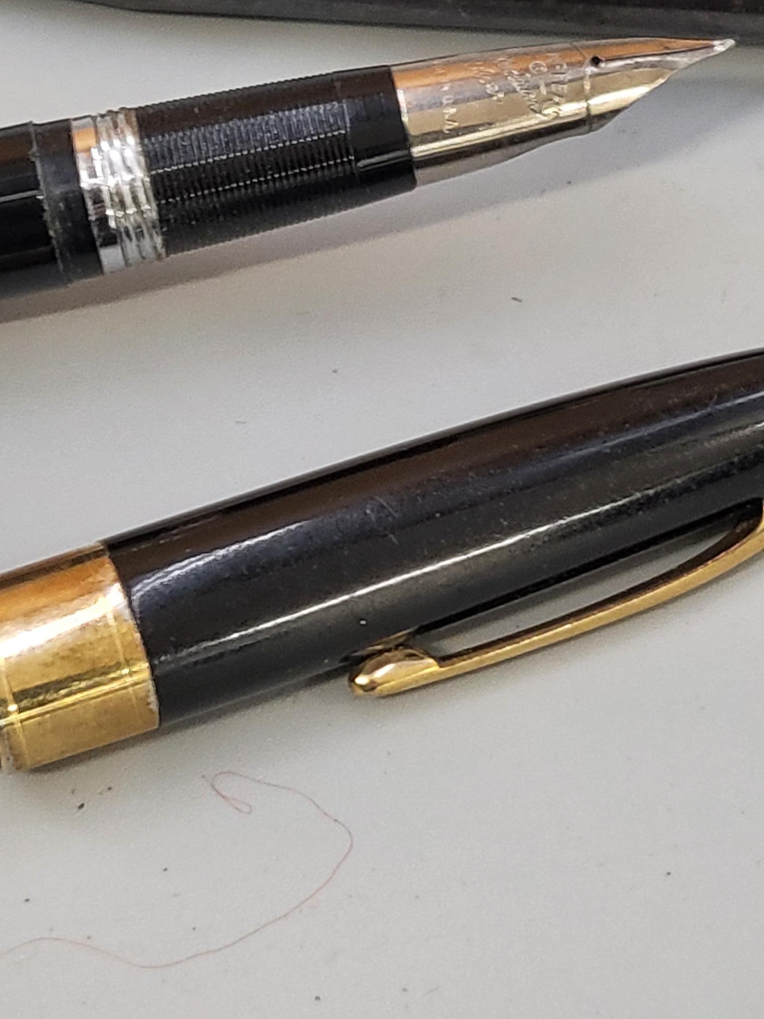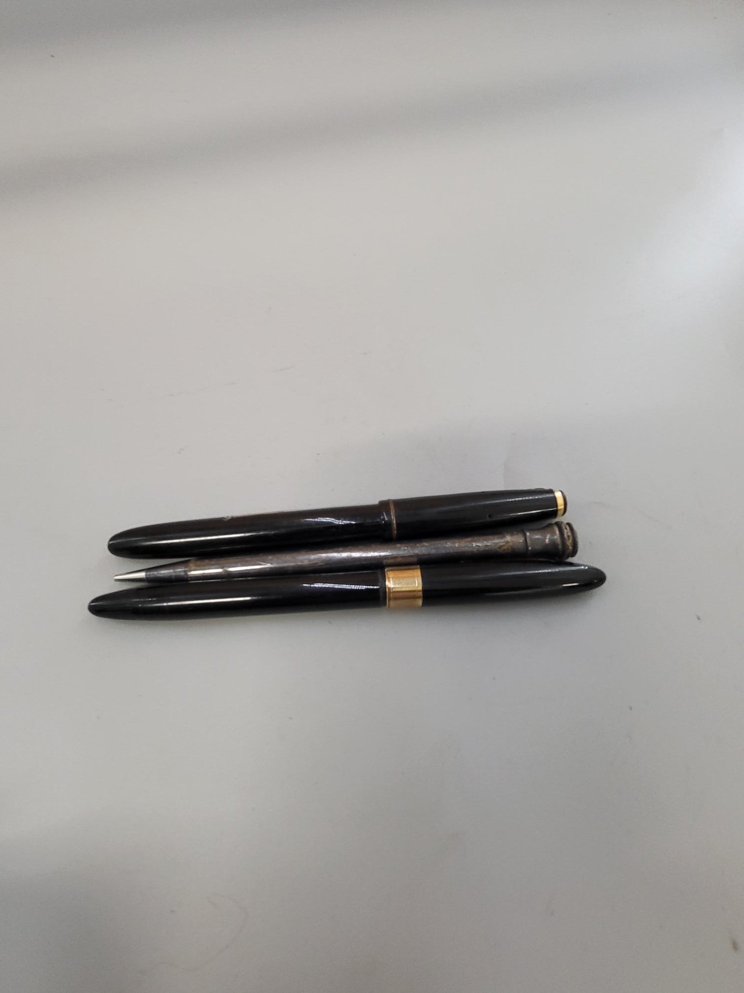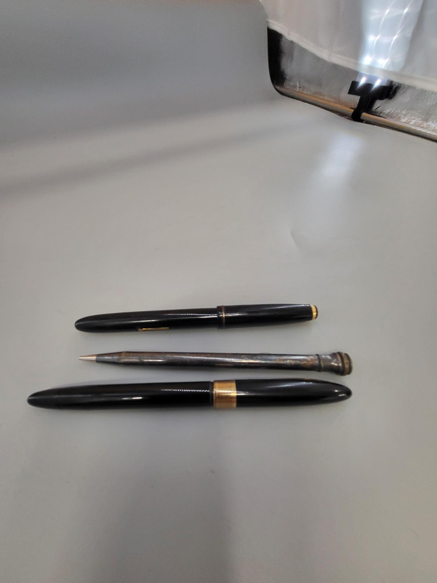 Three Early Pens Includes Sheaffer Palladium Silver, Eversharp Silver Plated, Onoto Penmaster De la Ru