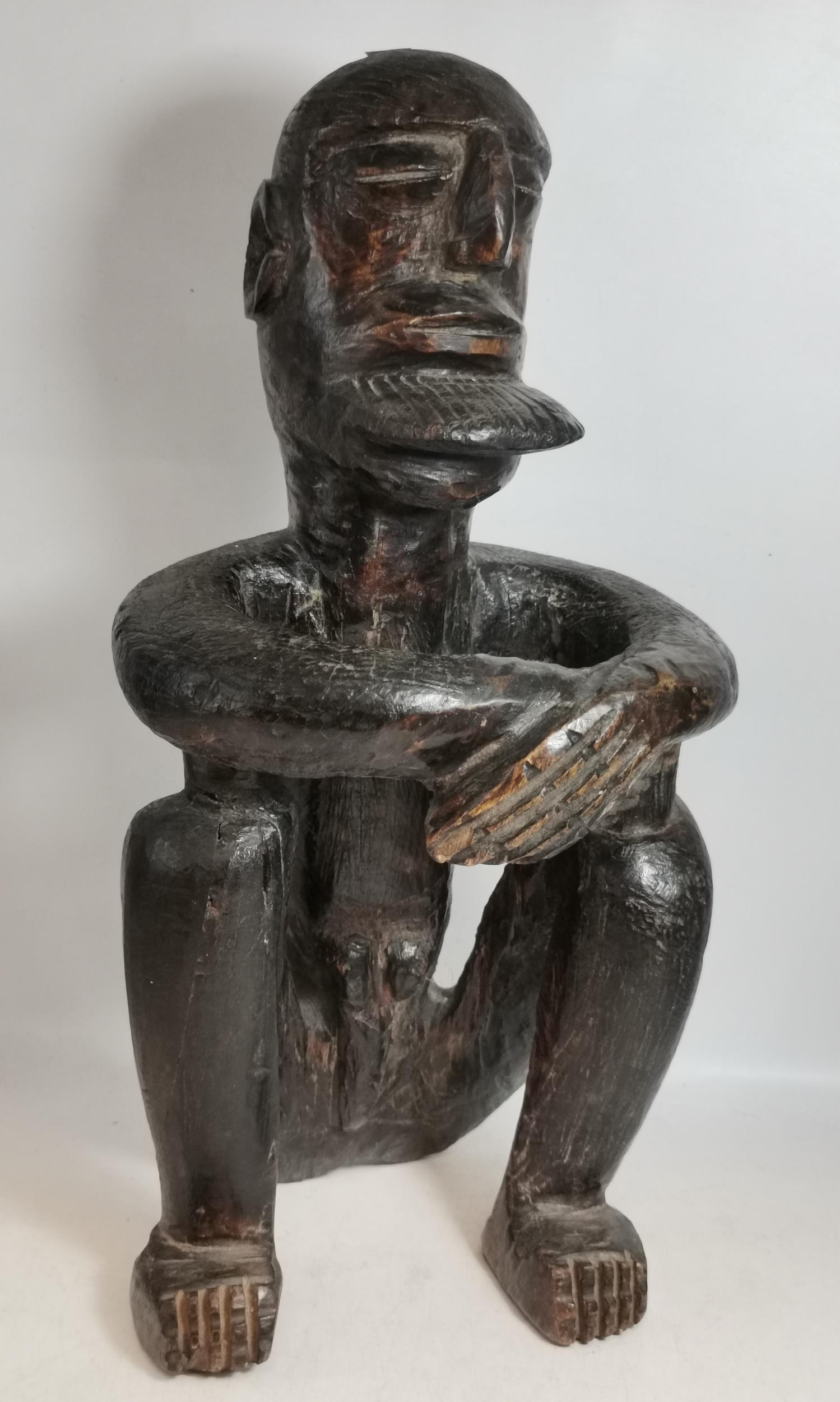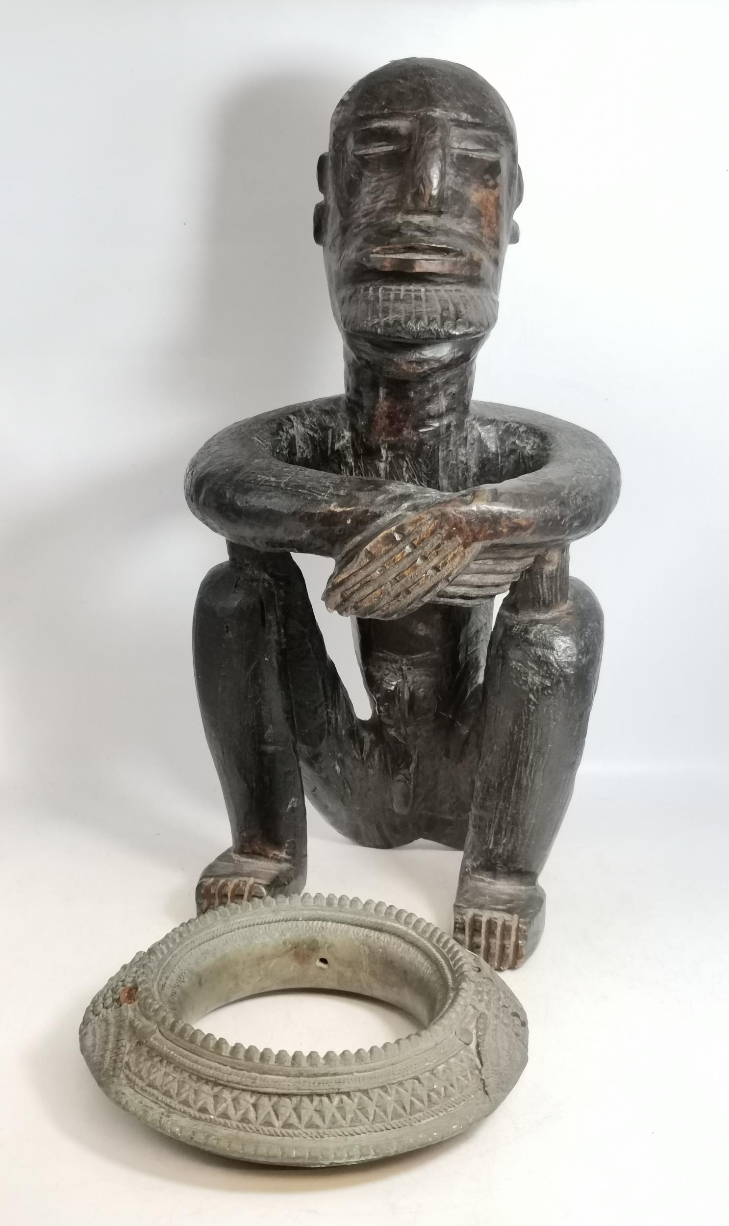 A Seated African Carved Figure plus 18/19c African Slave Bangle/Anklet