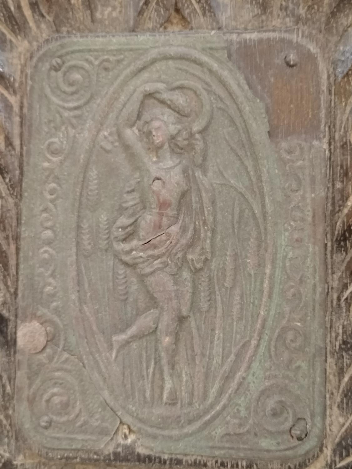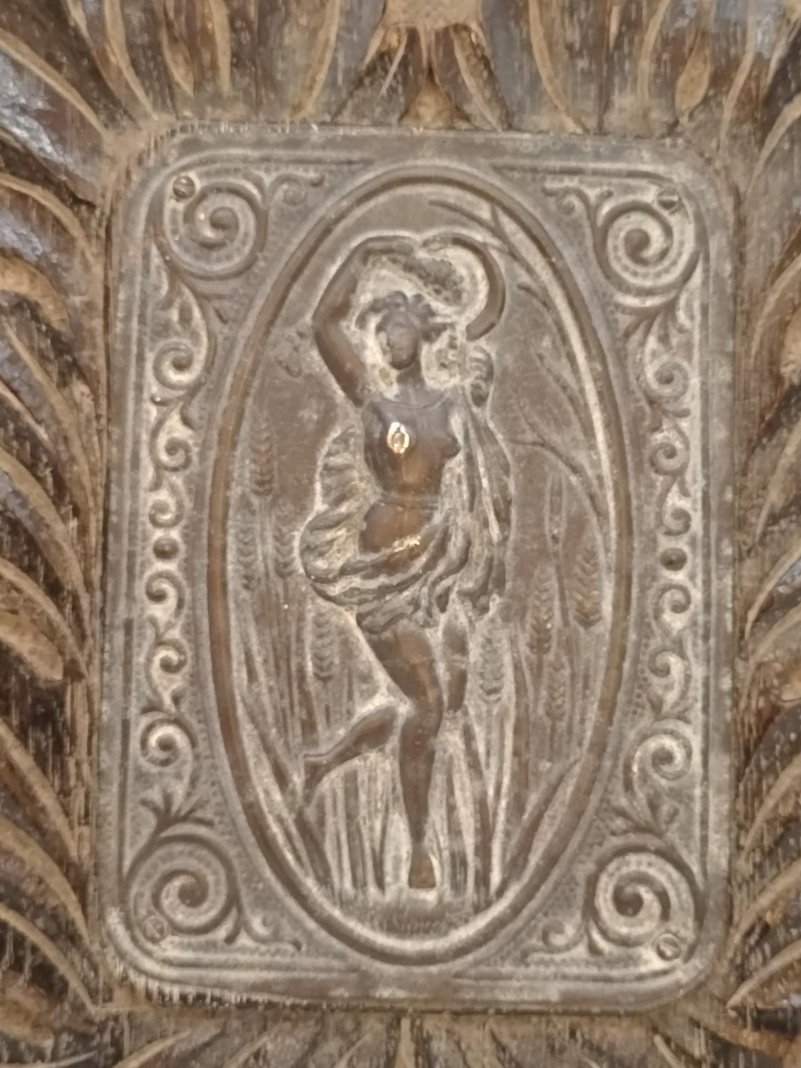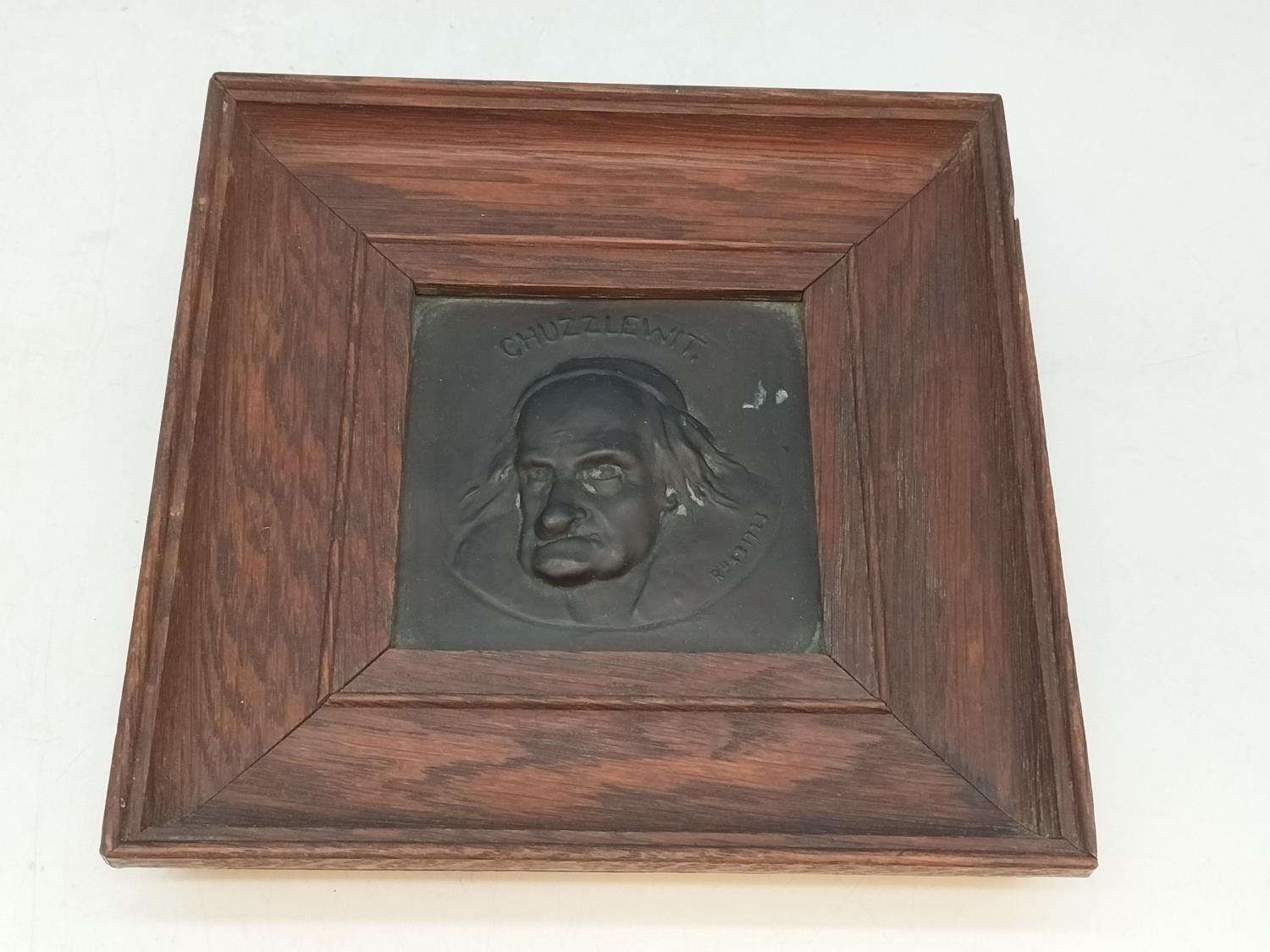 2 x Carved Wooden Framed Plaques with Metal Panel of the Goddess Diana (20cm x 24cm) plus a Wood Framed Metal Panel of Martin Chuzzlewit (18cm x 18cm)