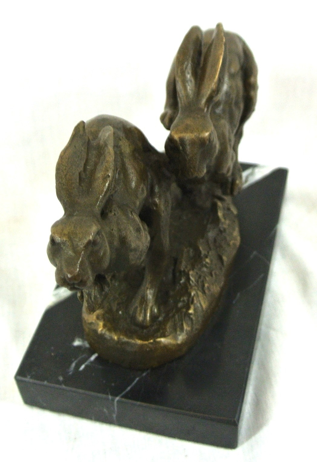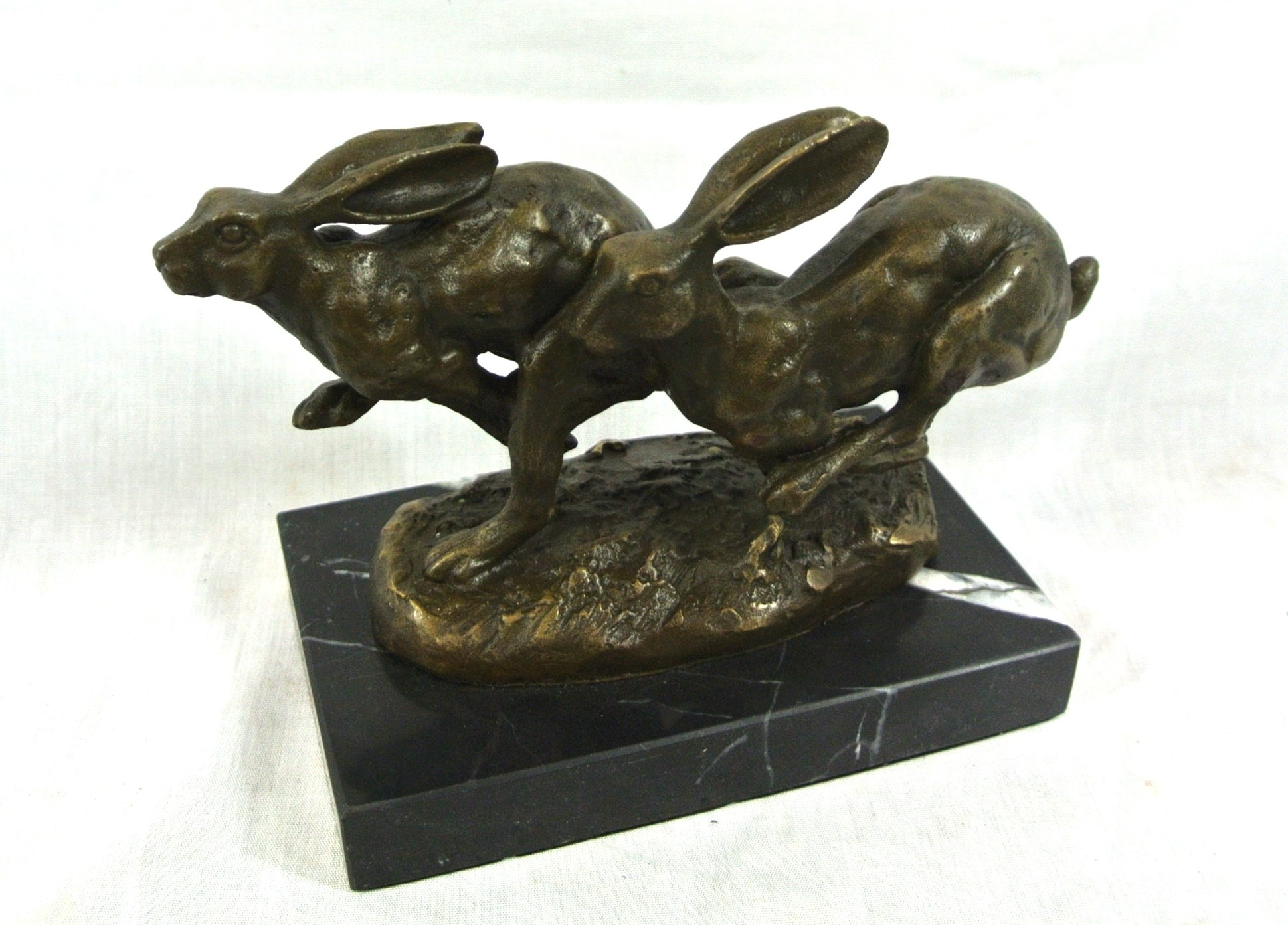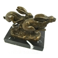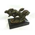 Art Deco style bronzed ornament of racing hares, on marble base