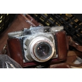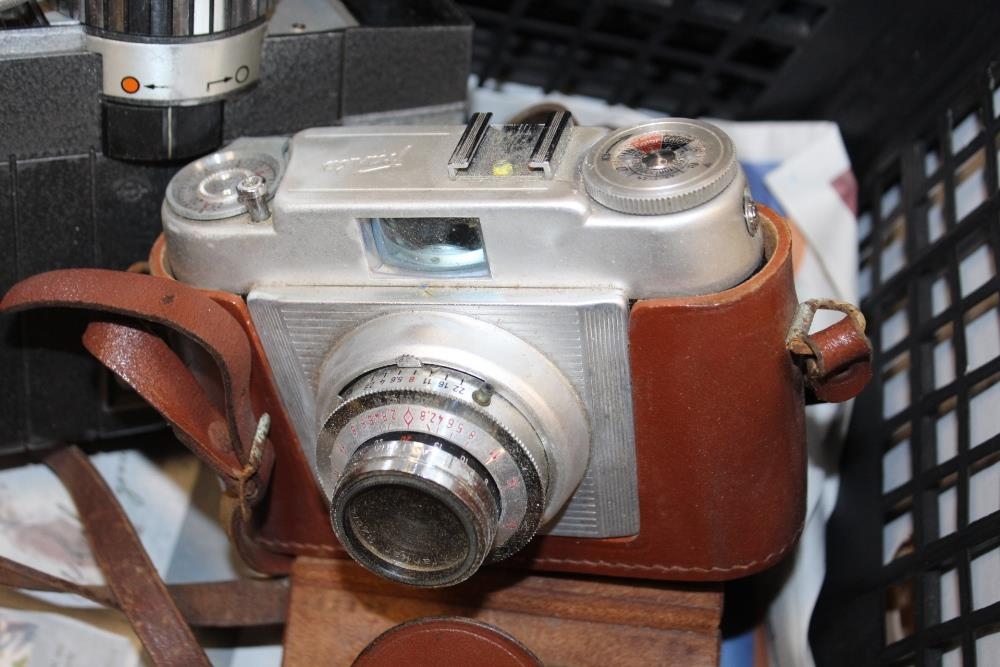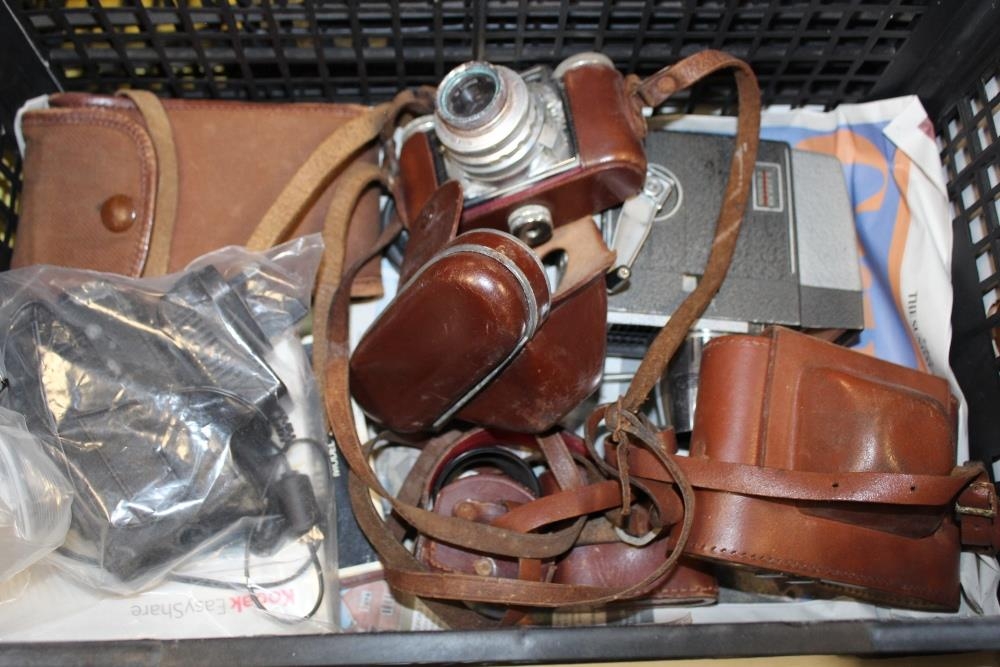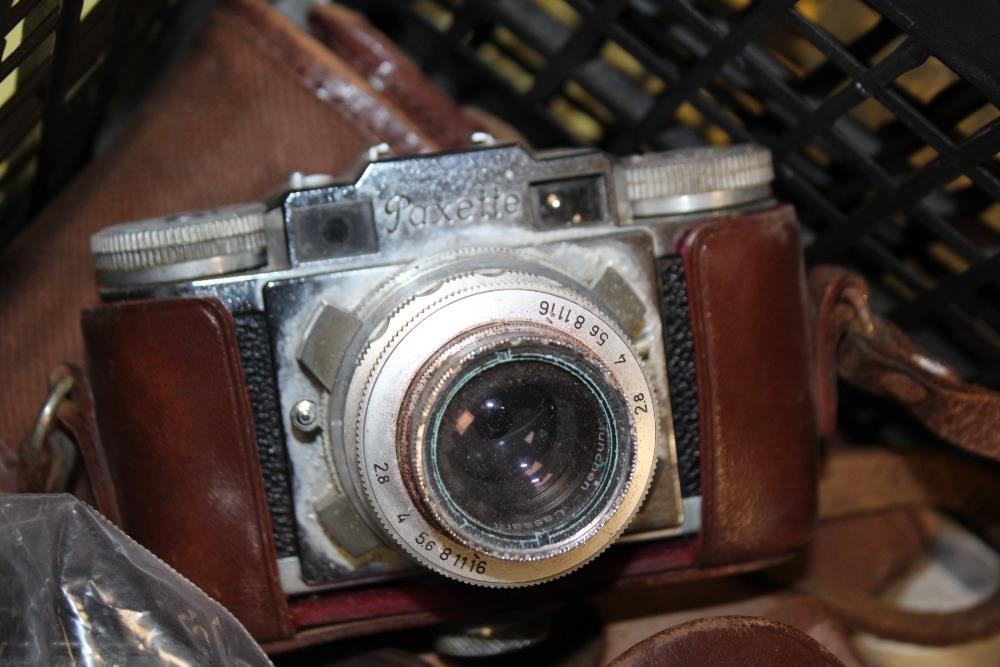 A TRAY OF VINTAGE CAMERAS TO INCLUDE A PAXETTE EXAMPLE