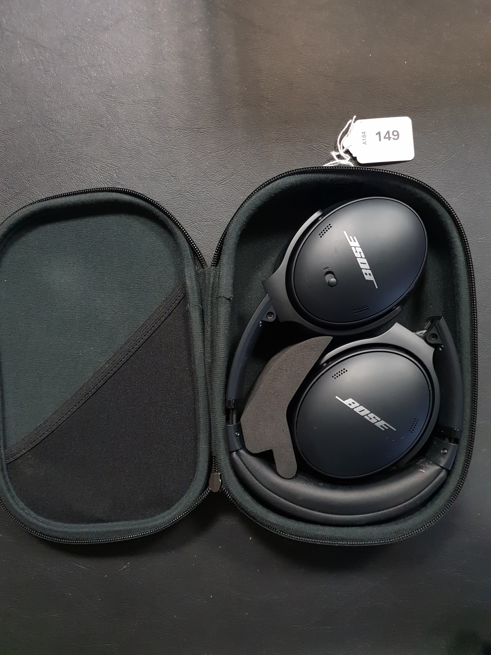 PAIR OF BOSE QUIETCOMFORT 45 OVER EAR WIRELESS HEADPHONESmodel 437310, in caseNote: Wear to earpads and headband