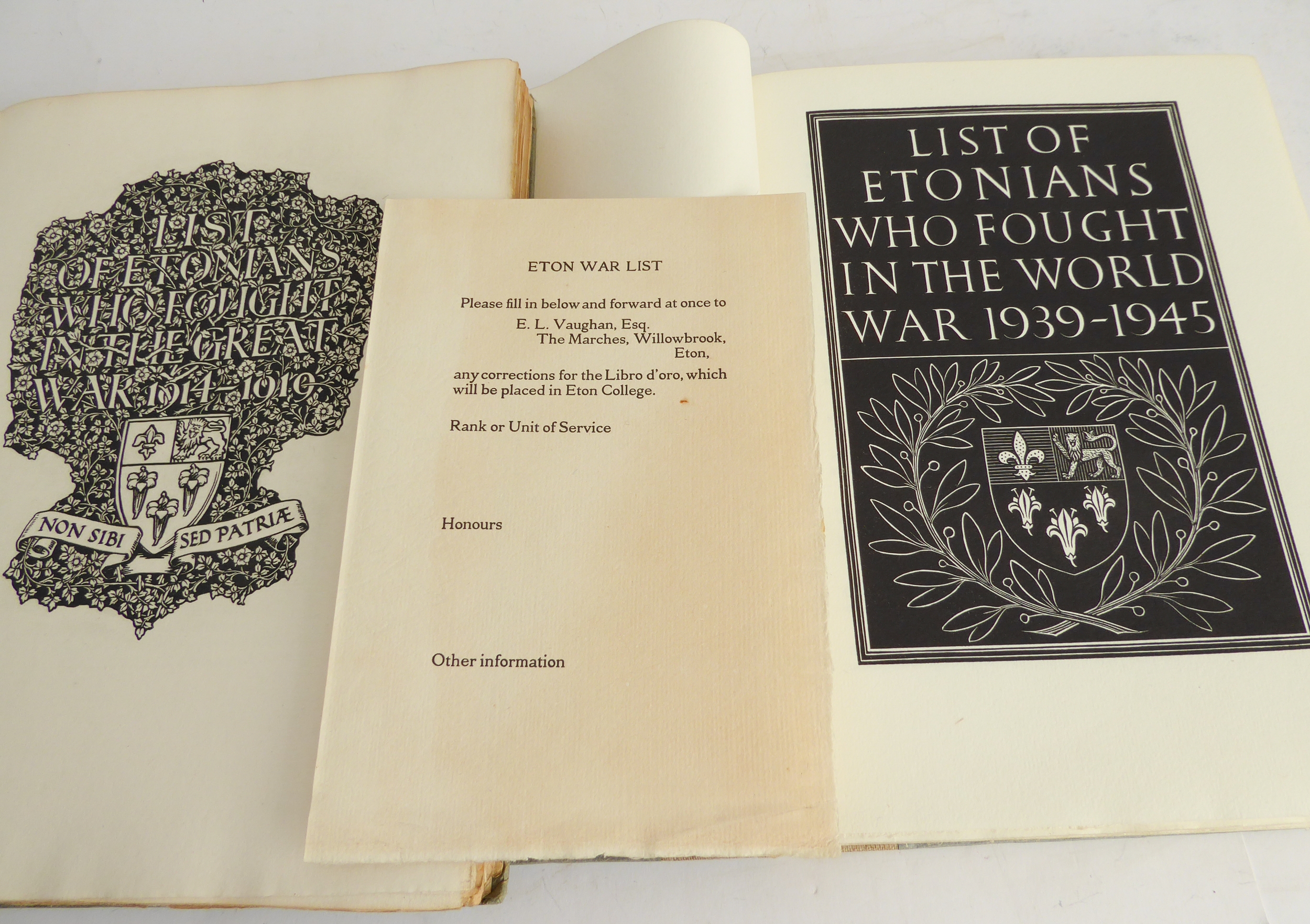 'List of Etonians Who Fought in the Great War (1914-1919)' (Medici Society 1921);