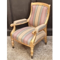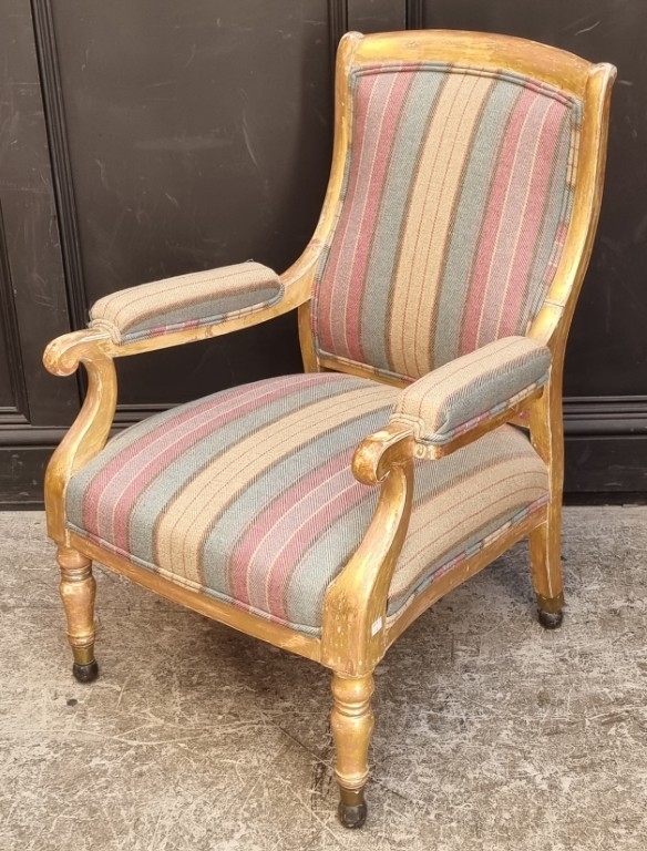 A 19th century giltwood and upholstered open arm occasional chair.
