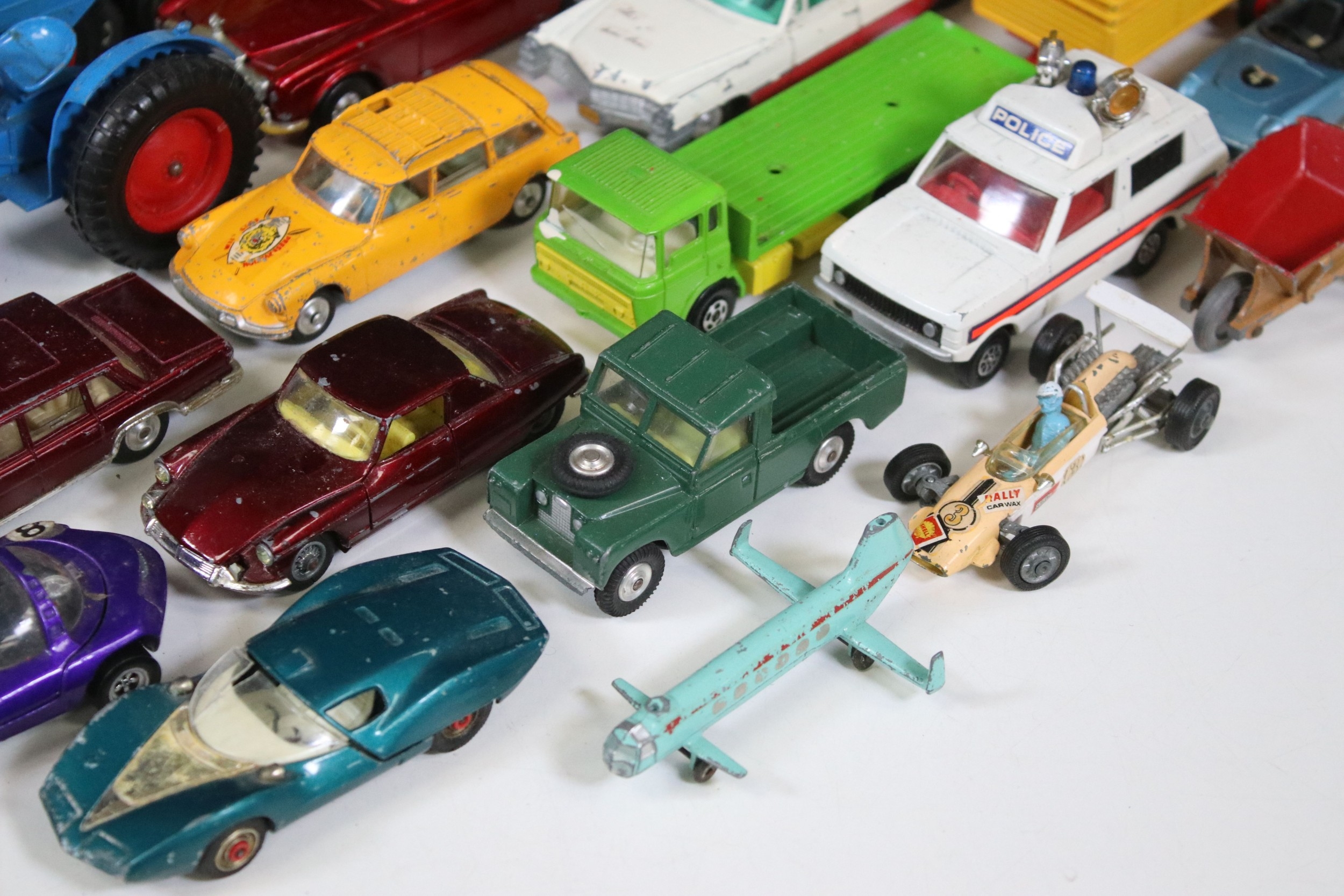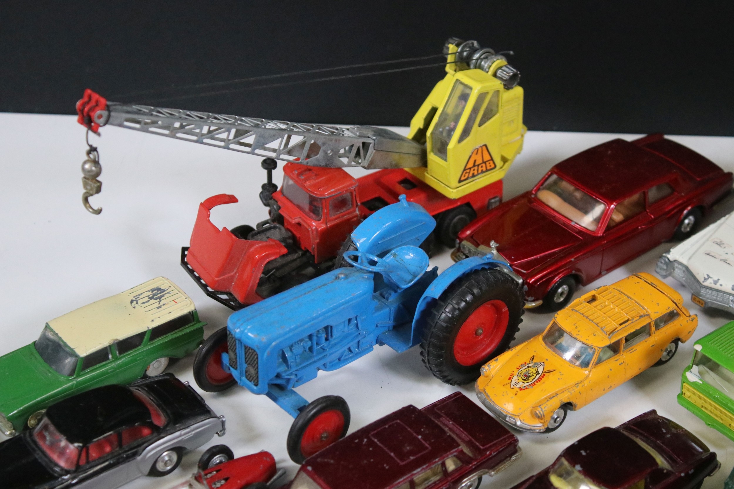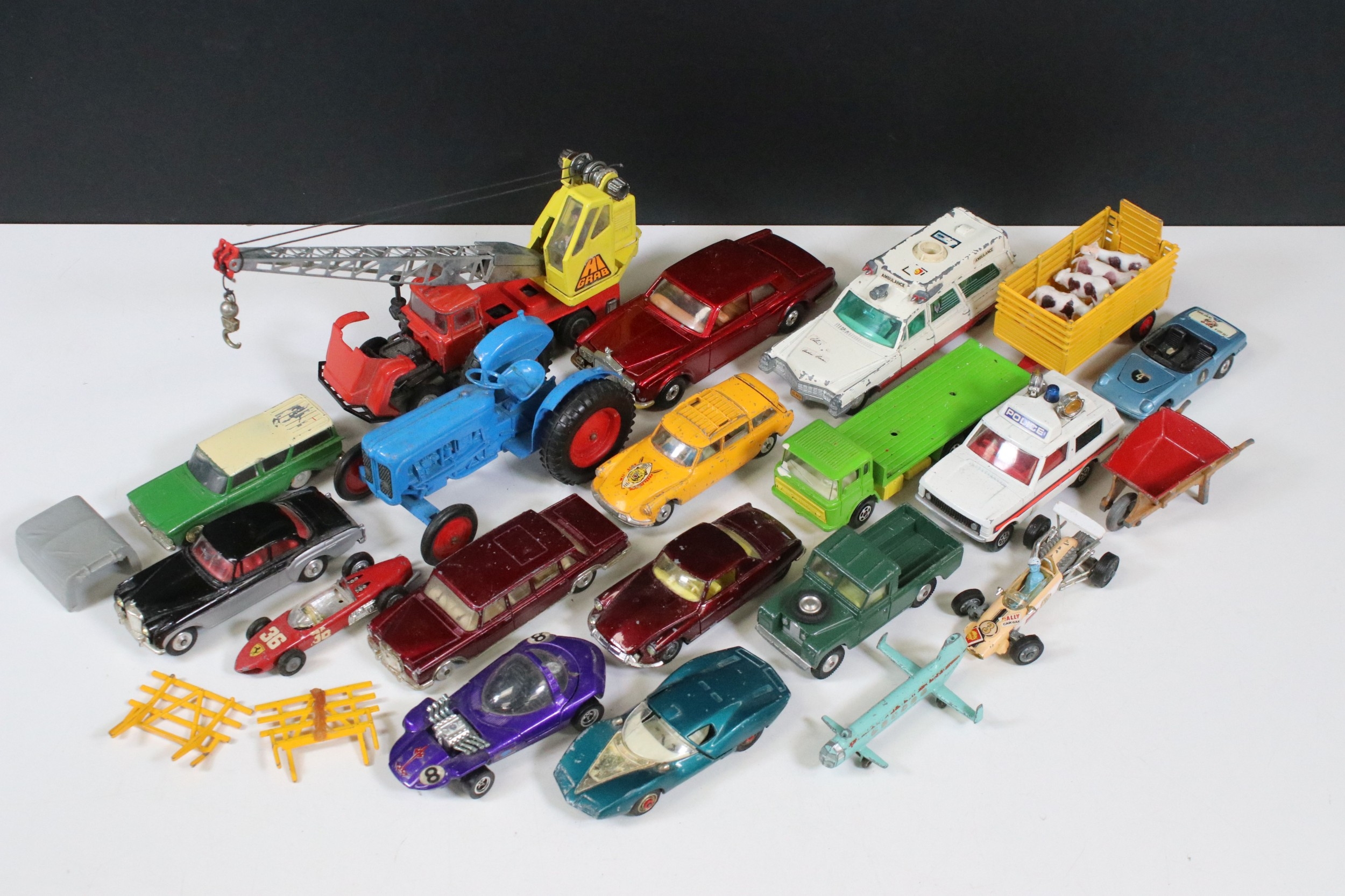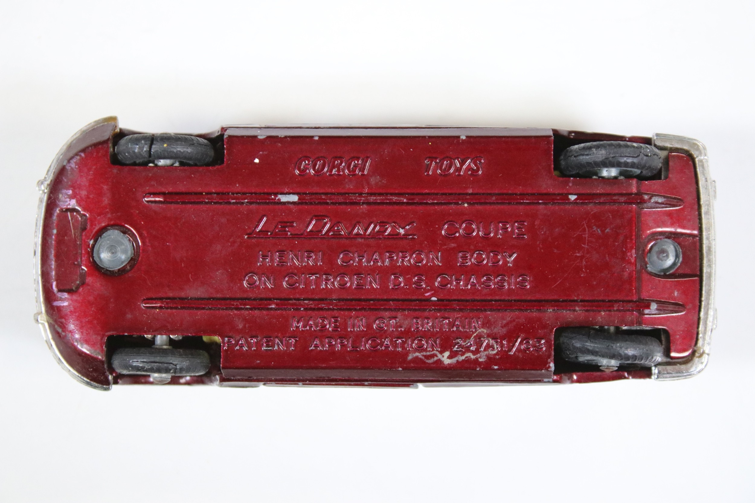Around 20 Mid 20th C play worn diecast models to include Dinky, Crescent, Corgi etc featuring Mattel Hot Wheels Silhouette 6616 in purple, Corgi Le Dandy Coupe in maroon, Corgi Citroen Safari etc