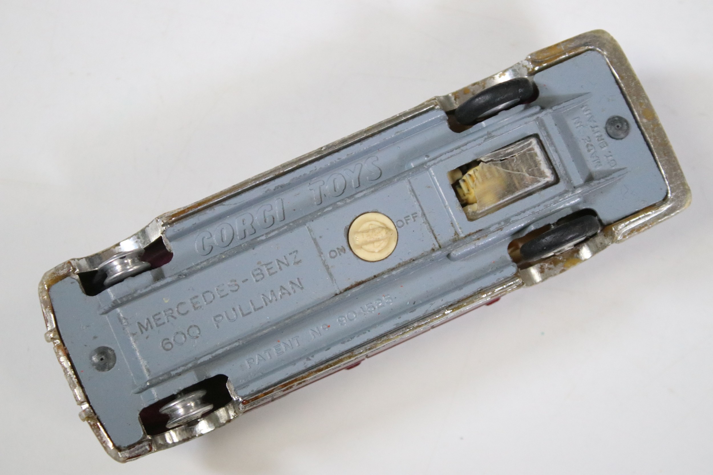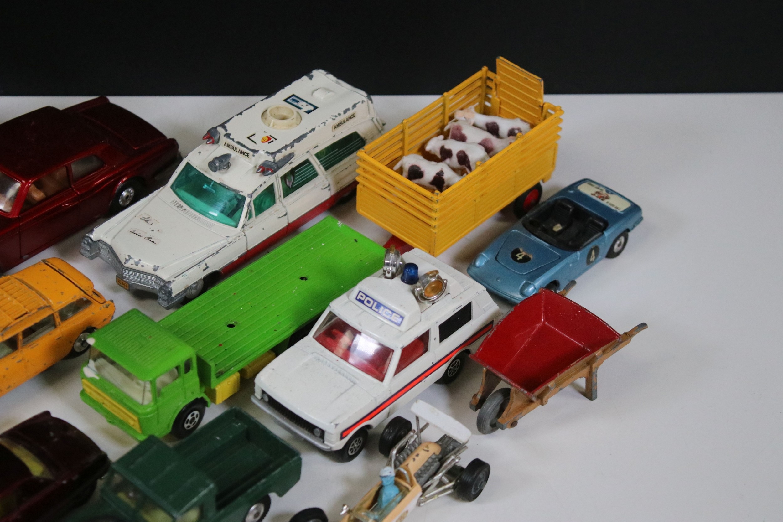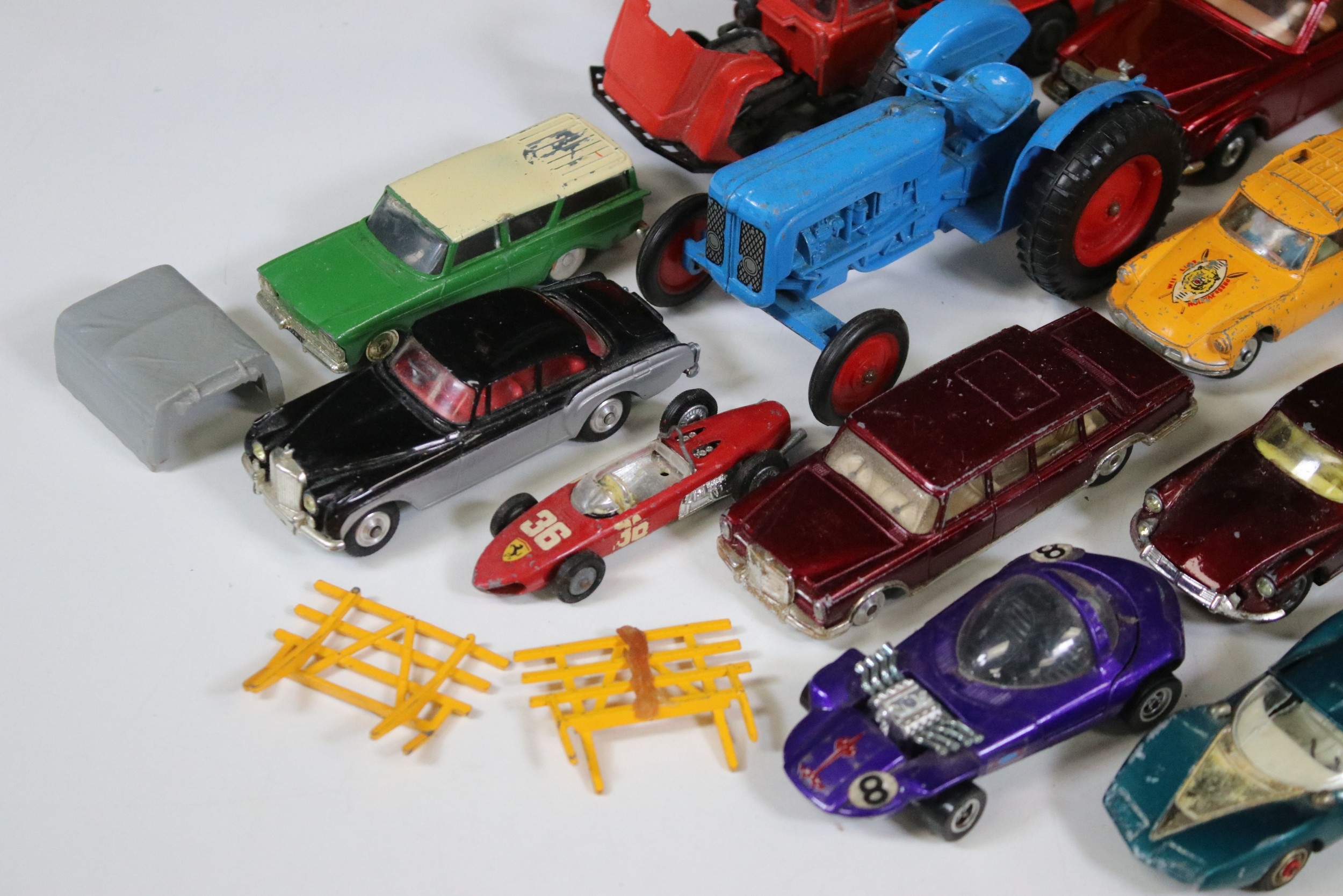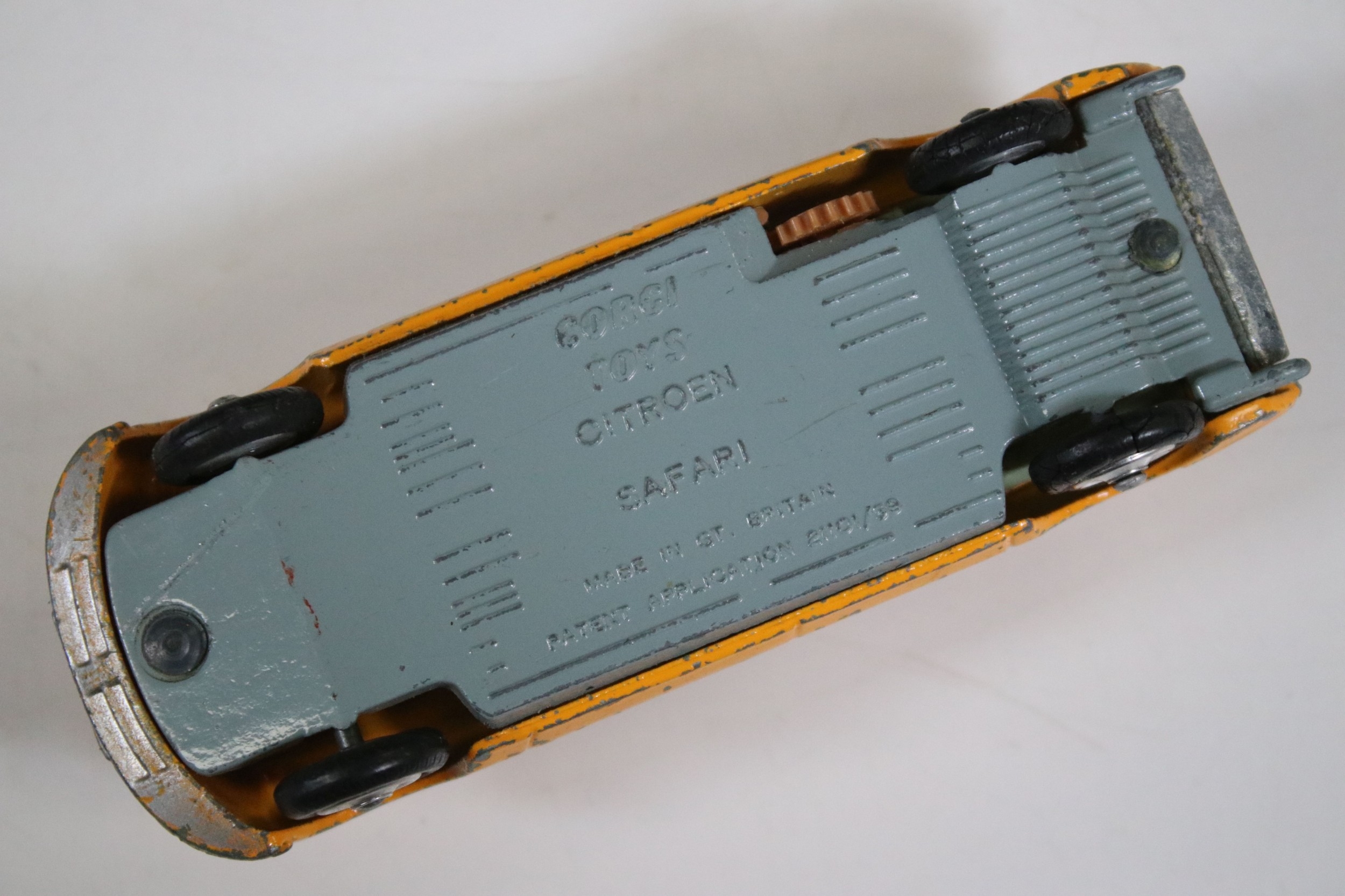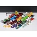 Around 20 Mid 20th C play worn diecast models to include Dinky, Crescent, Corgi etc featuring Mattel Hot Wheels Silhouette 6616 in purple, Corgi Le Dandy Coupe in maroon, Corgi Citroen Safari etc