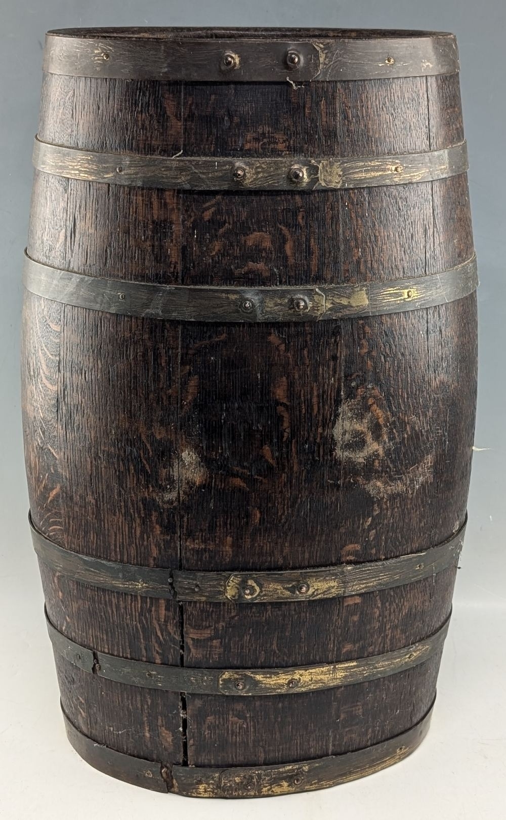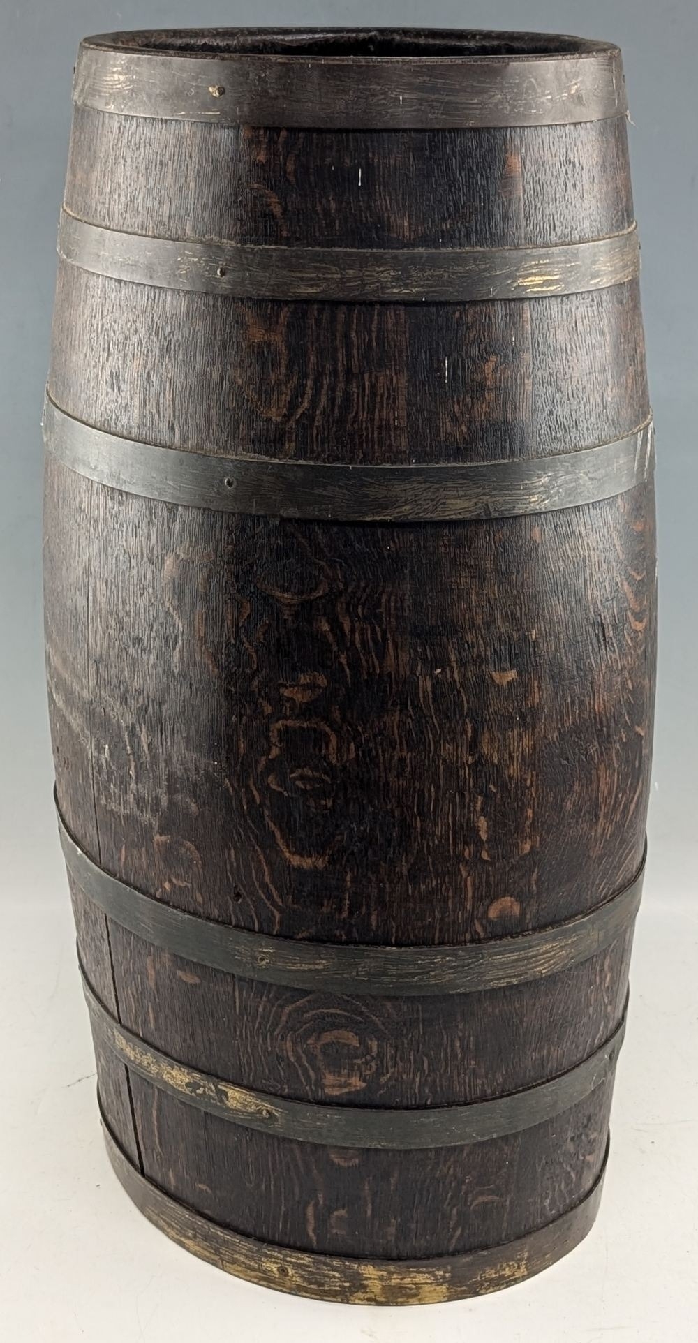Period oval copper bound Oak Stick Umbrell Stand, with metal drip tray inside - size #26cm x 3cm3 x 63cm