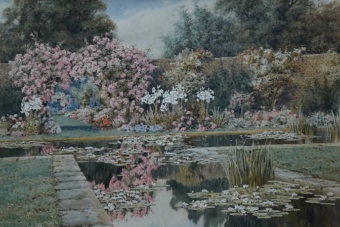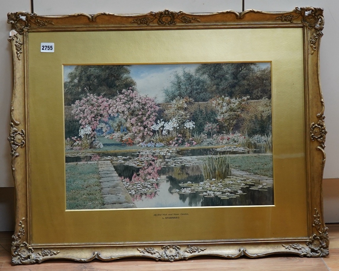 Lillian Stannard (1877-1944), 'An Old Wall and Water Garden, signed, Charles Nicholls & Son label verso, watercolour, 33 x 48cm