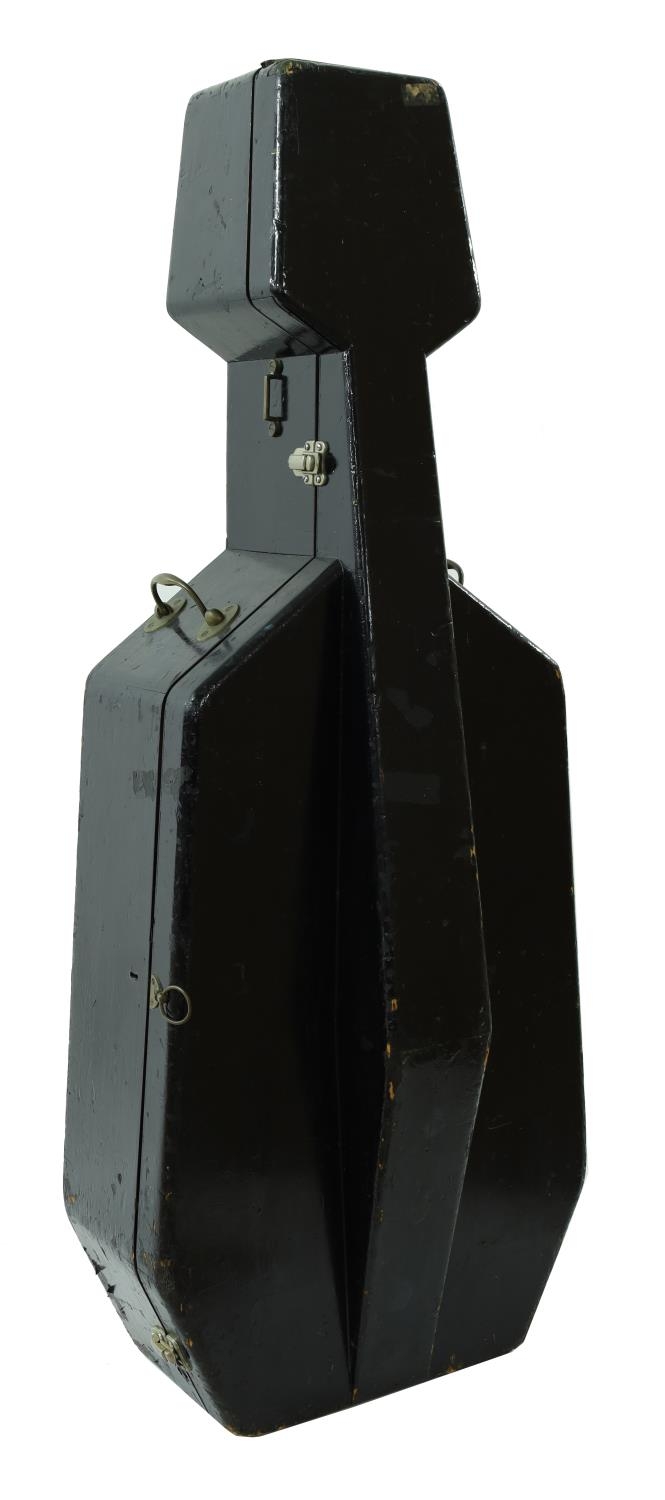 19th century Hill style three-quarter size violoncello case, with flame mahogany and plush lined fitted interior