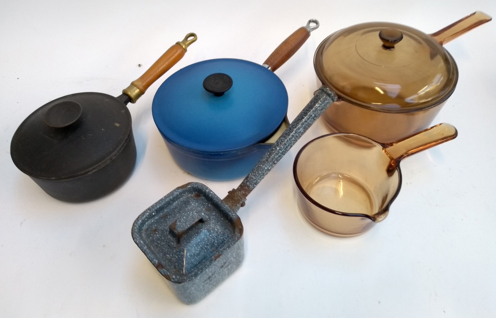A quantity of saucepans to include Cousances, Salter, Pyrex etc