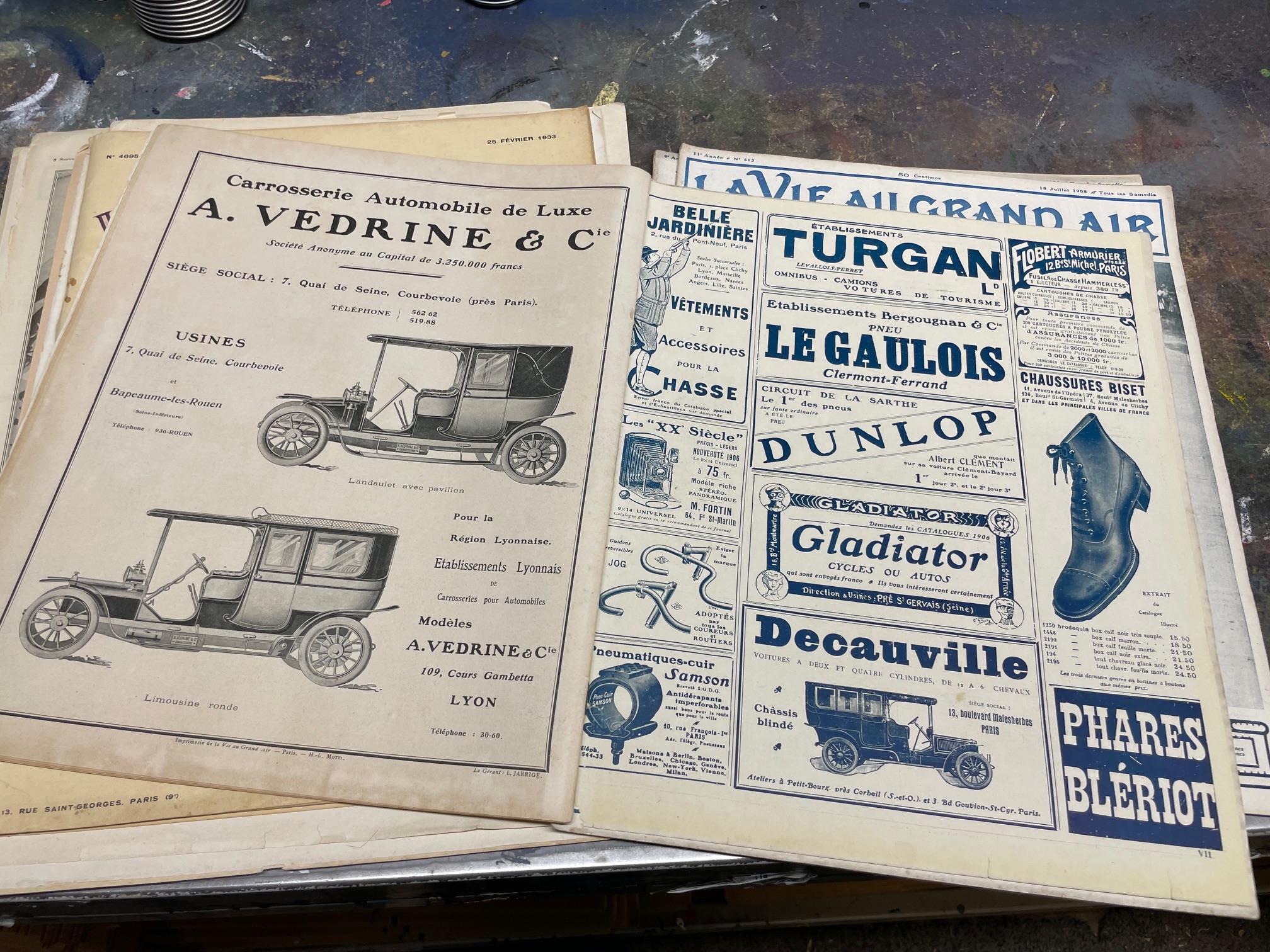 La Vie Au Grand Air French Language Magazines Featuring Race Reports And Features 1906-1908. No's 407 1906, 412 1906, 513 1908, 524 1908, and other Cuttings