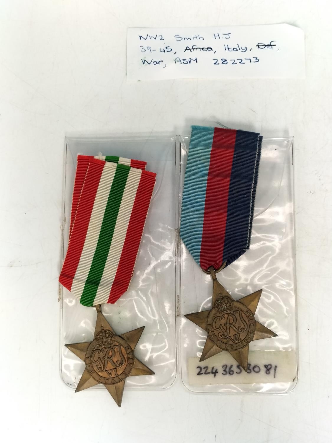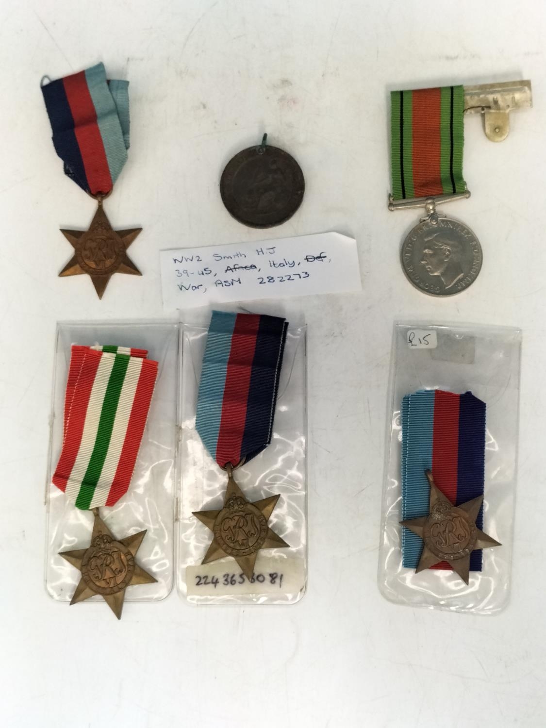 Collection of War Medals (6) to include Treaty of Paris Crimean War Medal Dated May 1856, 1939-1945 Campaign Star Medal (3), 1939-1945 Defence Medal plus 1939-1945 Italy Campaign Star Medal attributed to H J Smith ASM282273.