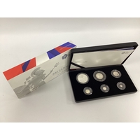 2018 Royal Mint UK Britannia Fine Silver Proof Six Coin Set, cased with a certificate of authenticity.