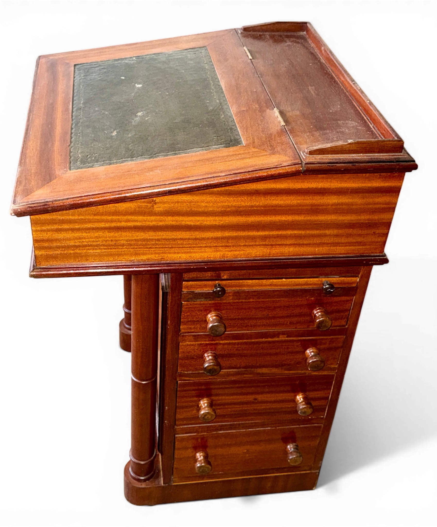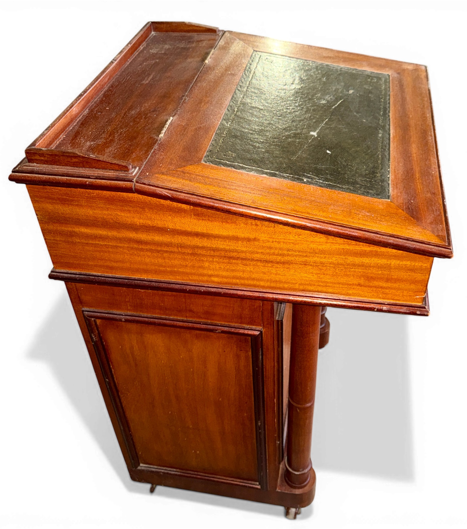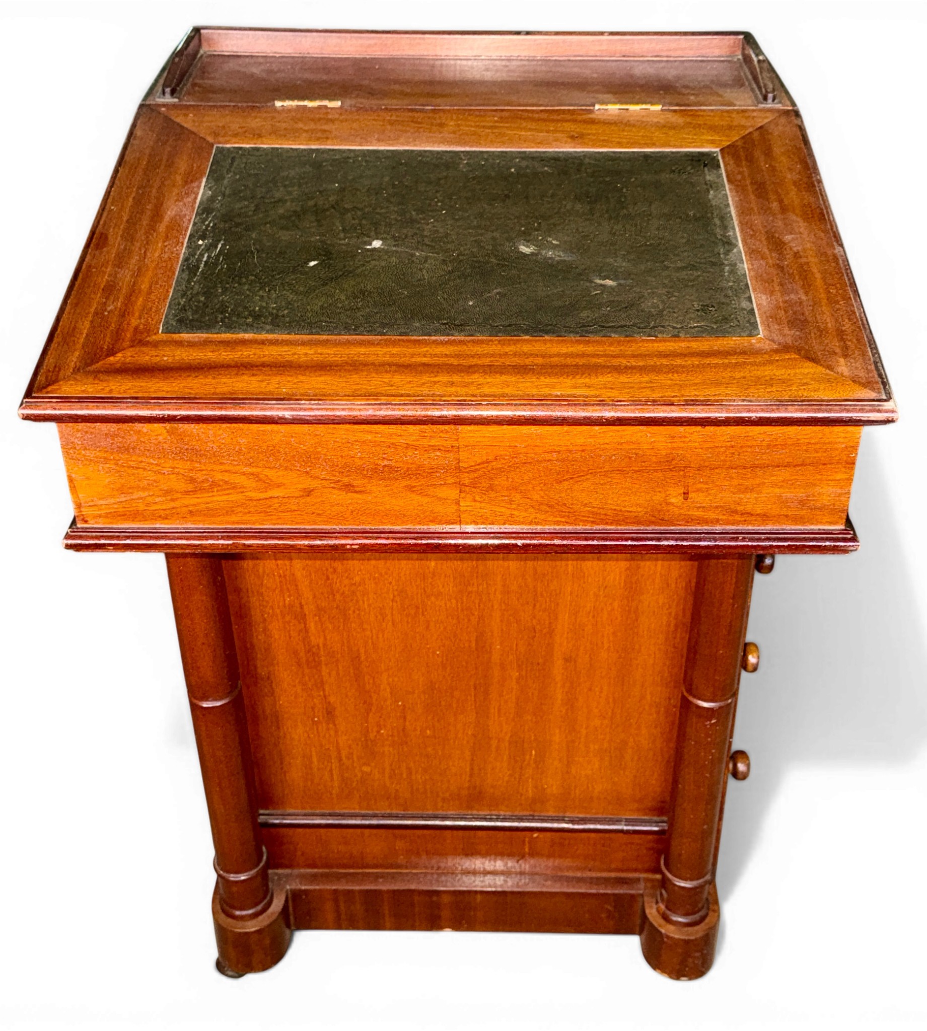 A 20thC mahogany leather topped Davenport desk with drawers to one side. 53cm w x 52cm d x 84cm h.