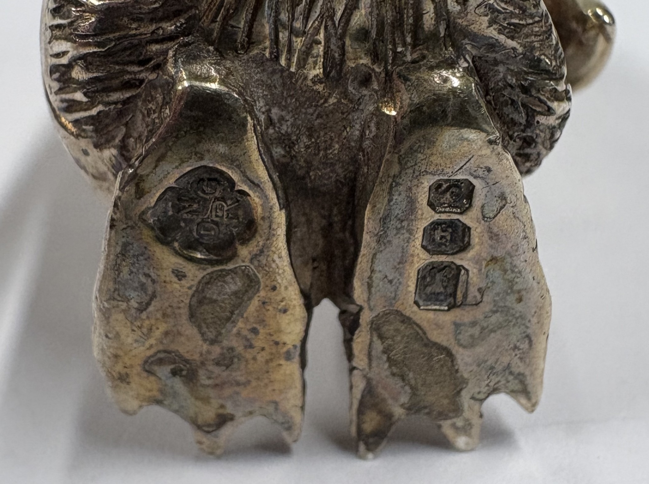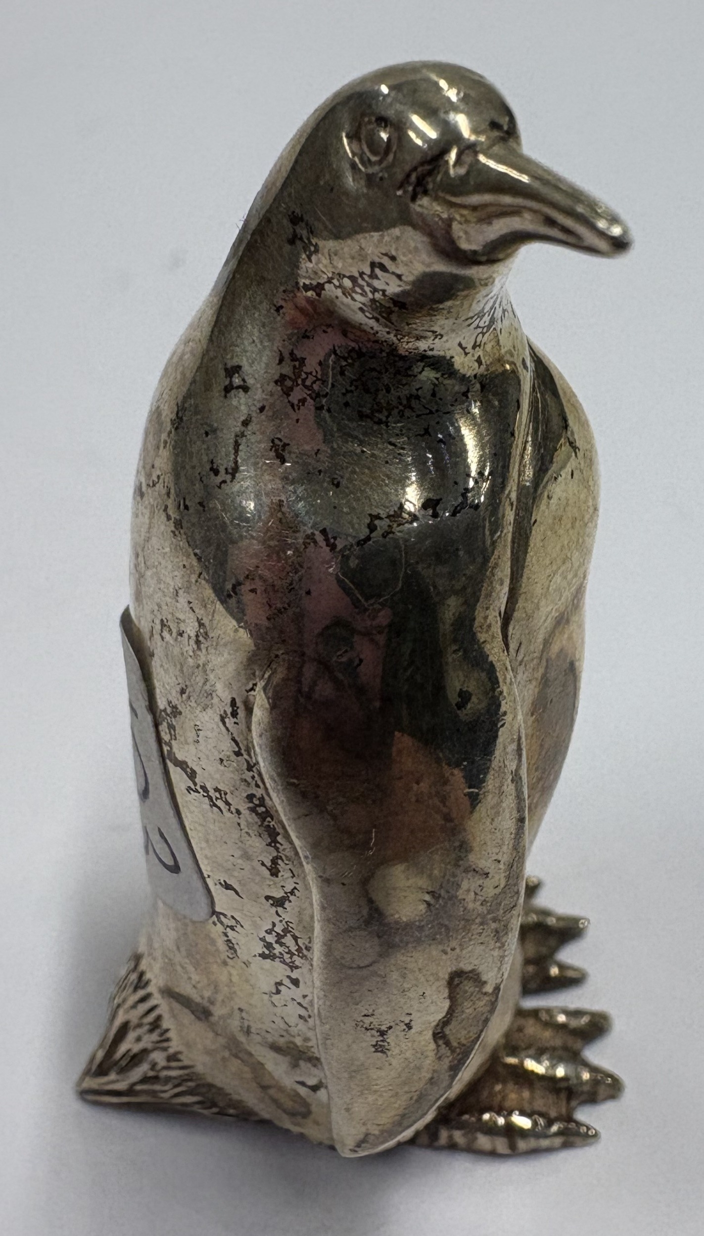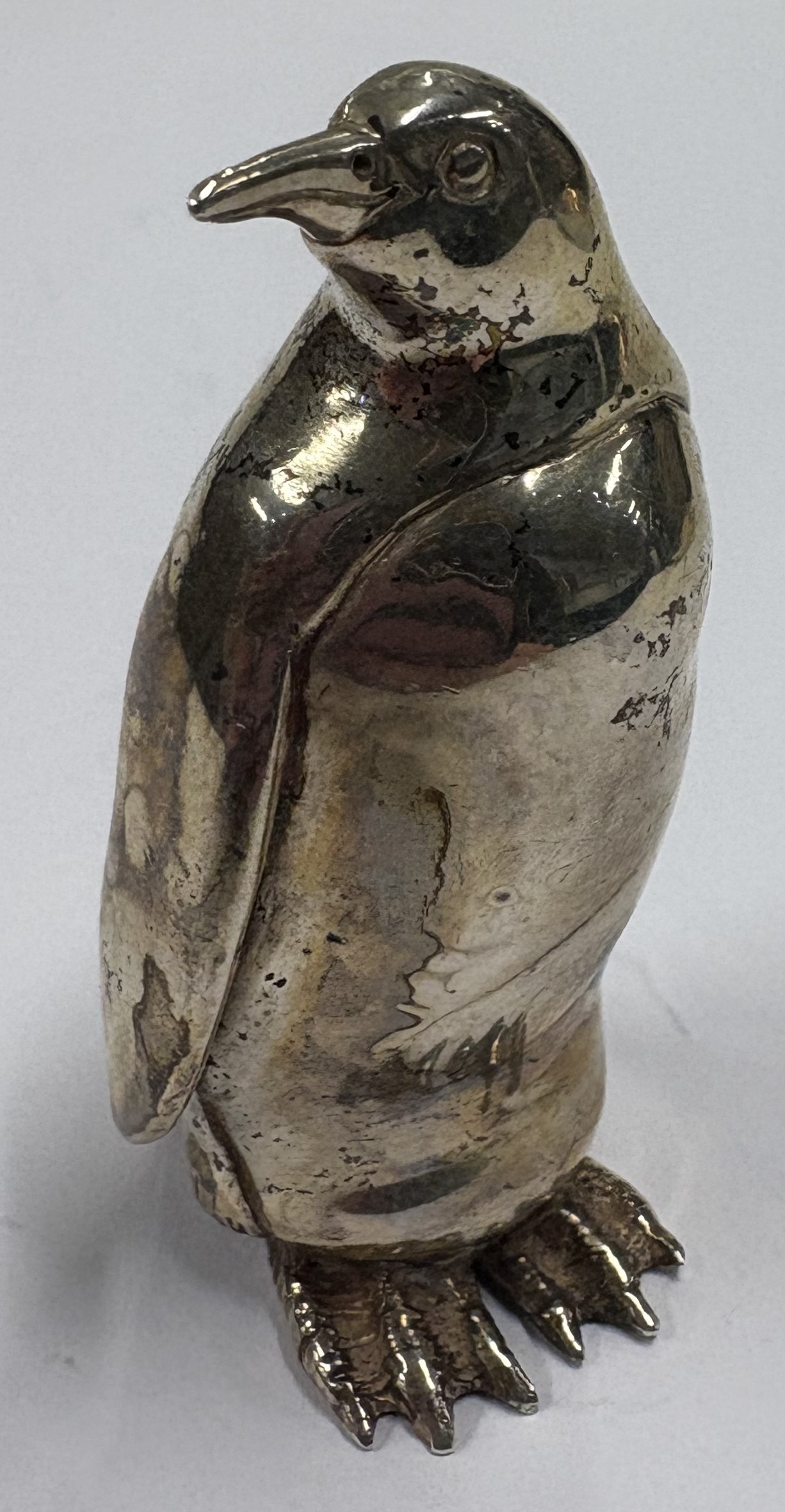 A heavy cast silver figure of a penguin in standing position. London. Approx. 78 grams. Est. £80 - £120.