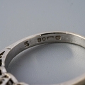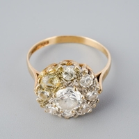 A 9ct gold diamond three stone ring. Set with round brilliant cut diamonds within illusion style settings, hallmarked 9ct gold London 1977, approx ring size L 1/2, approx gross weight 2.53 grams.