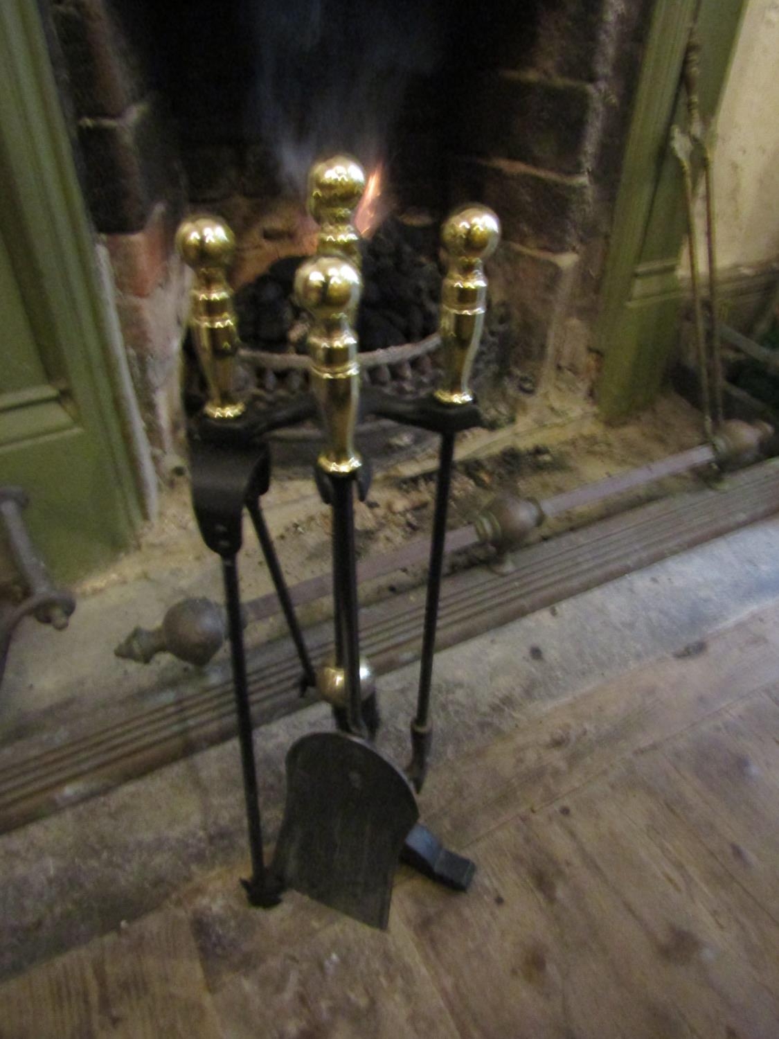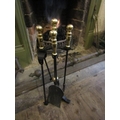 Cast Brass Mounted Four Part and Fire Set with Integral Stand