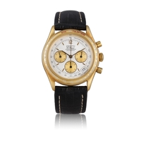 Condition Report: Overall grade: Good condition. Case: Surface wear and light scratches consistent with use. Engravings to caseback remain well defined. Dial: Good overall condition with light signs of ageing. Glass: Minor signs of wear. Movement: Running at the time of cataloguing; not tested for accuracy. Crown: Signed. Pushers correct. Running at the time of cataloguing. Overhaul recommended at buyer’s expense. We do not test any watches for their accuracy and as such, timekeeping cannot be guaranteed. All lots are sold as is, without any representation or warranty as to their condition or function. Condition Reports are provided for guidance only and may not refer to all imperfections, restorations, or replacements. Prospective buyers are responsible for ensuring they are completely satisfied with the condition of the lot before bidding. Although Adam’s endeavours to note any replacement parts in our Condition Reports, we cannot confirm that each component is original, or that any replacements are made using original manufacturer parts.