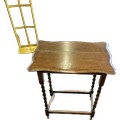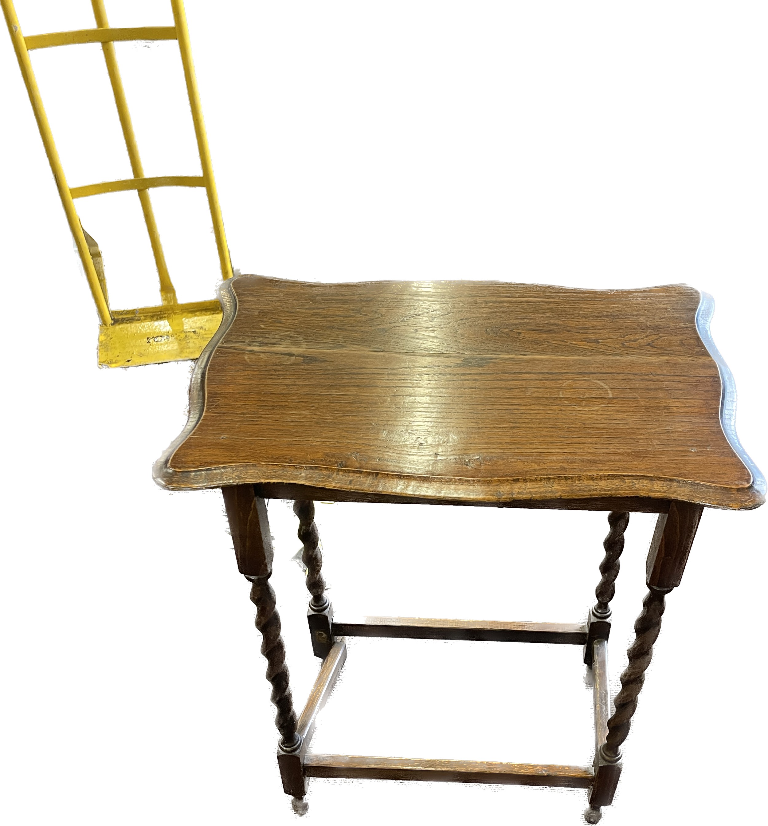 Barley twist oak occasional table measures approx 28 inches tall by 23 inches wide and 16 inches depth