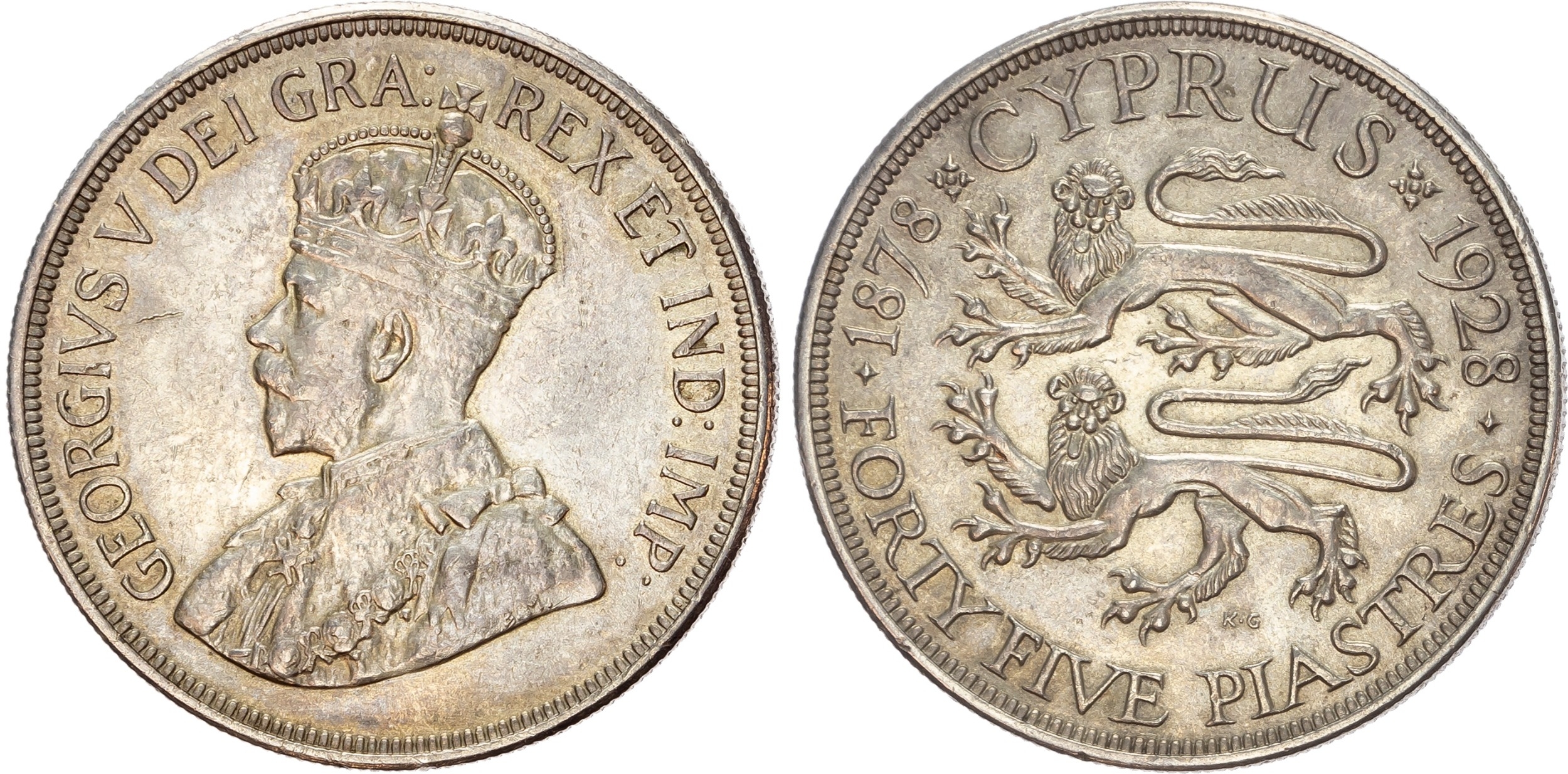 Cyprus, British Administration, George V (1910-1936), silver 45 Piastres