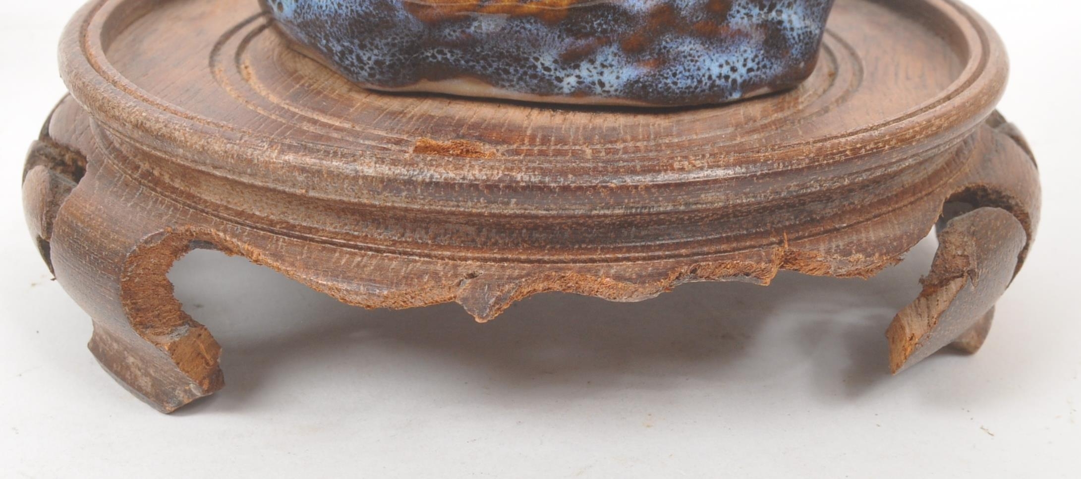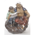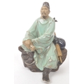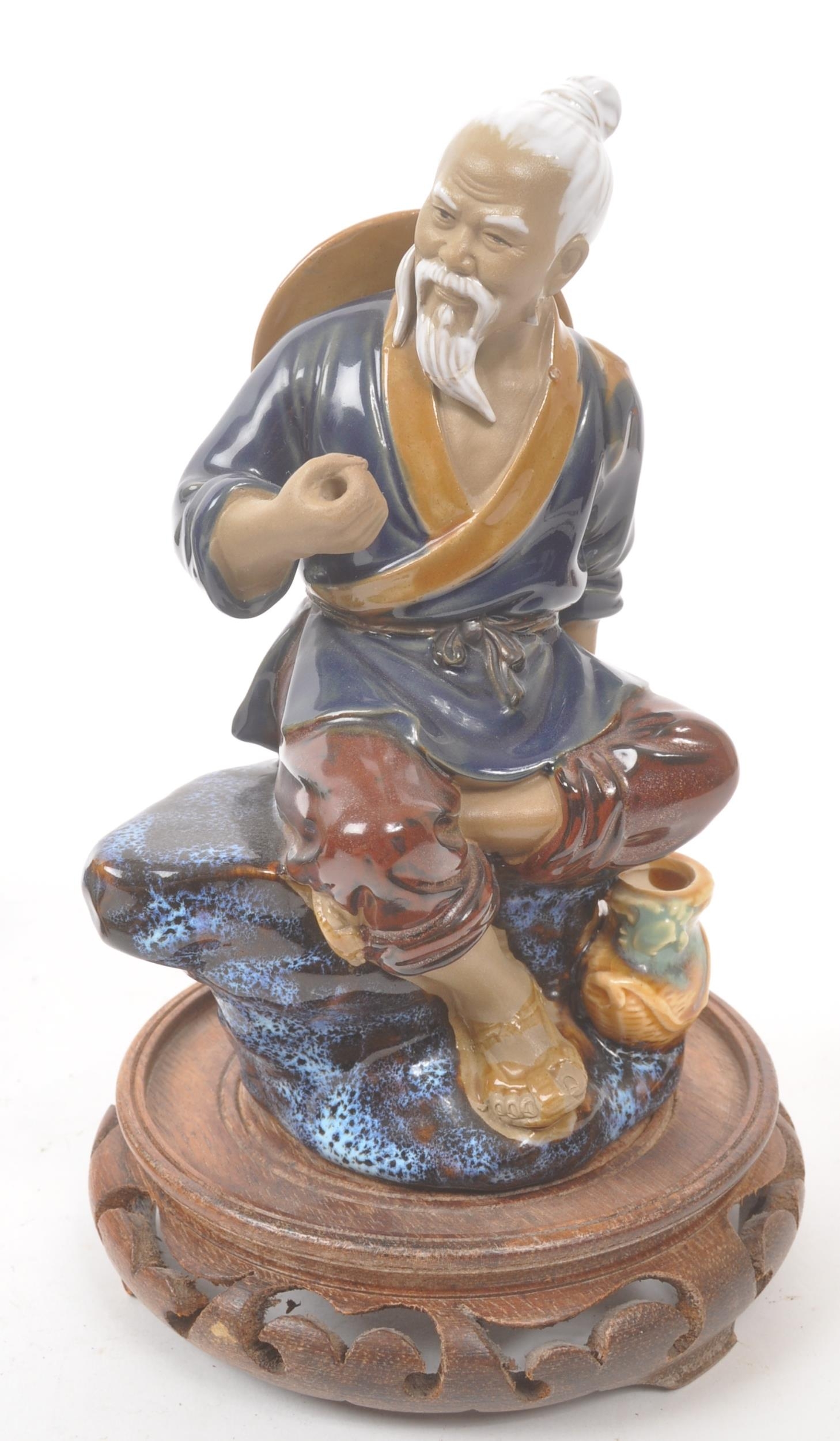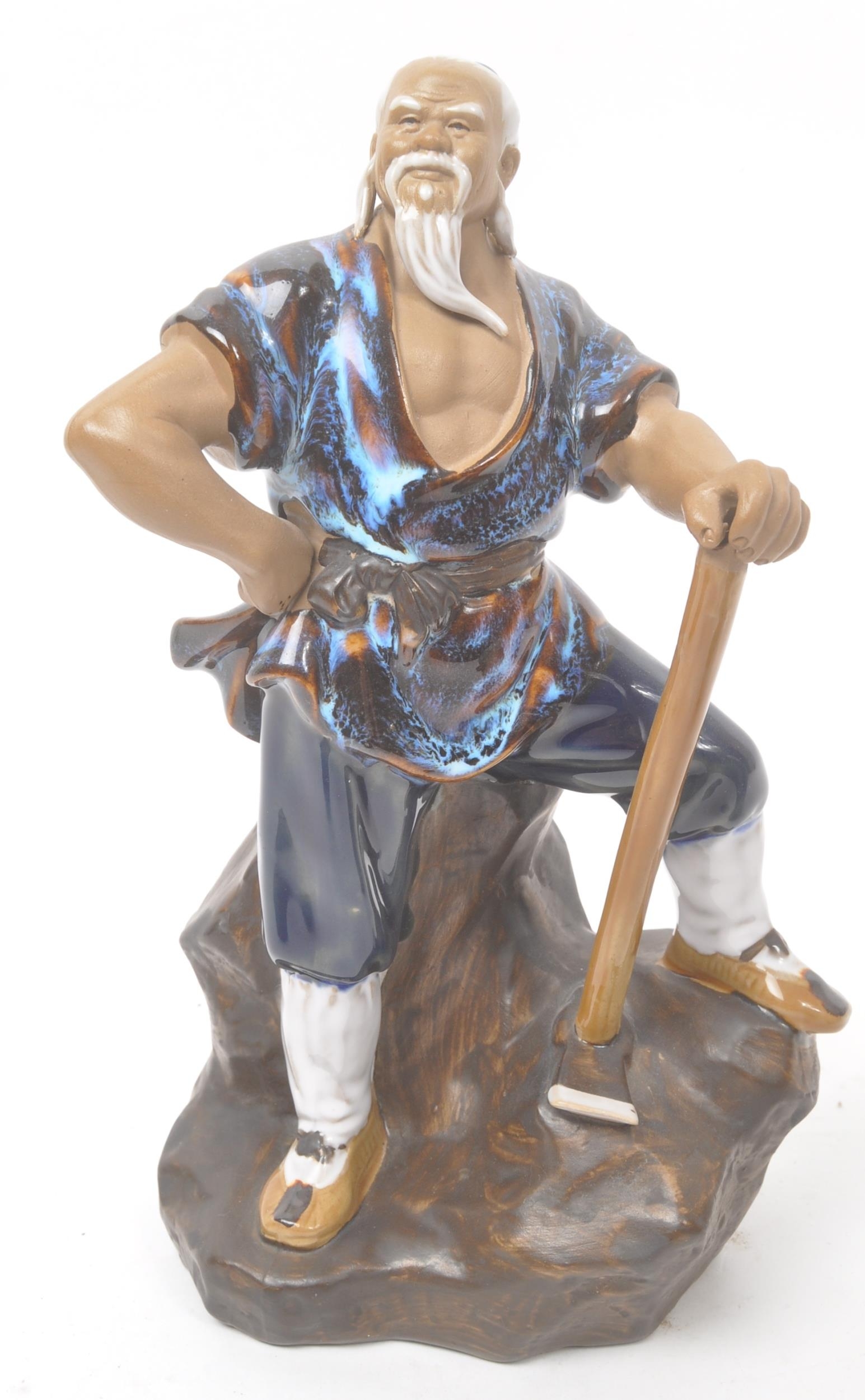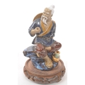 A collection of four Chinese ceramic mud men figurines. Each of the figures on naturalistic bases, with three depicting seated the figures, and one standing. Tallest measures approx. 25cm tall.