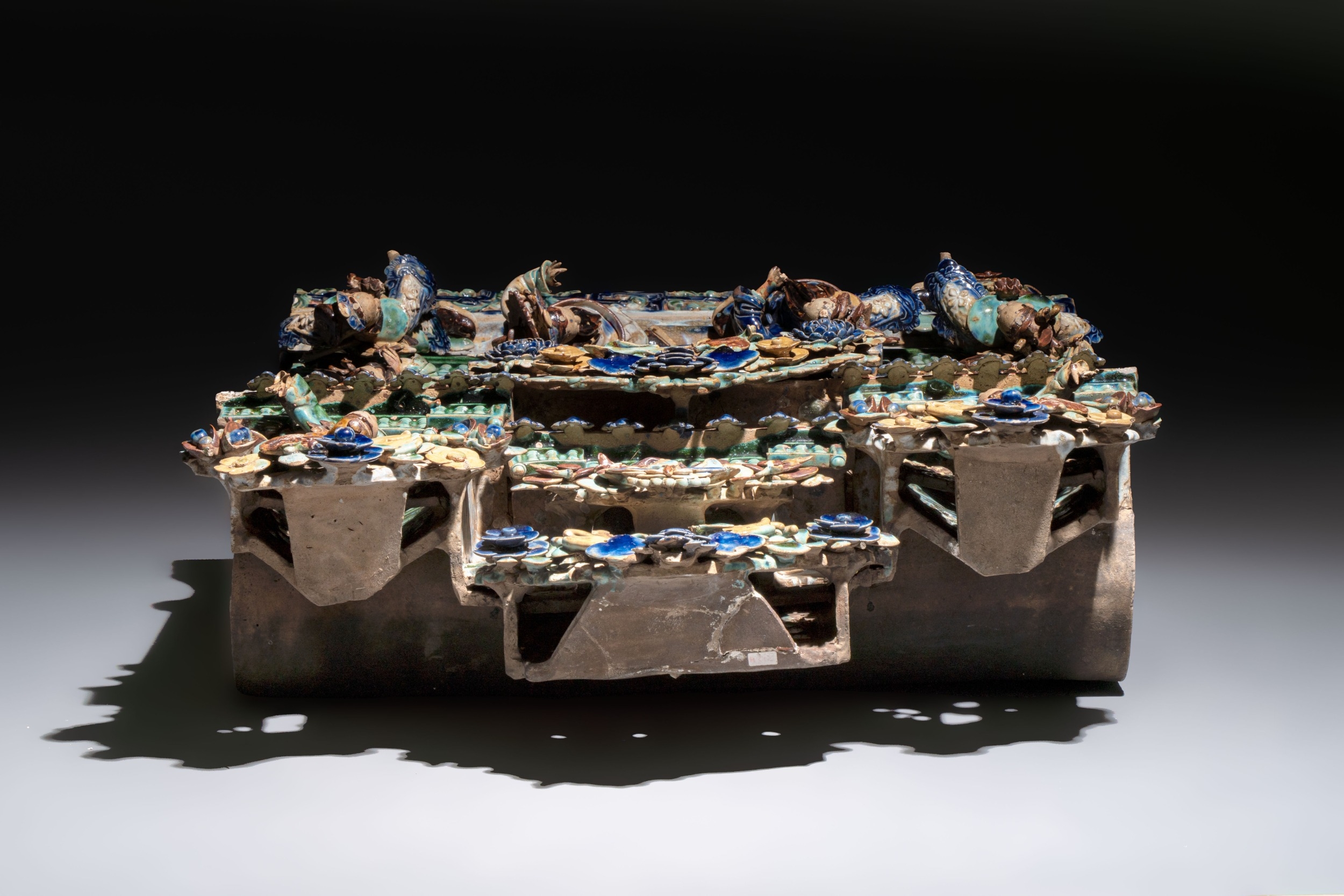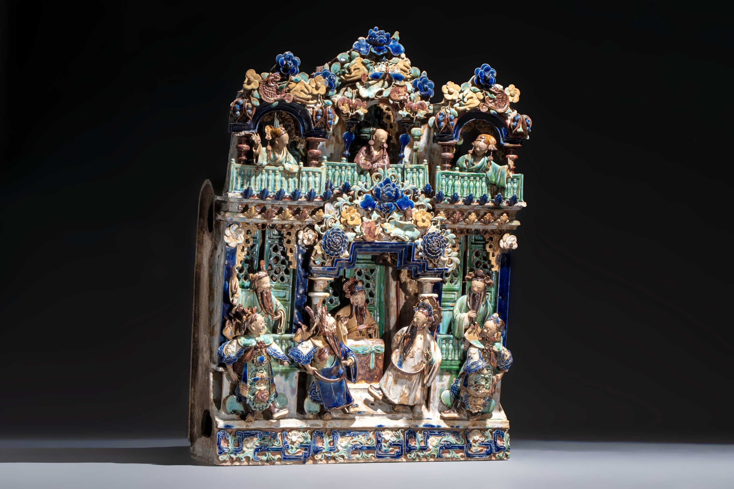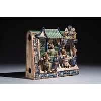 A large and fine Chinese polychrome-glazed Shiwan stoneware group of immortals, 19th C.