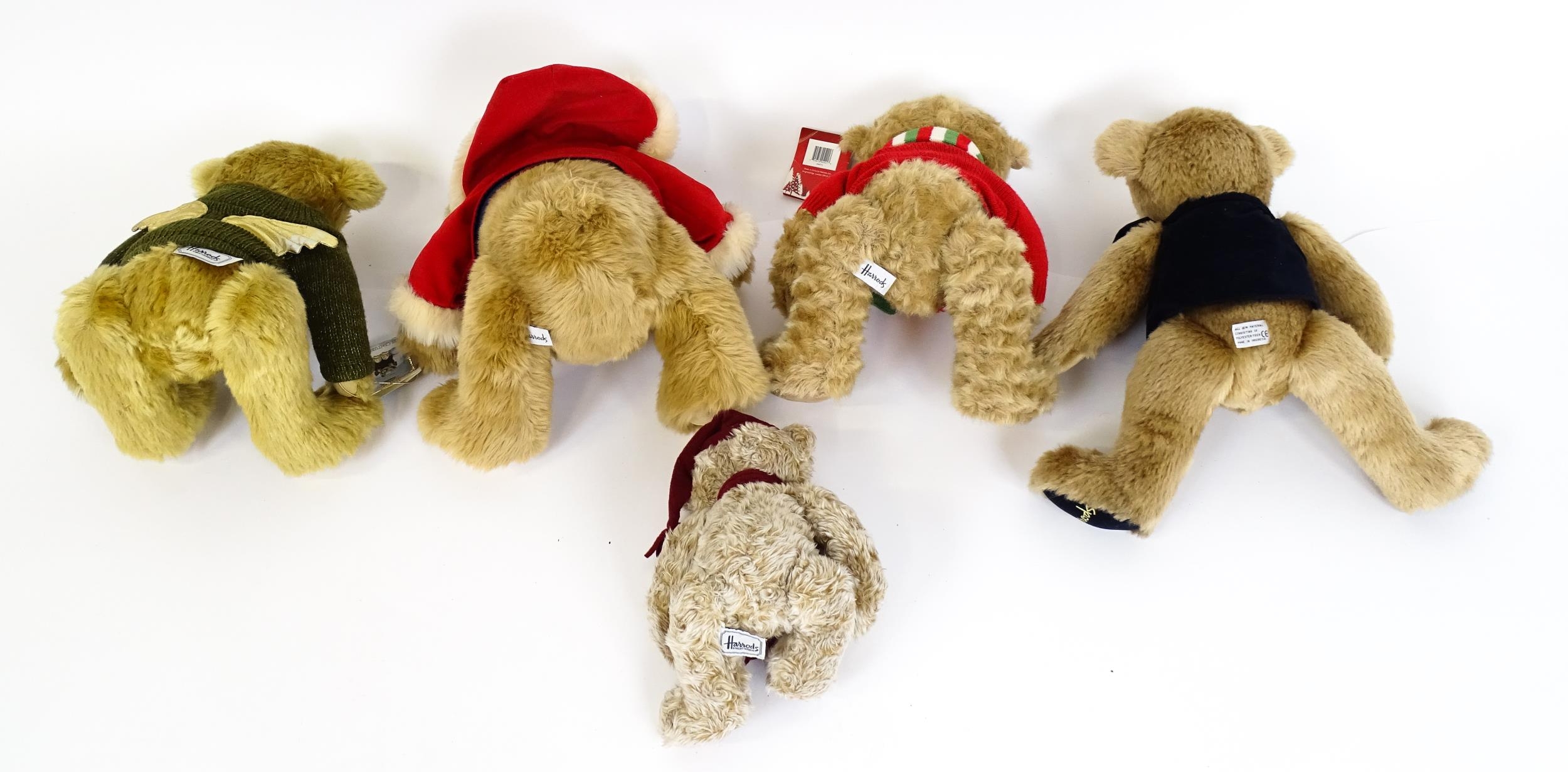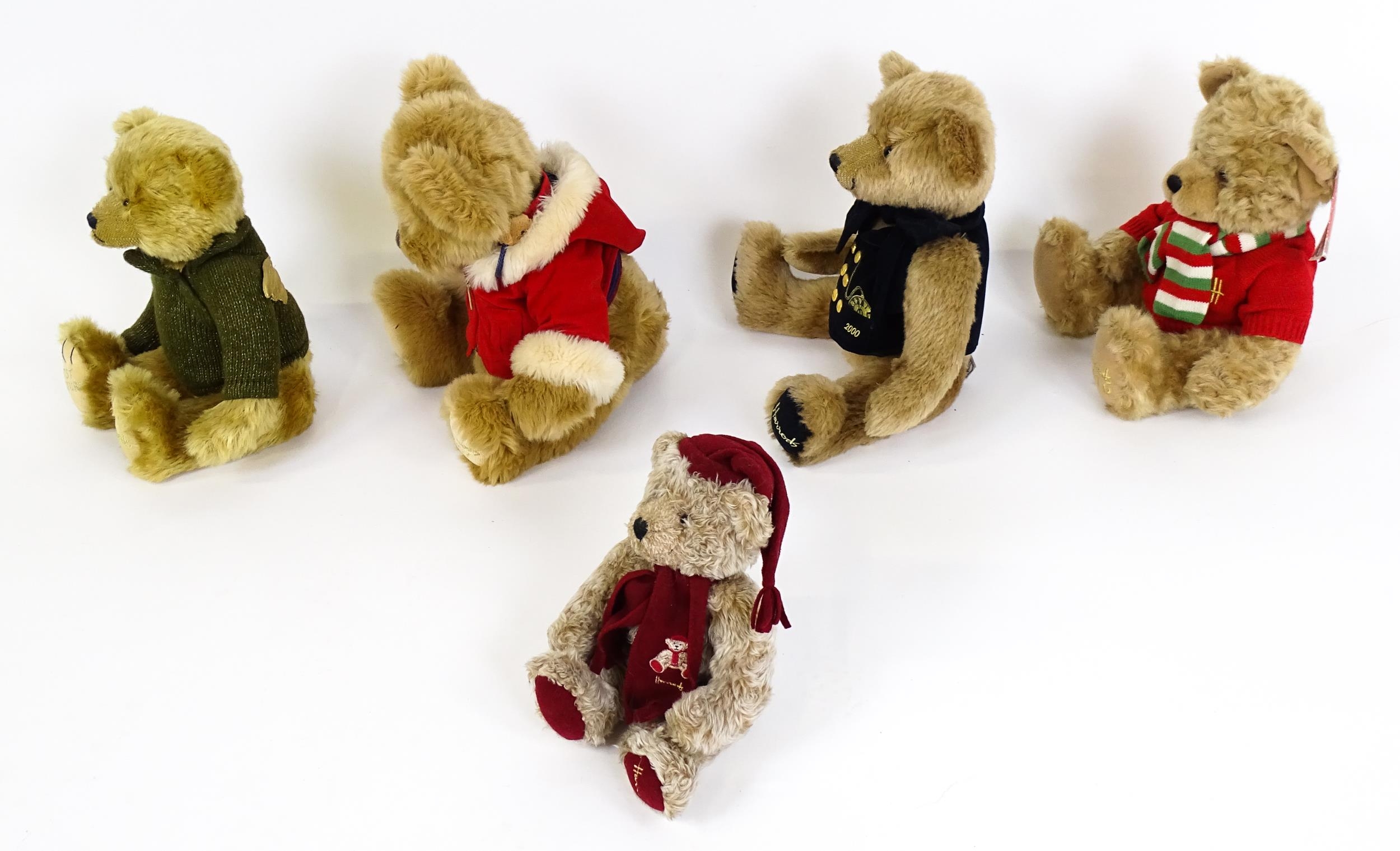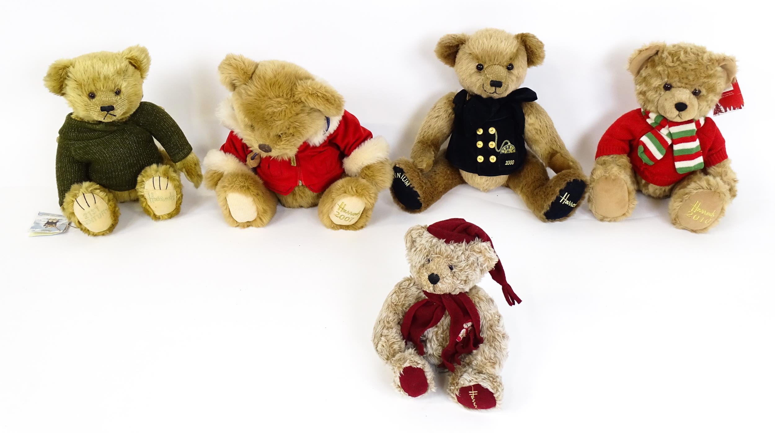 Toys: Five Harrods teddy bears to include Christmas Bear 2010, Millennium Bear, Christmas Bear 2007, 21st Century Bear, etc. Largest approx. 13" high (5)