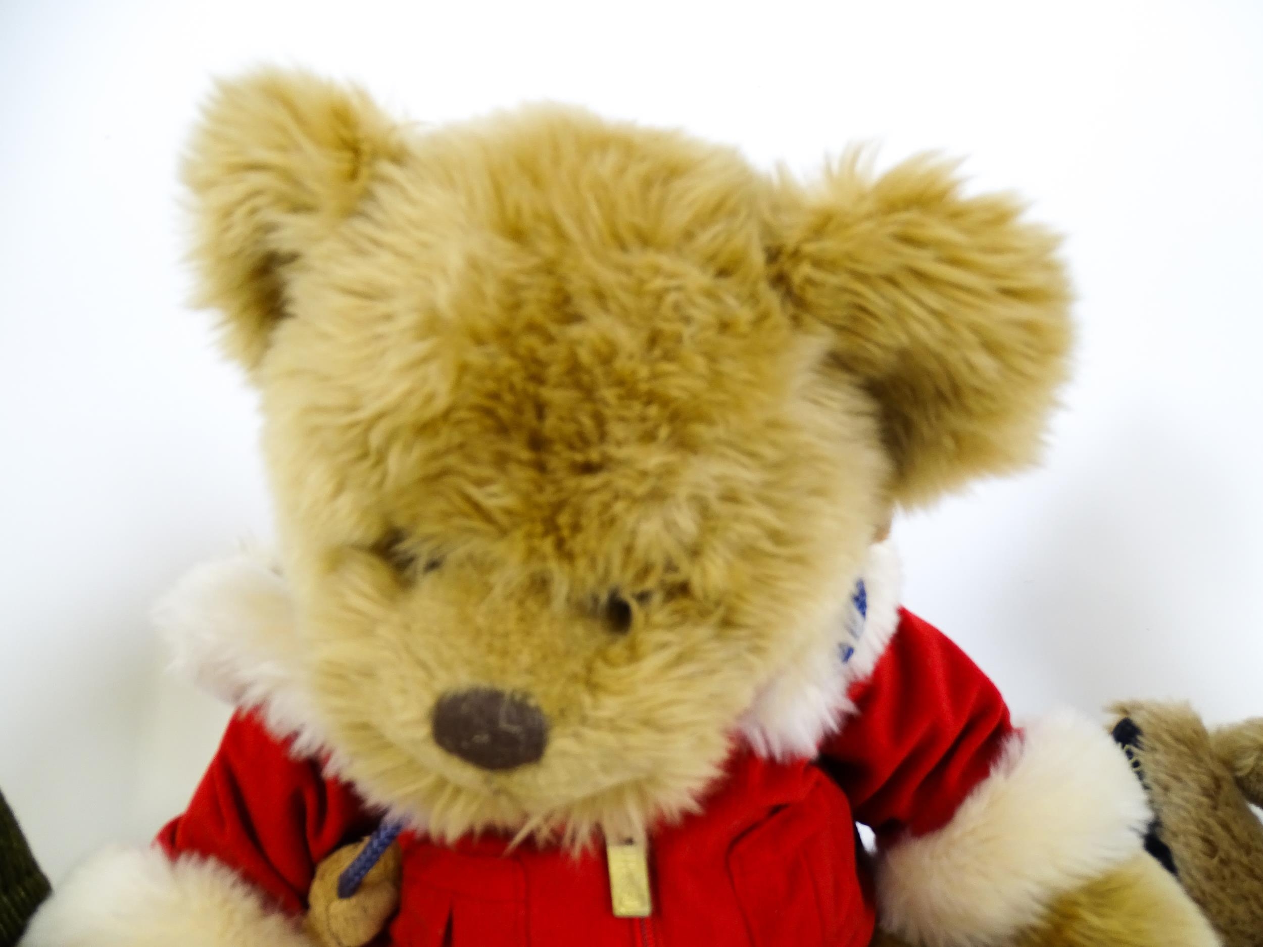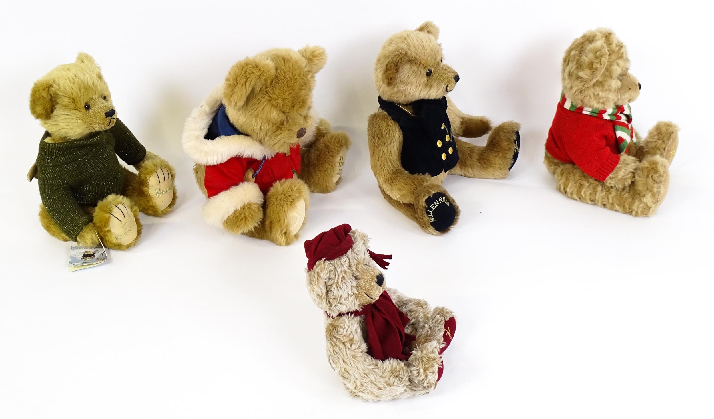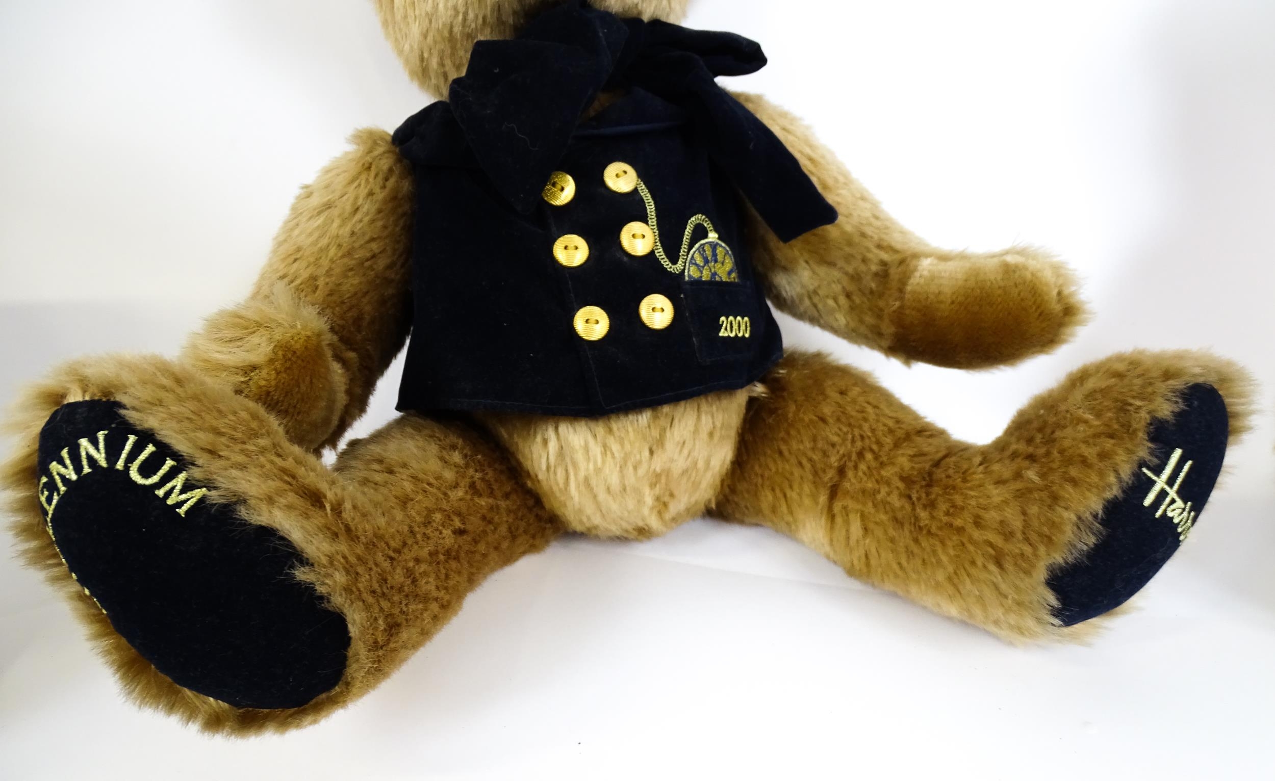 Toys: Five Harrods teddy bears to include Christmas Bear 2010, Millennium Bear, Christmas Bear 2007, 21st Century Bear, etc. Largest approx. 13" high (5)