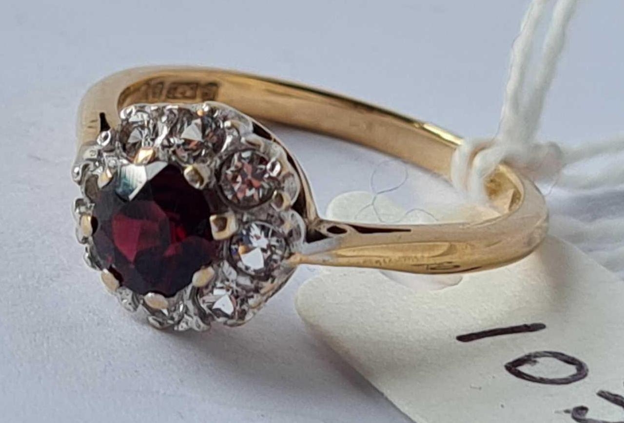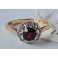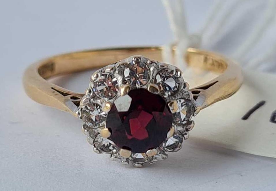 A garnet and white stone cluster ring 9ct size O - 2.6 gms