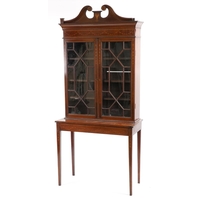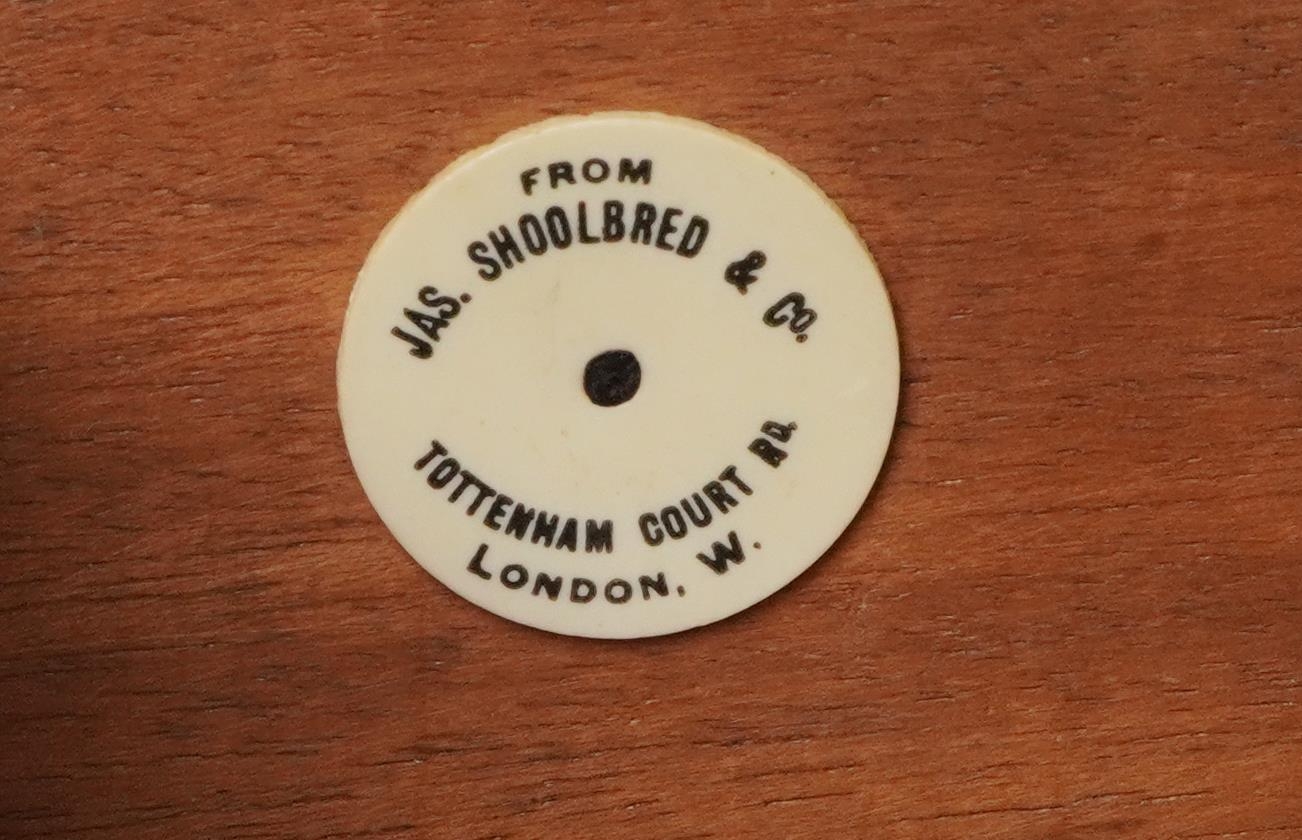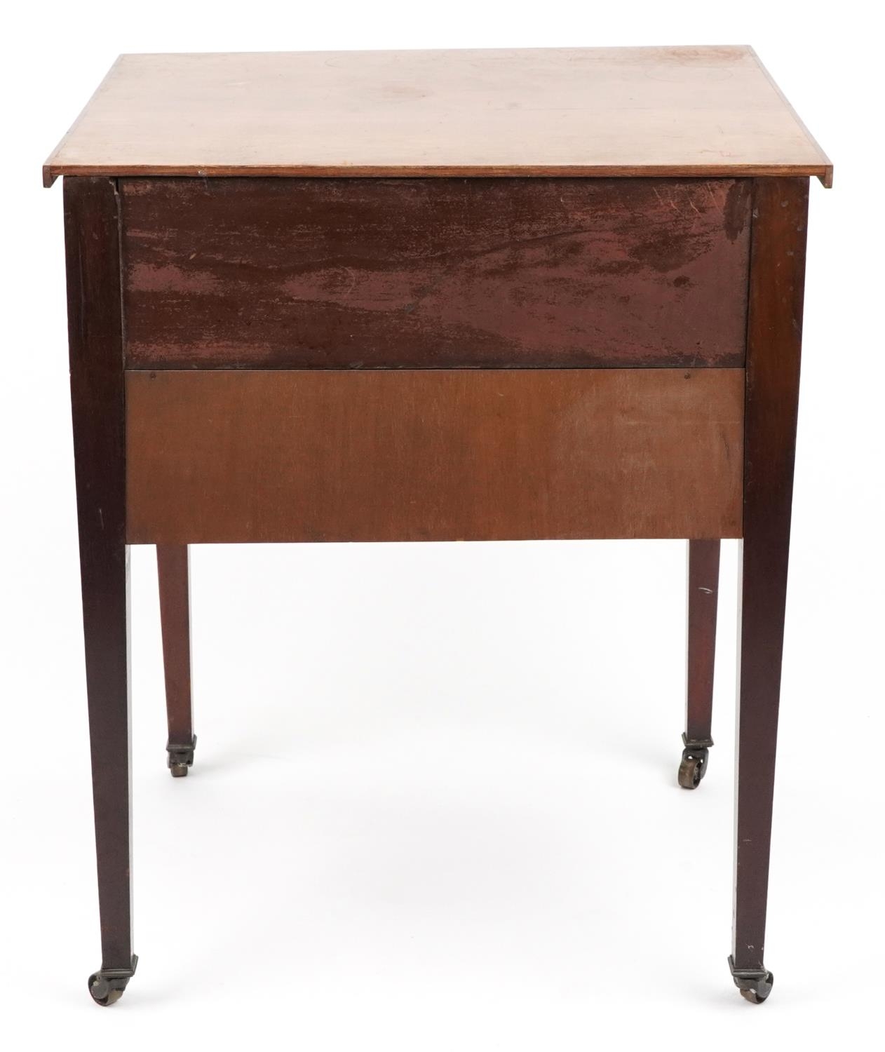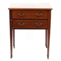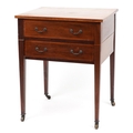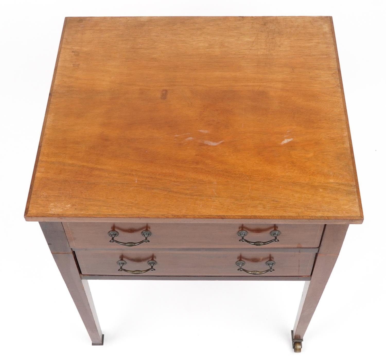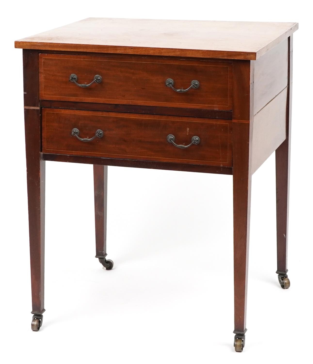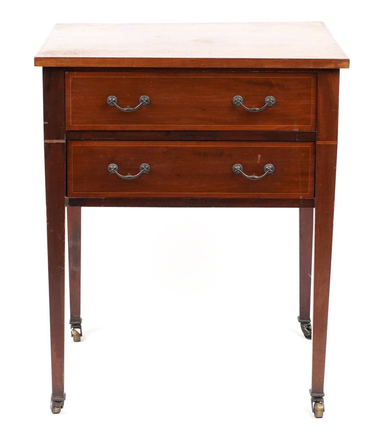 Jas Shoolbred & Co, Edwardian inlaid mahogany two drawer side table on tapering legs, 76cm H x 62cm W x 53.5D
