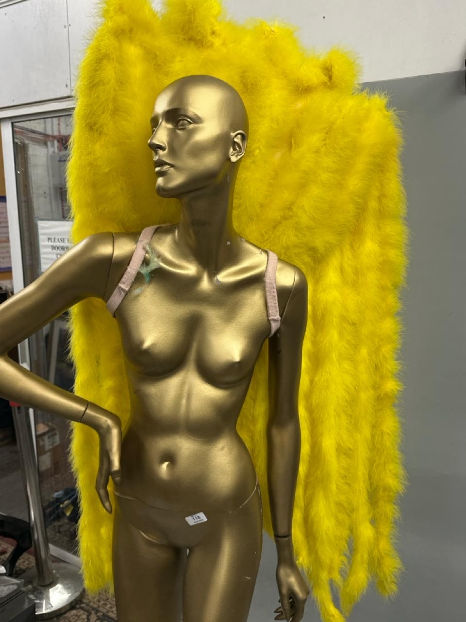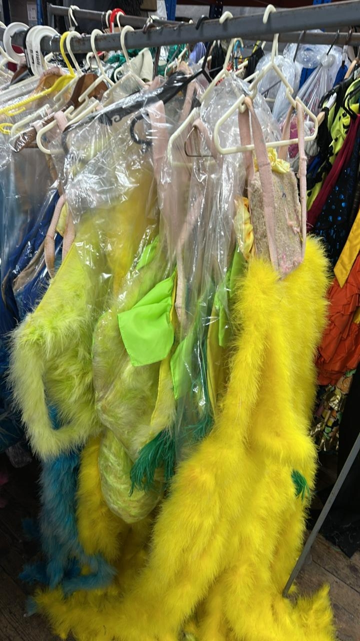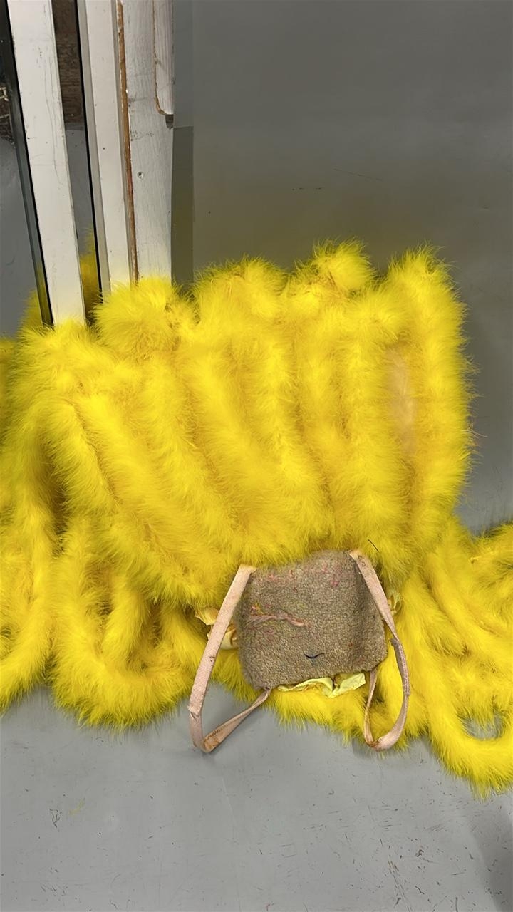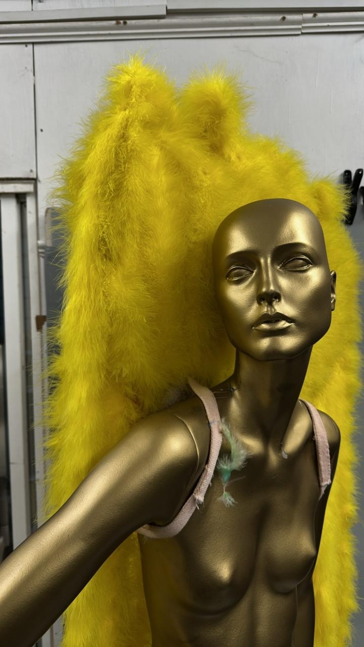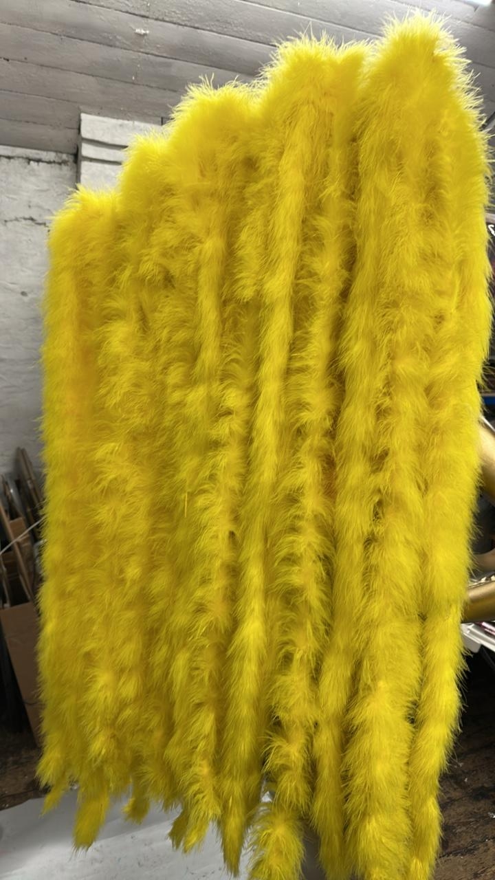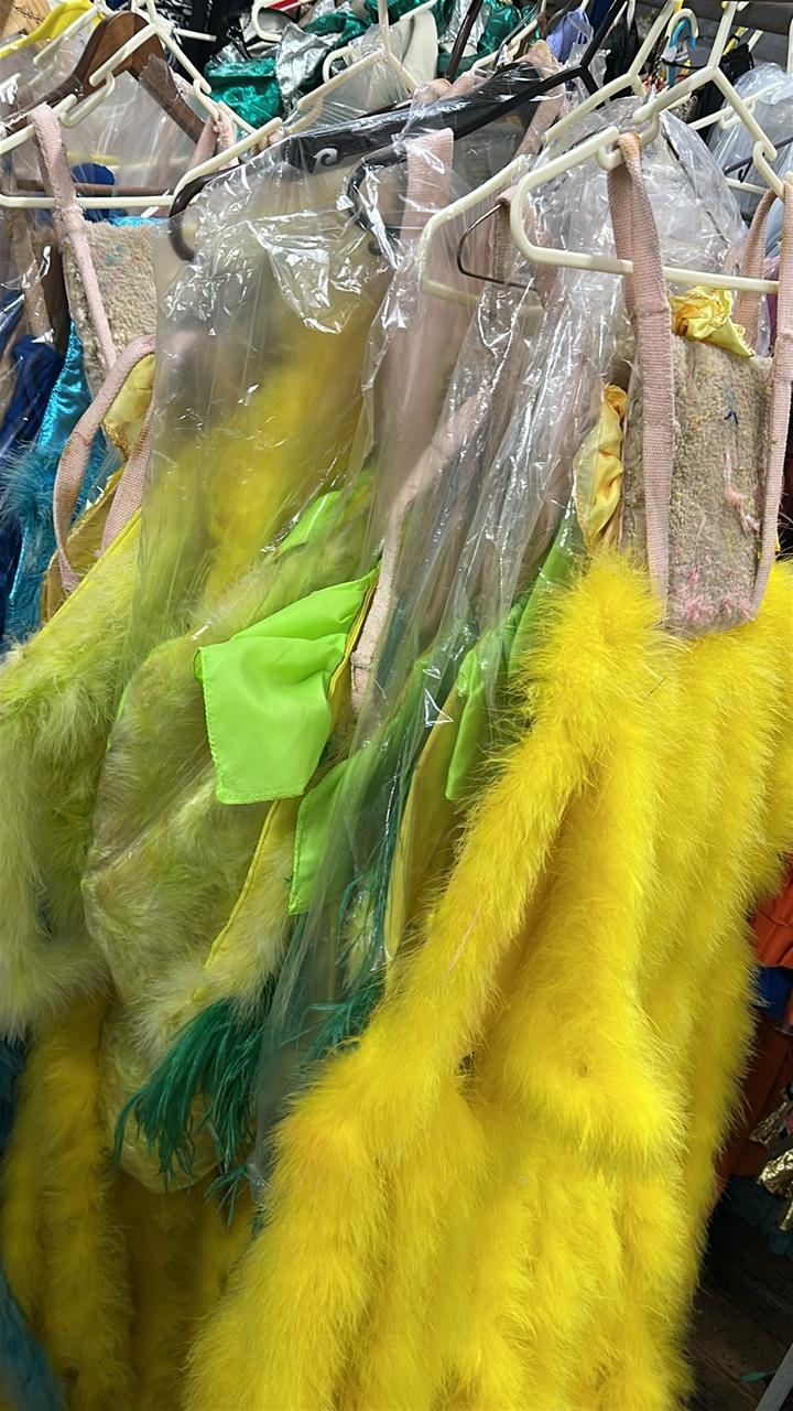 Ten stage used showgirl yellow / yellow & green feather back pieces / Rail 4