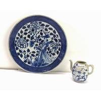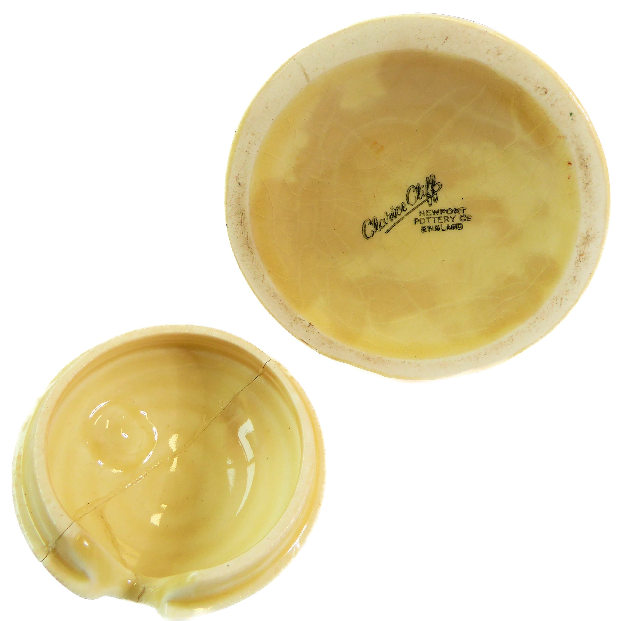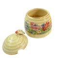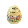 2. the Art Deco period Clarice Cliff honey pot decorated with flowers and with open-winged bee finial. (The cover in two and now re-affixed.)