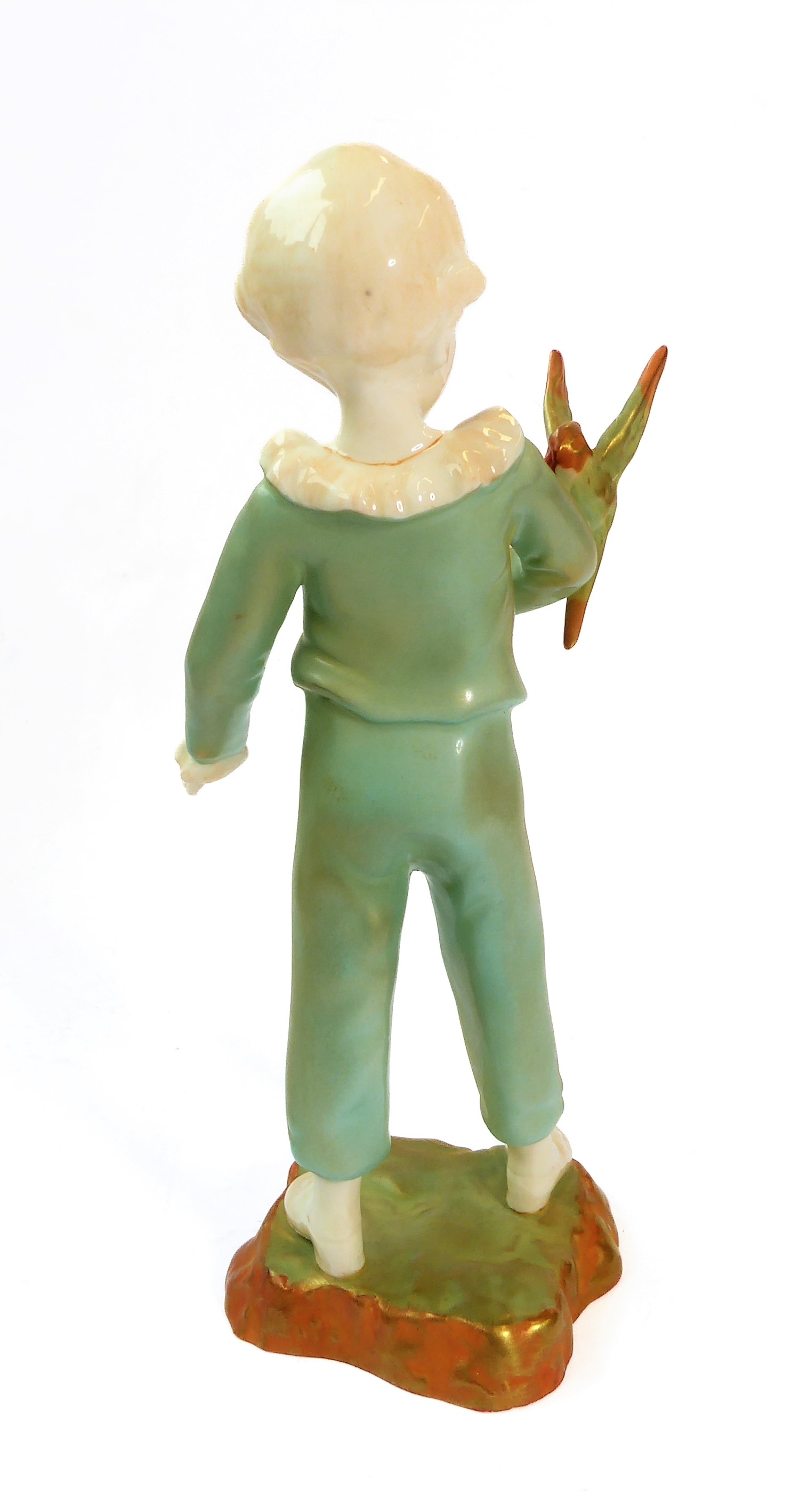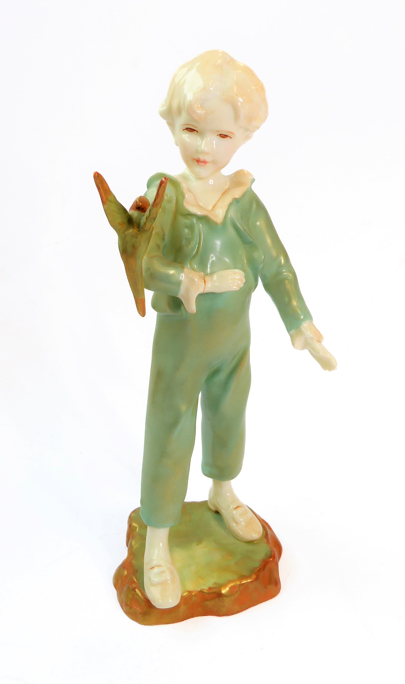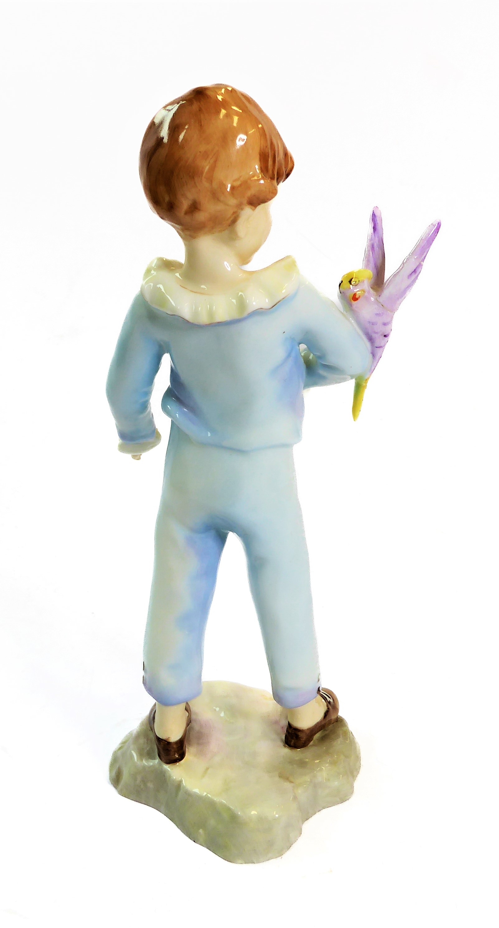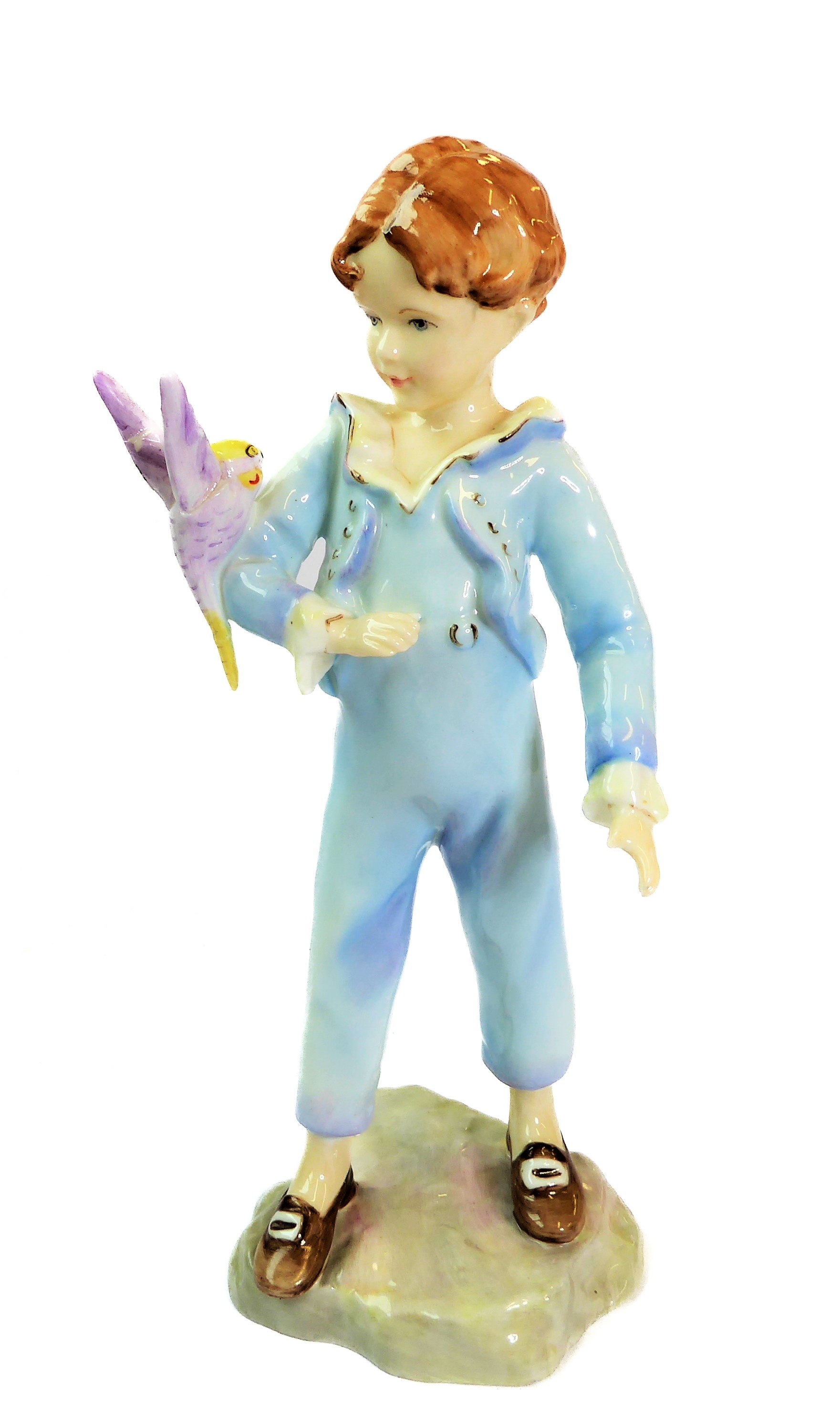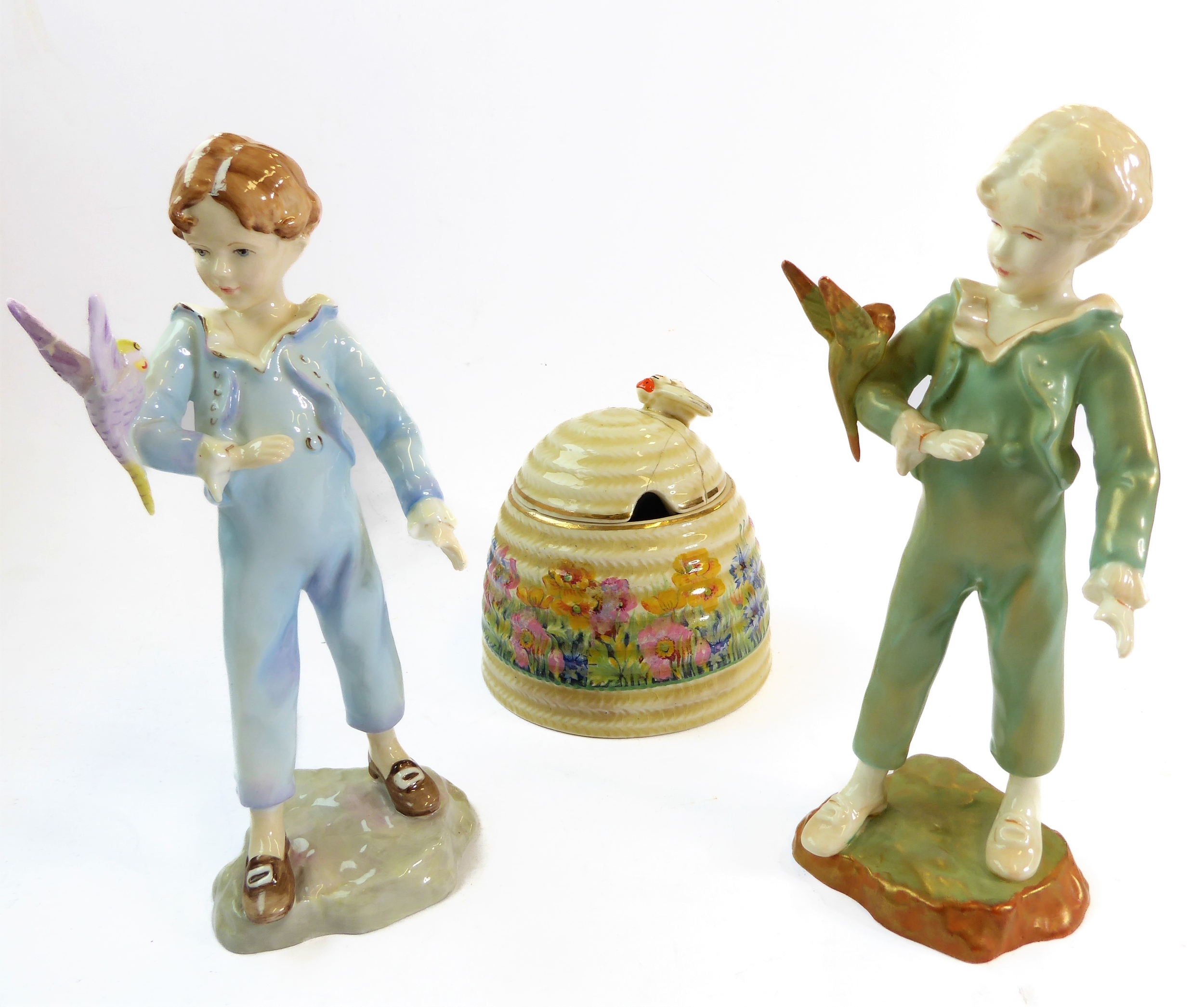 Two Royal Doulton figures modelled by F.G. Doughty and a Clarice Cliff honey pot:
