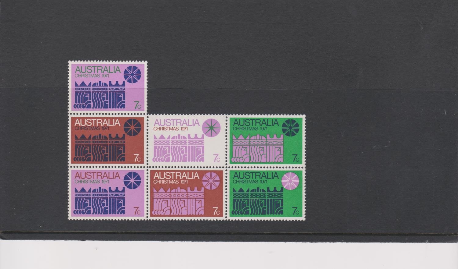 Australia 1971 Xmas block of 7 SG 498-504 u/m. (7)