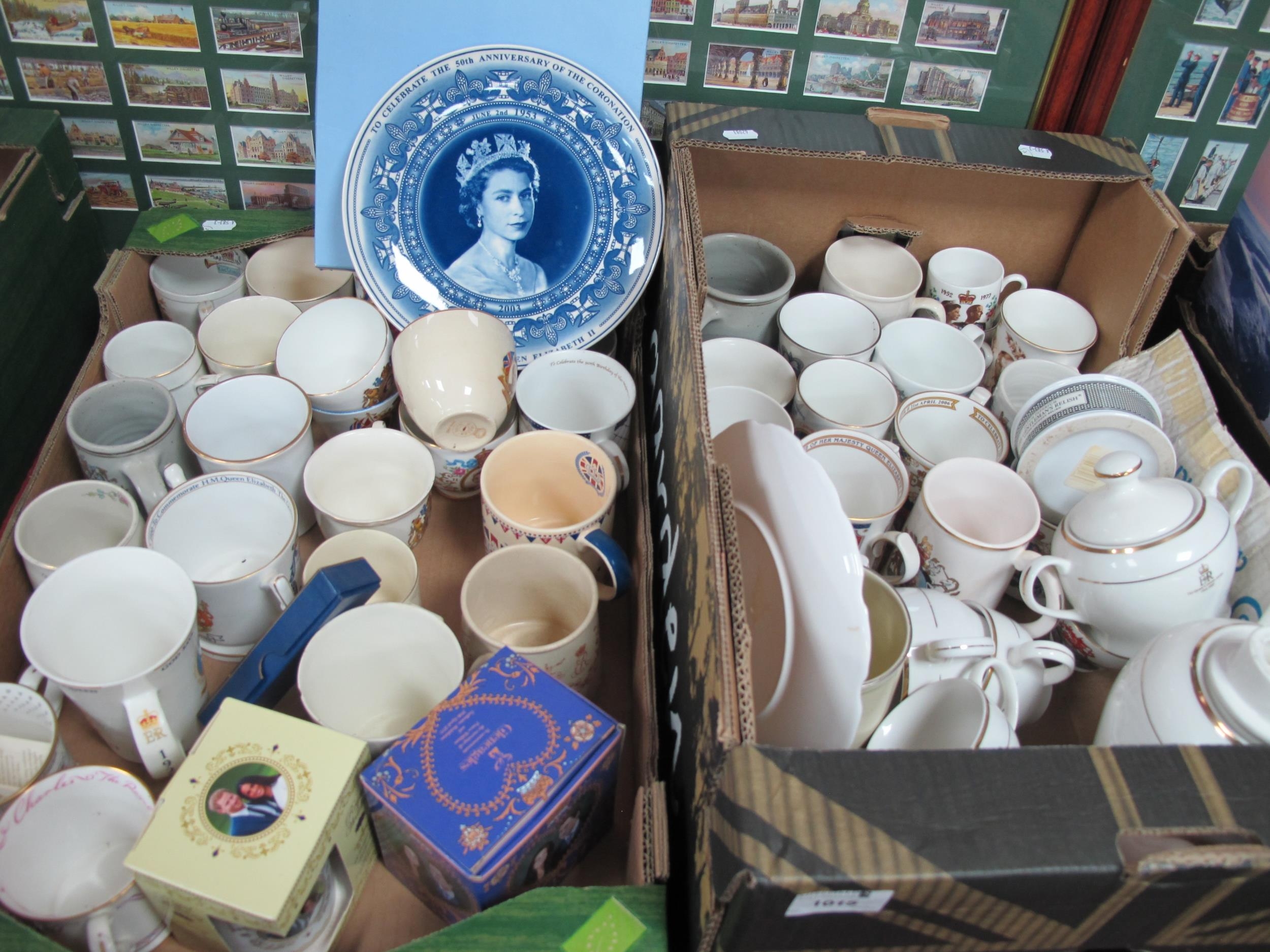 A Collection of Royal Commemorative Mugs, Queen Victoria to present day, plus a QEII commemorative tea service:- Two Boxes.