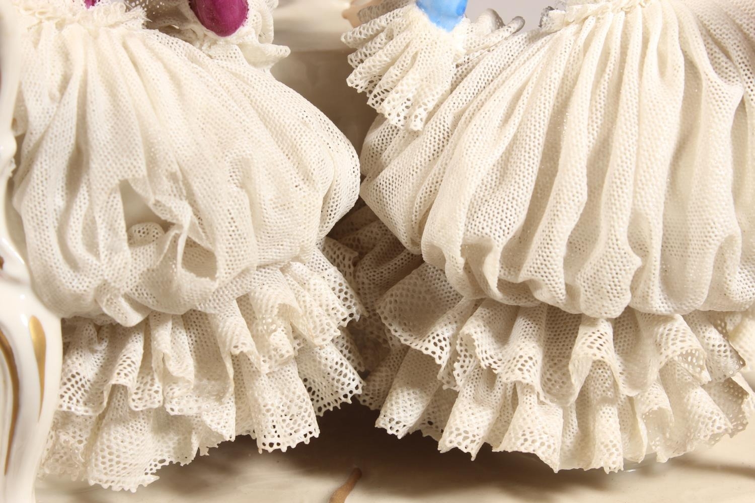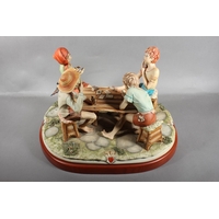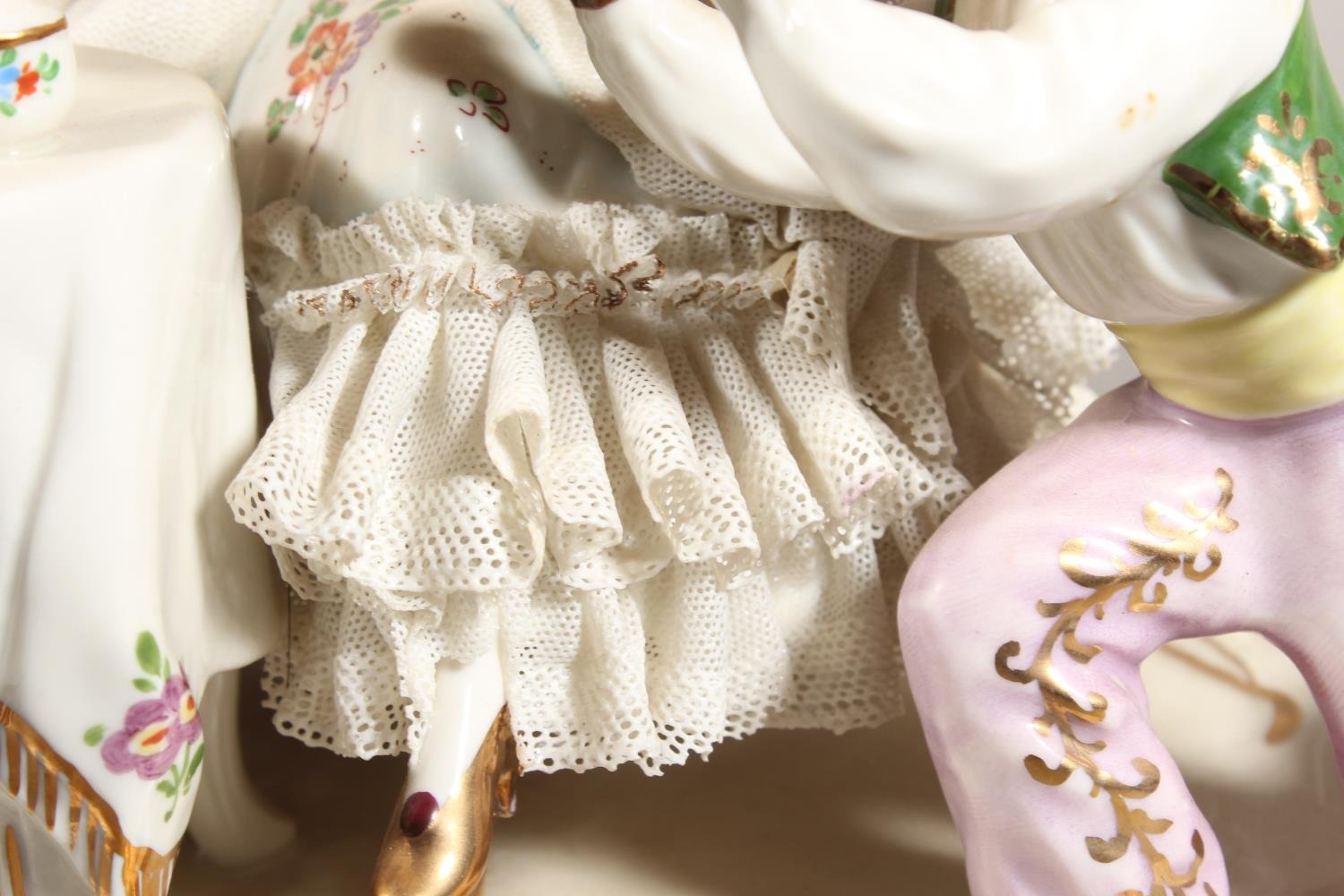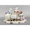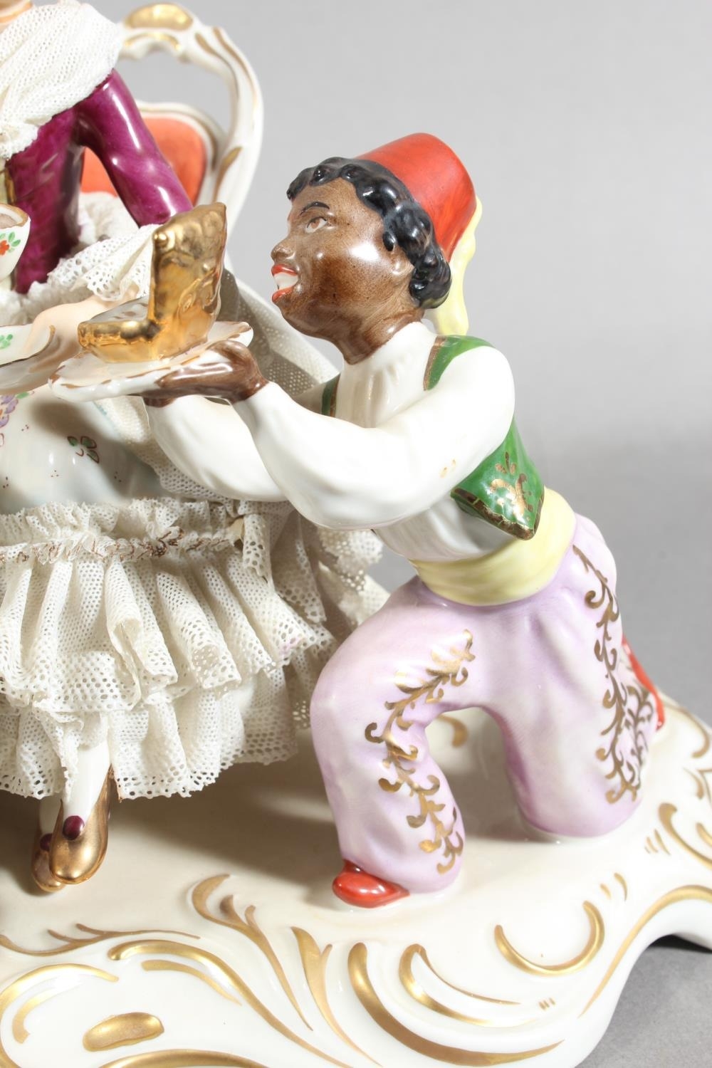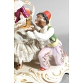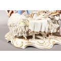 Dresden of Germany figure group depicting a Victorian tea scene.