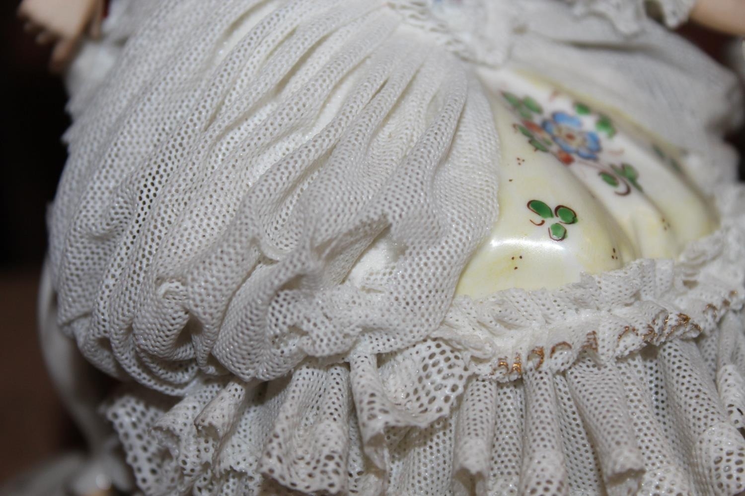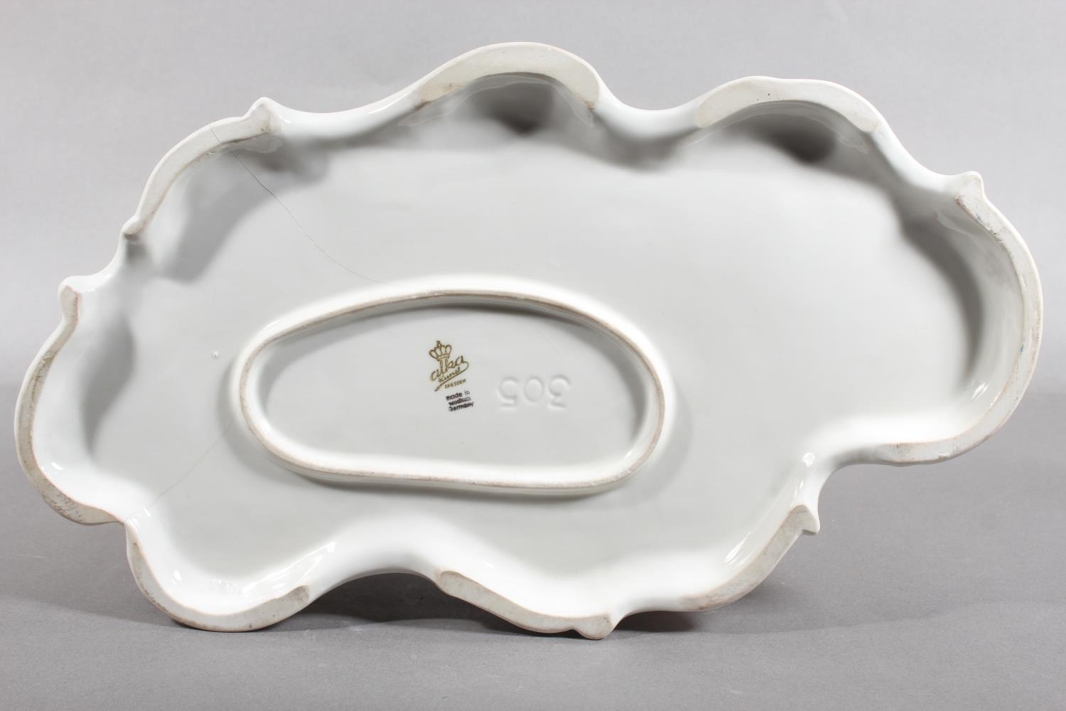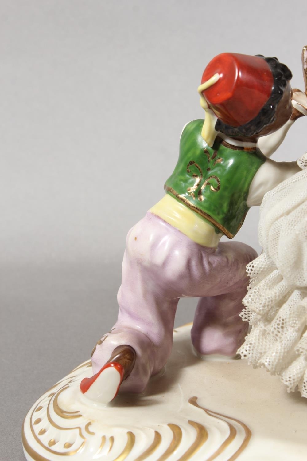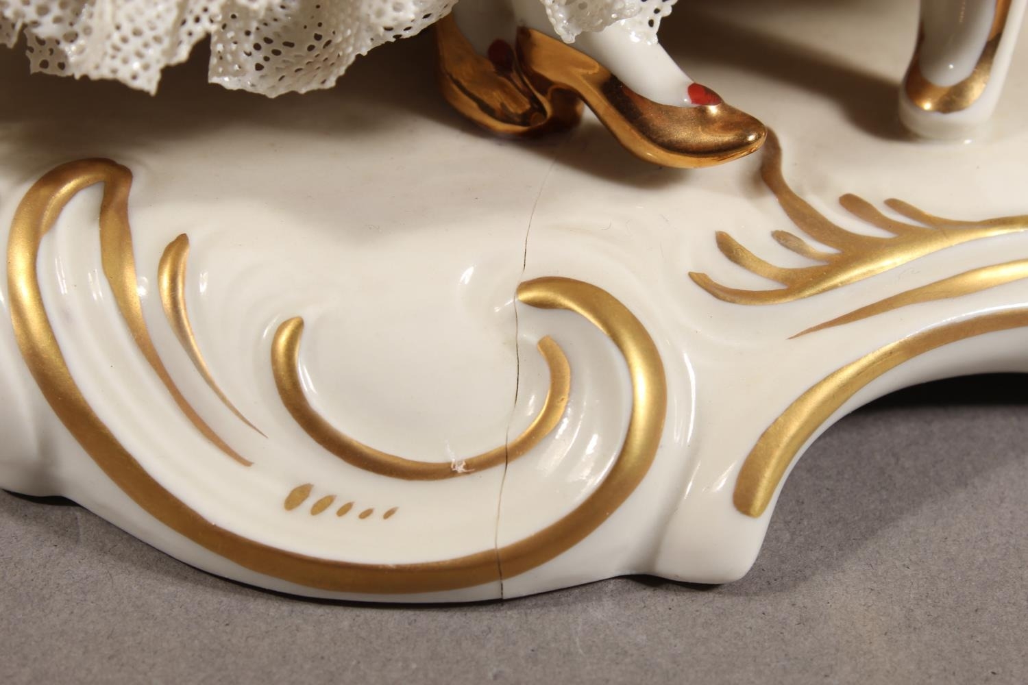 Dresden of Germany figure group depicting a Victorian tea scene.
