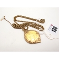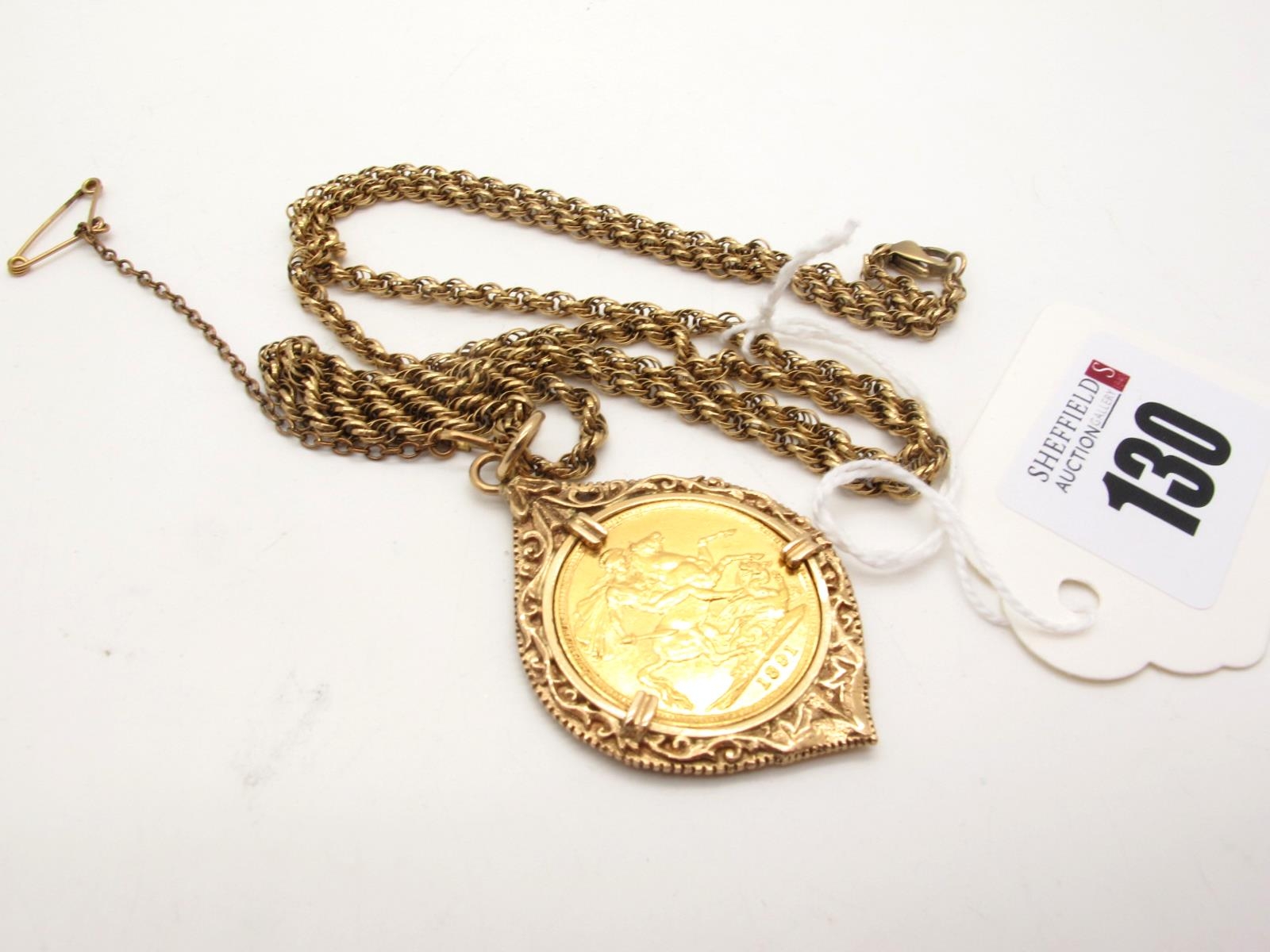 A Victoria Sovereign, 1891 (S) loose(?) set within decorative pendant mount, suspended on a 9ct gold ropetwist chain (overall weight 22grams).