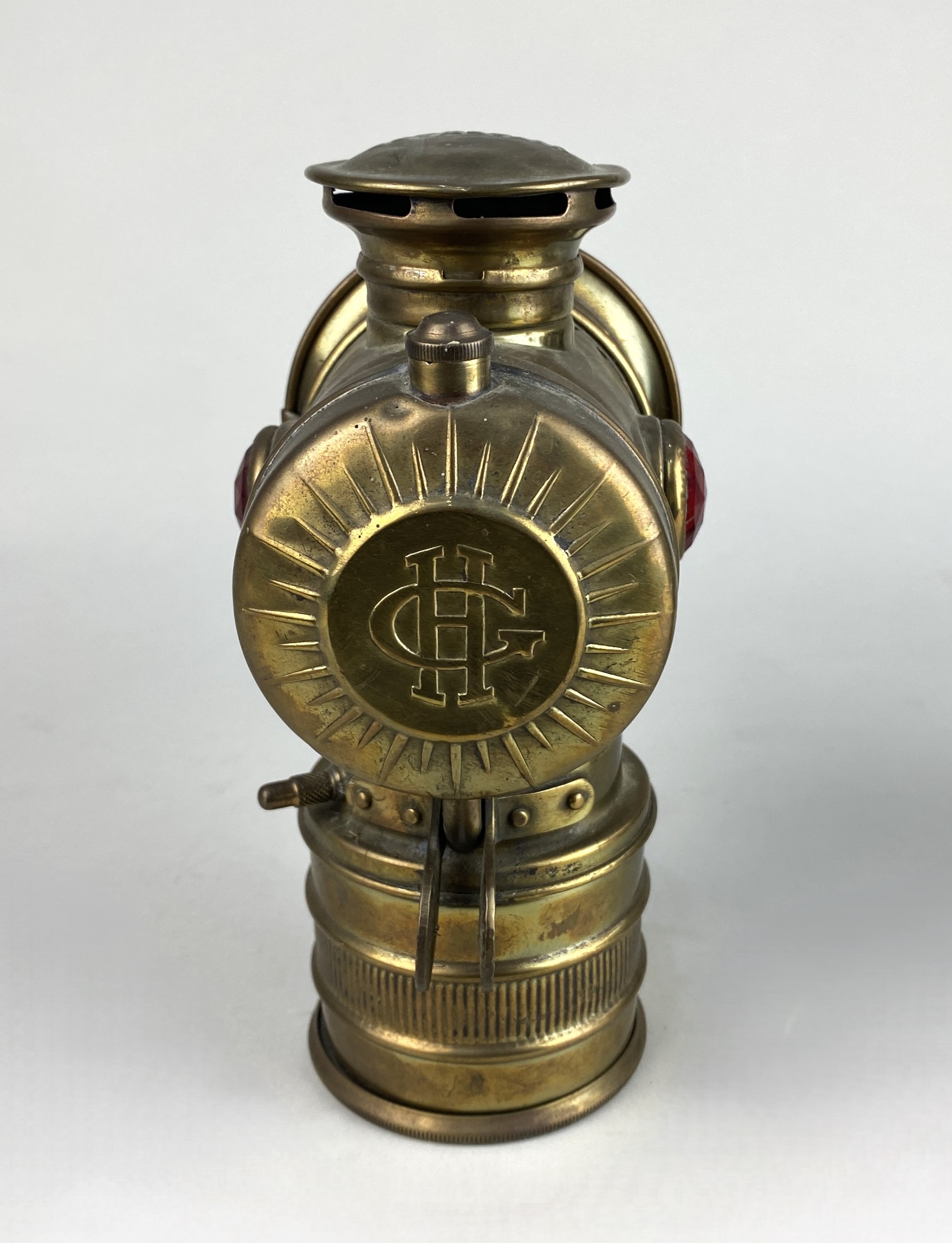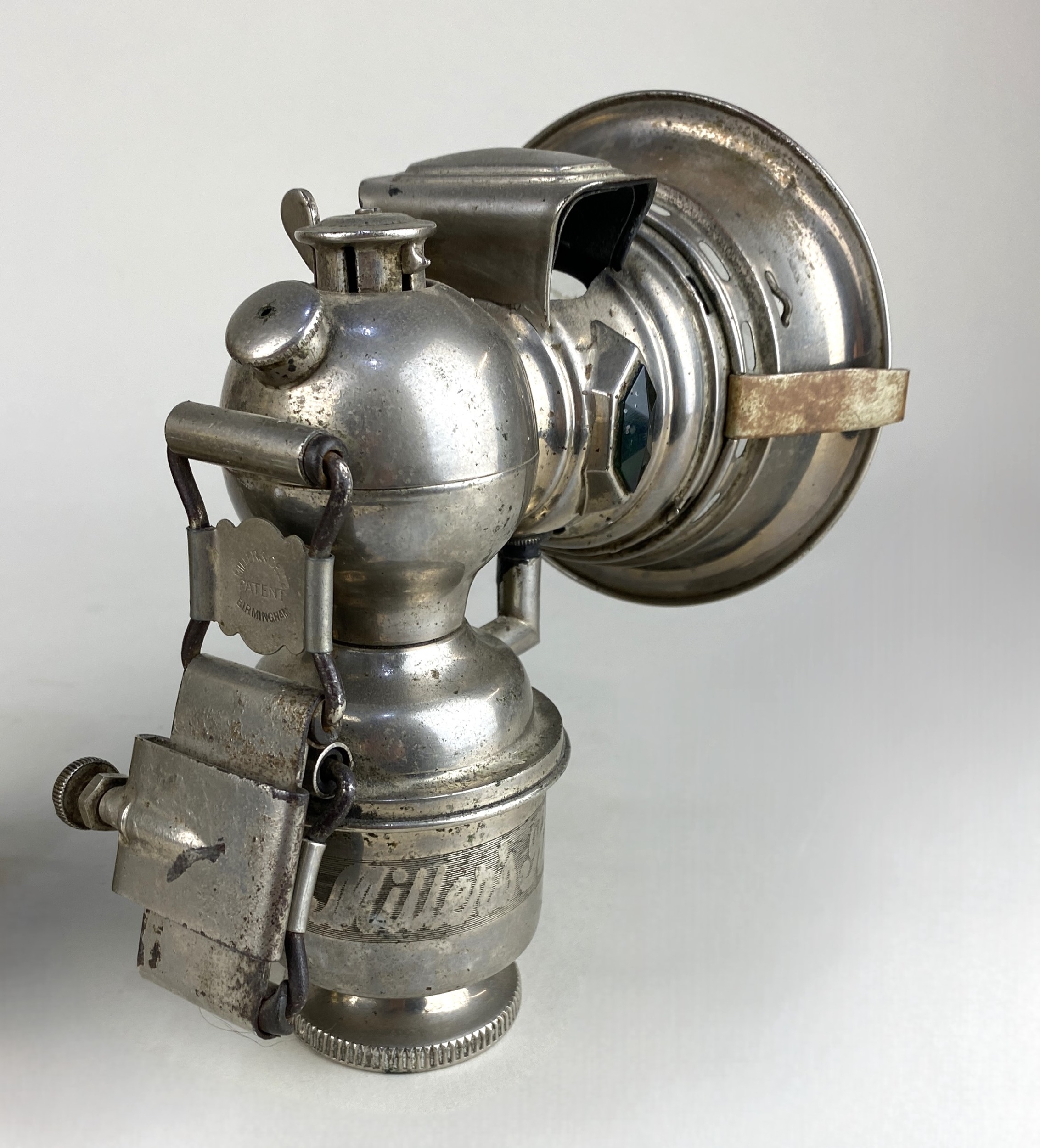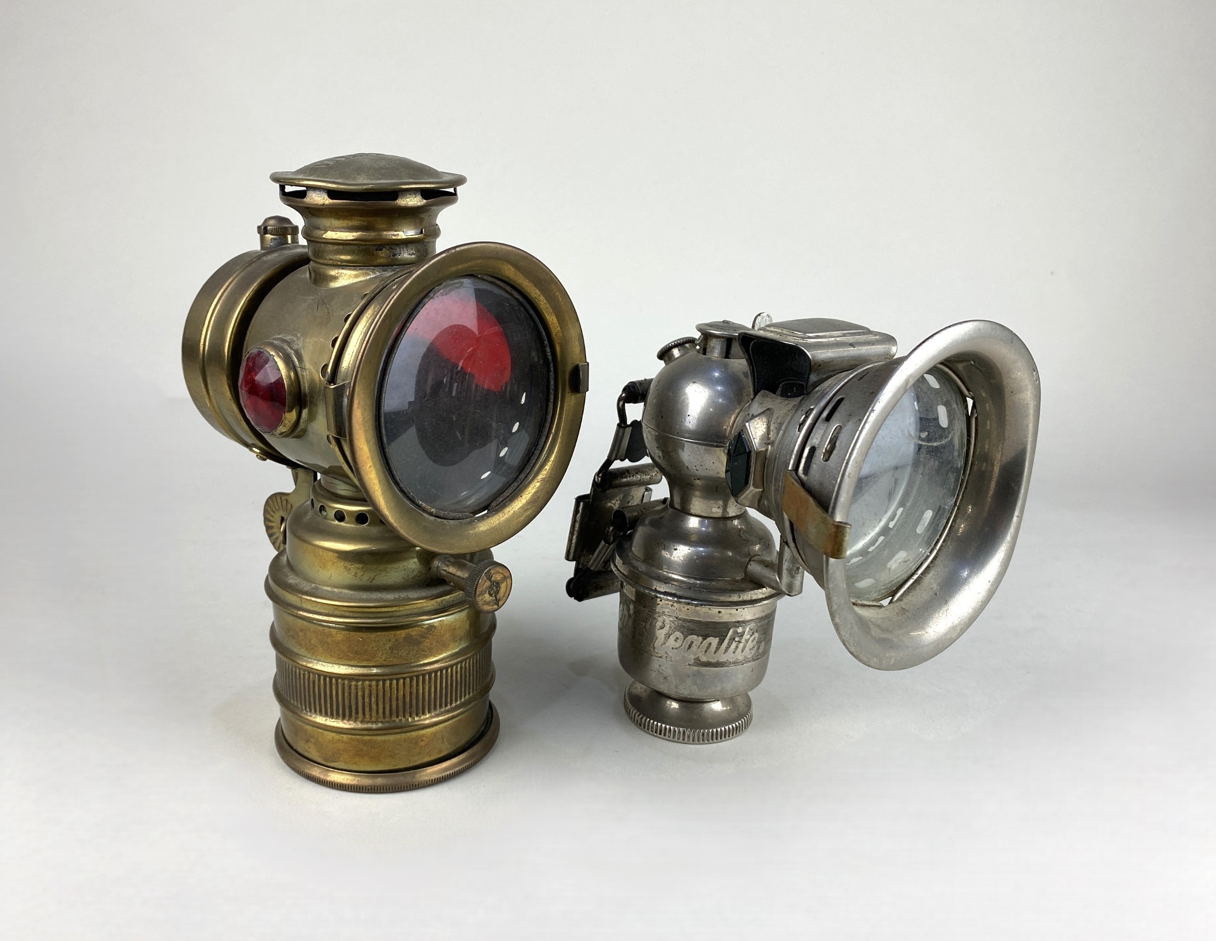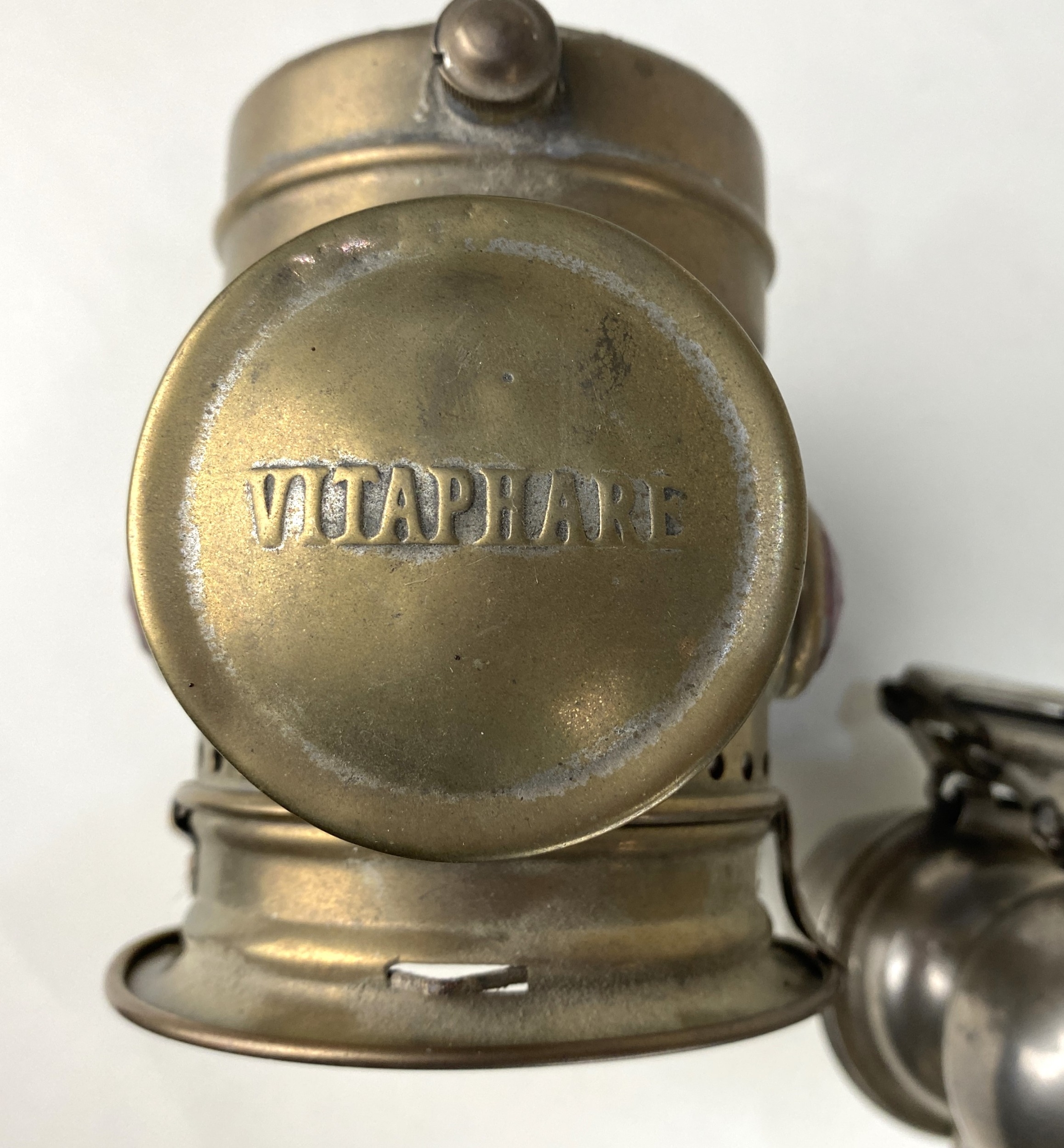 Automobilia: comprising a Miller & Co of Birmingham 'Miller's Regalite' lamp, 17cm high, and a French Vitaphare lamp, 20cm high, (2).