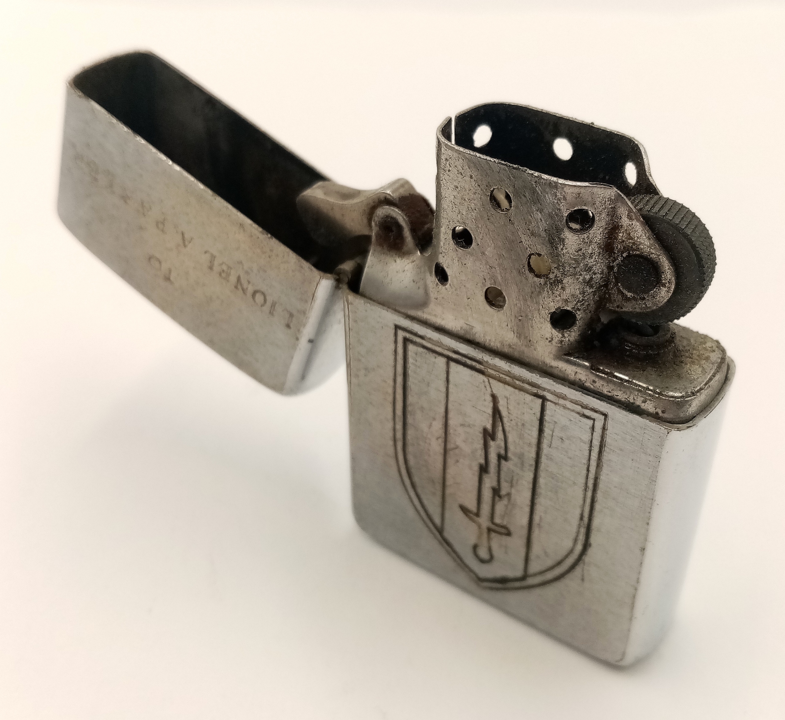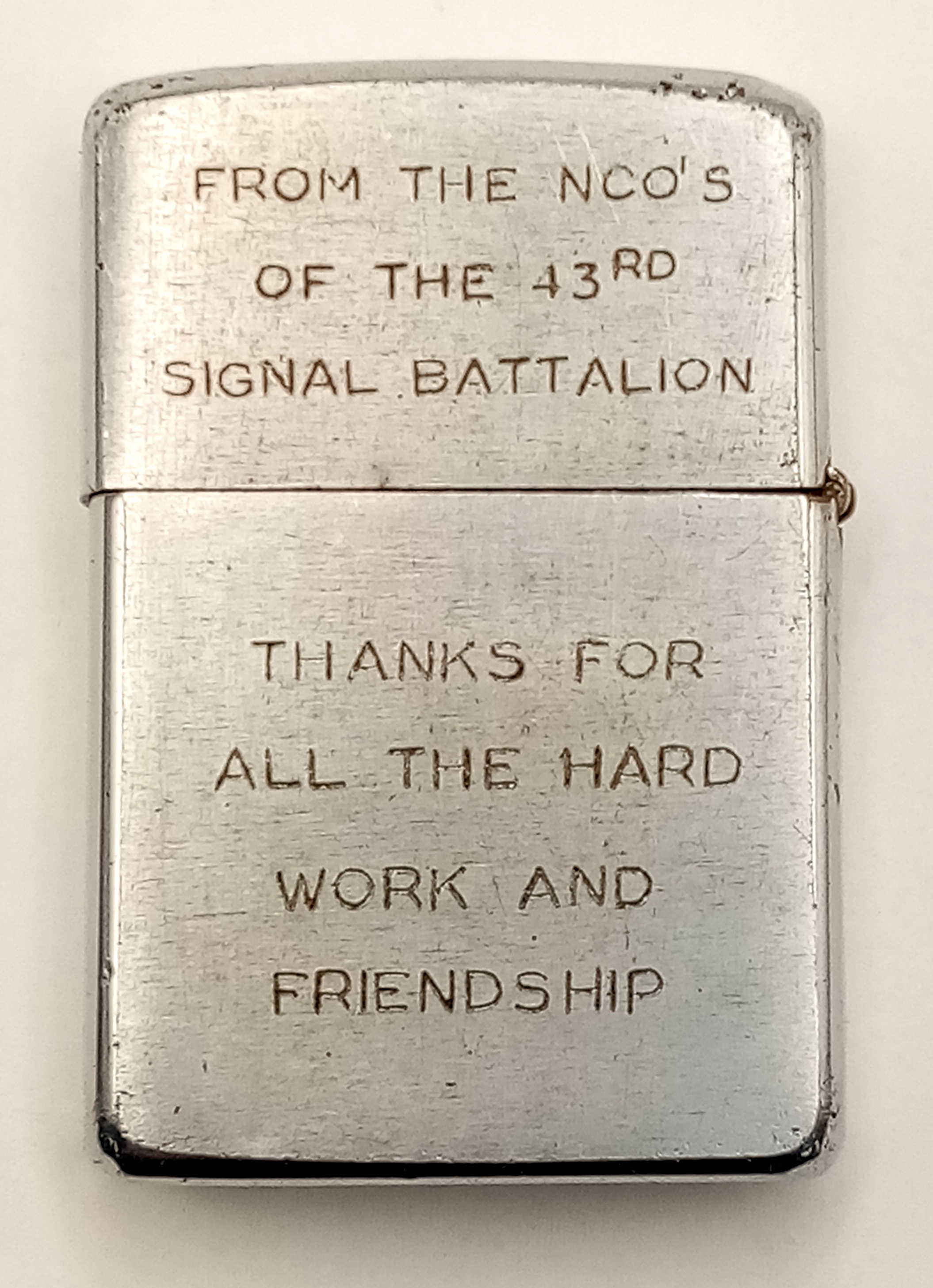Vietnam War 1969 Date Coded Zippo Lighter. Engraved with the 1st US Signals Brigade Logo and dedicated to a soldier in the 43rd Signal Bn. UK Mainland Shipping Only