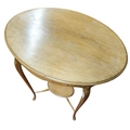 A very neat Edwardian Blond Mahogany oval Lamp Table with single frieze drawer.