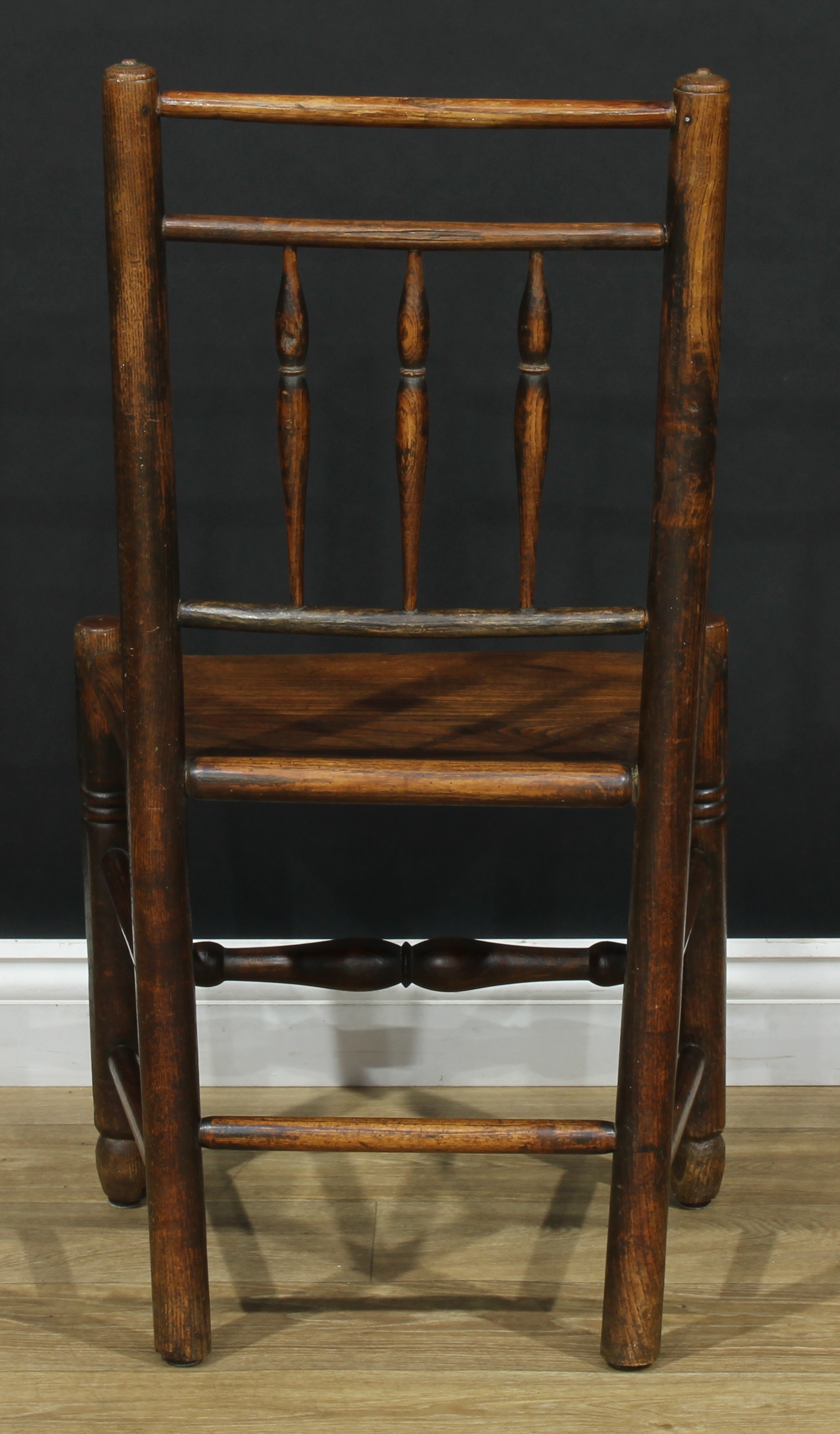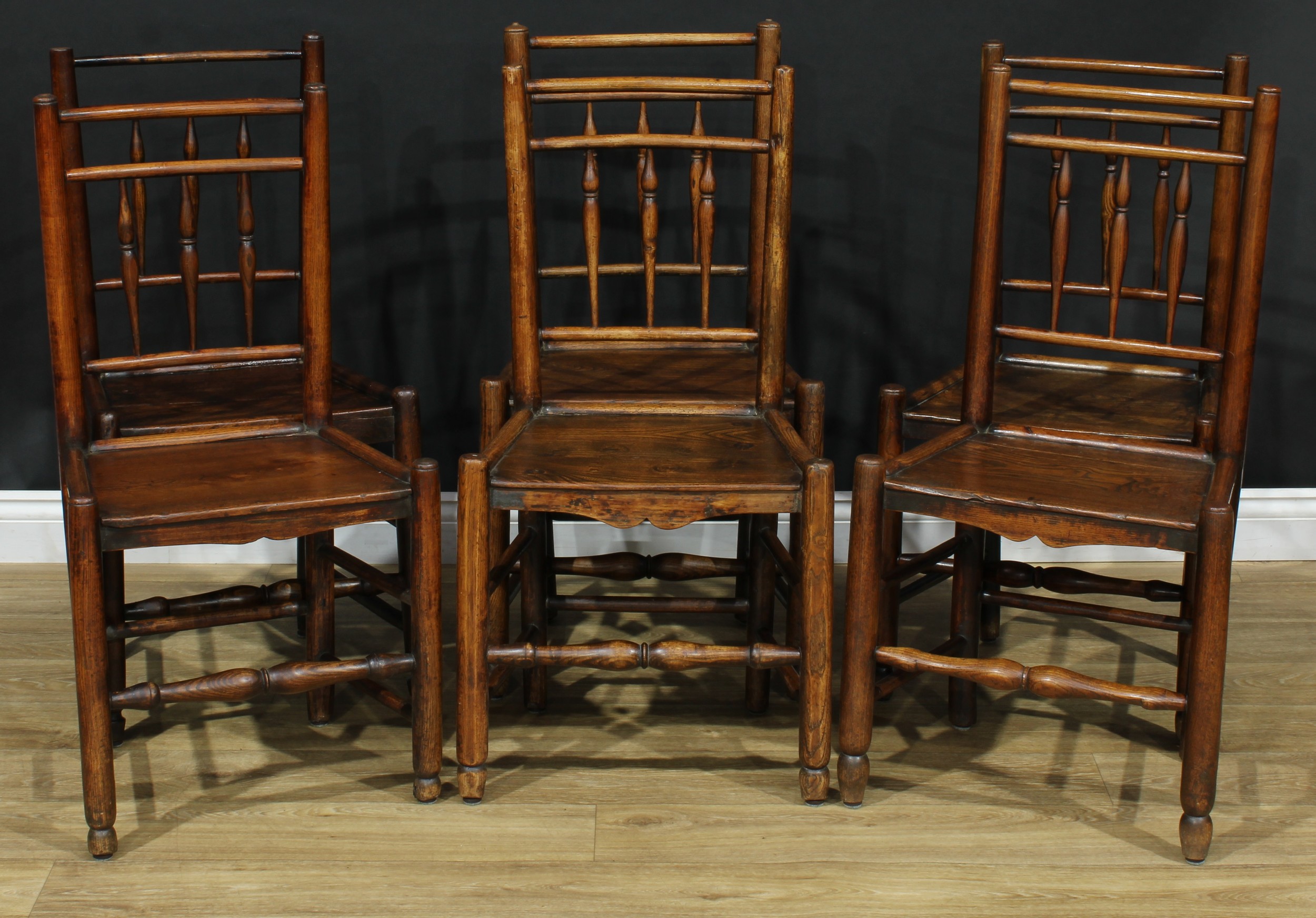 Six 19th century Philip Clissett design ash and elm country chairs, probably West Midlands, one 87.5cm high, 46cm wide, the seat 31cm deep (6)