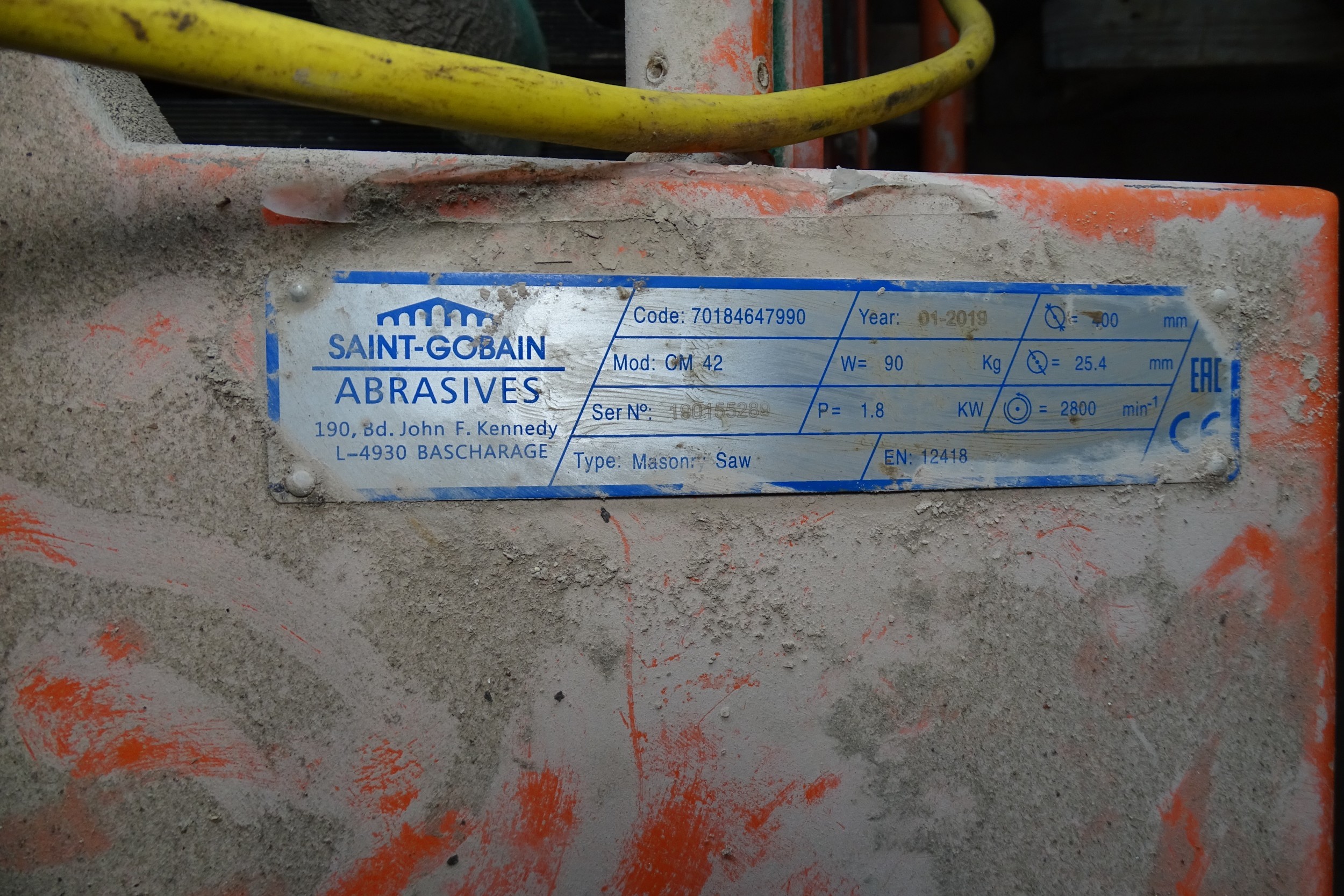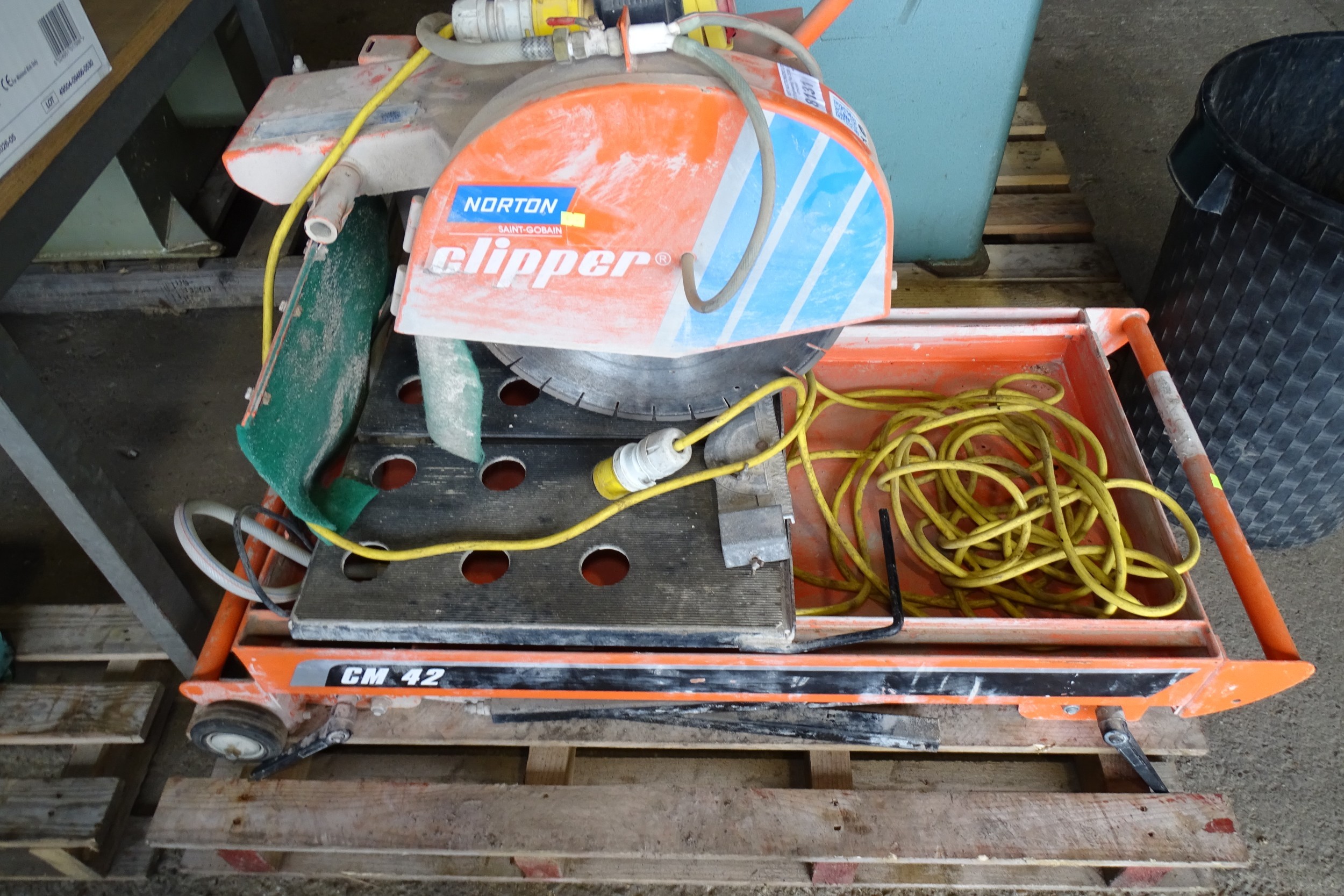 1 x Masonry/Brick Saw by Norton Clipper CM42 SN: 190155280, YOM 01/2019 on a wheeled/folding stand - 110V
