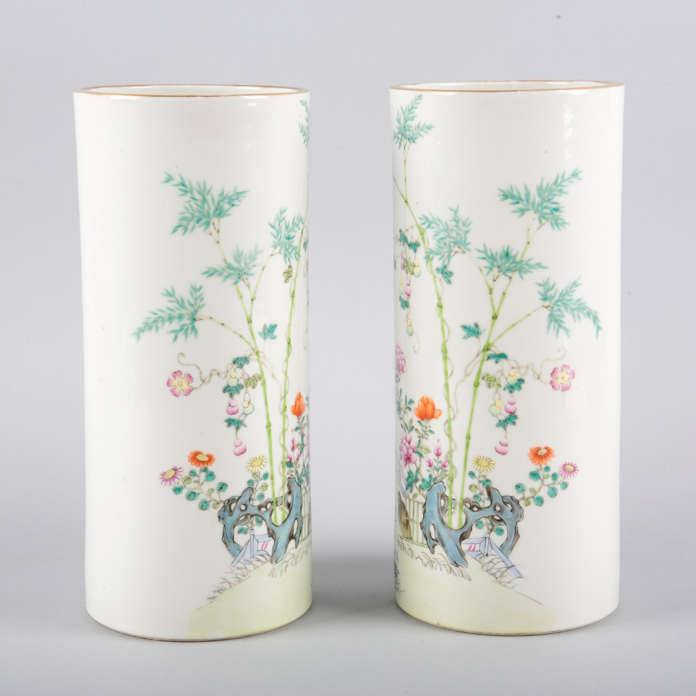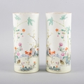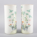 A PAIR OF CHINESE PORCELAIN CYLINDER VASES OR HAT STANDS
