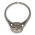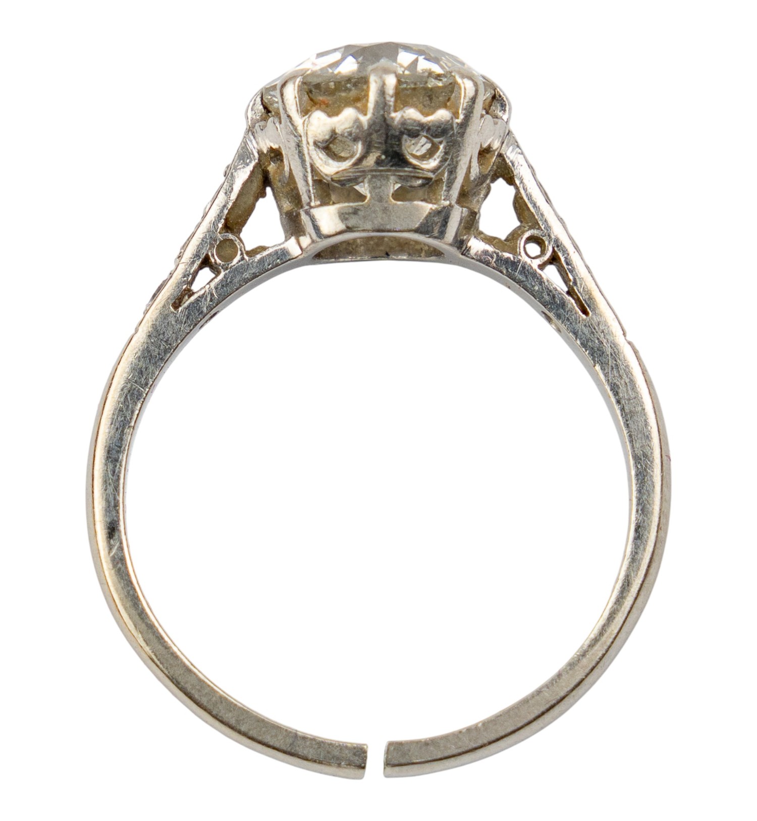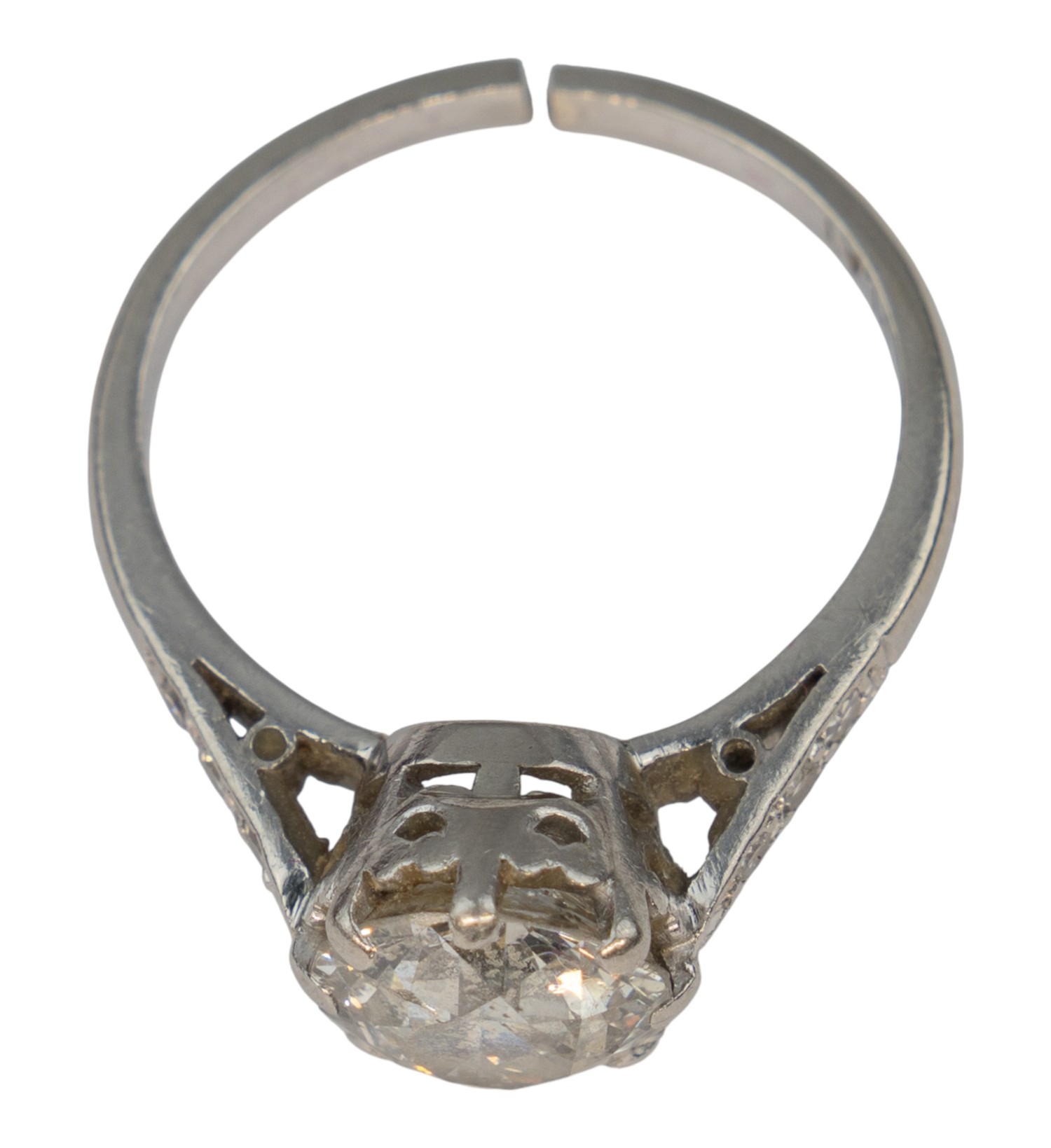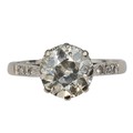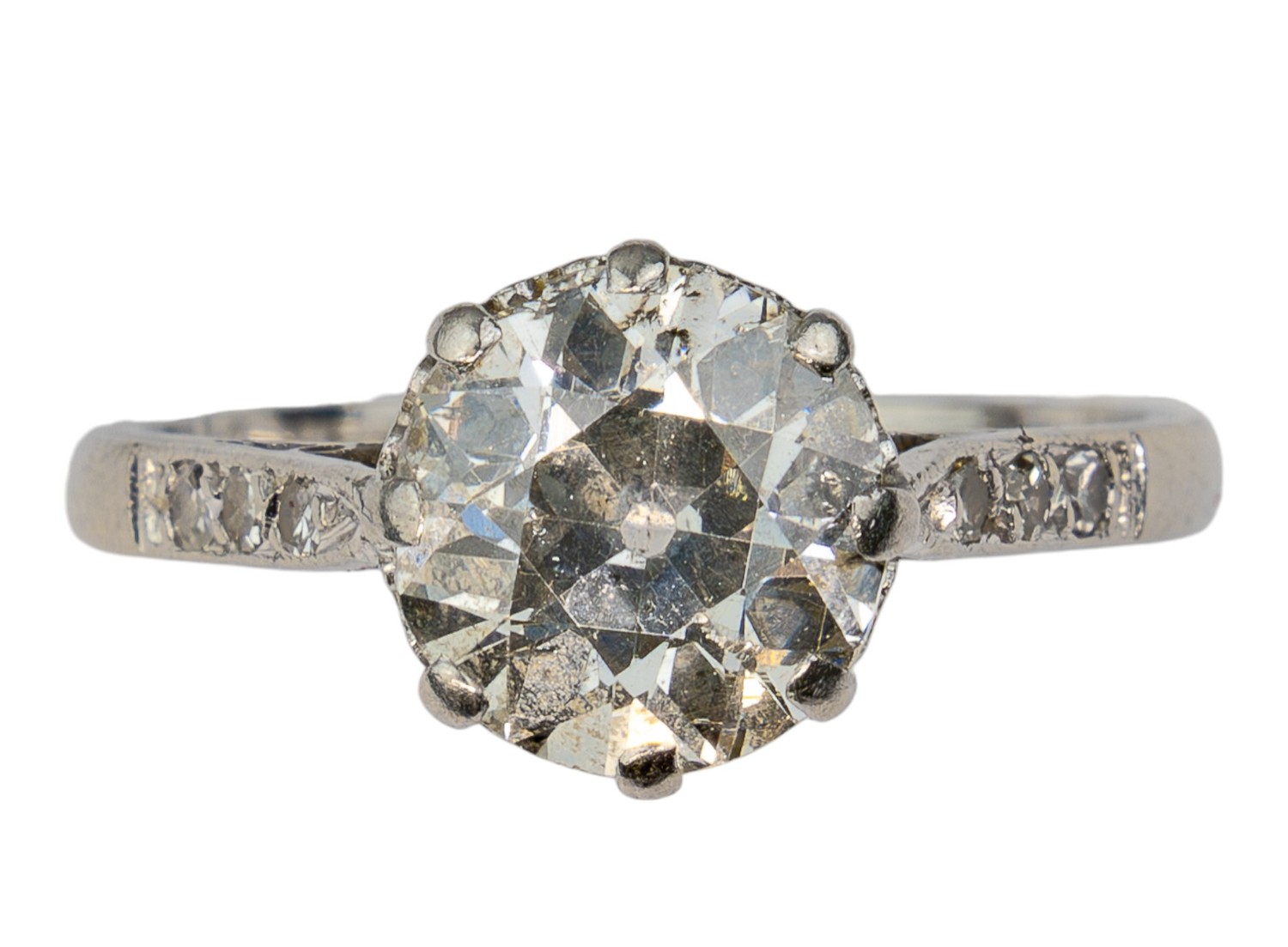 With small diamond shoulders. The central stone weighing approx. 2 cts.
