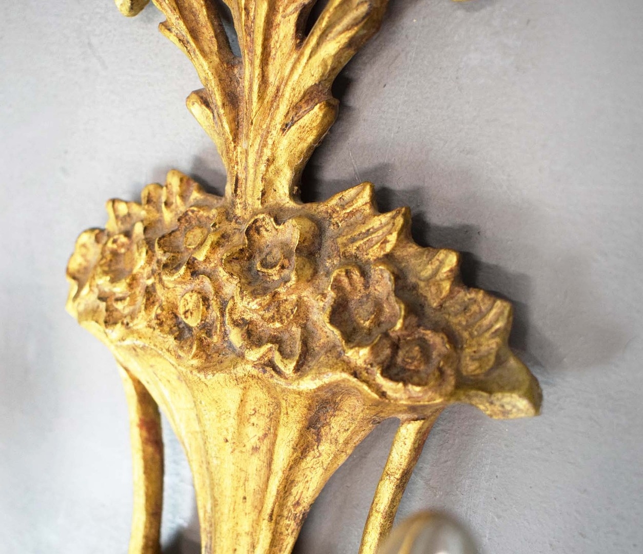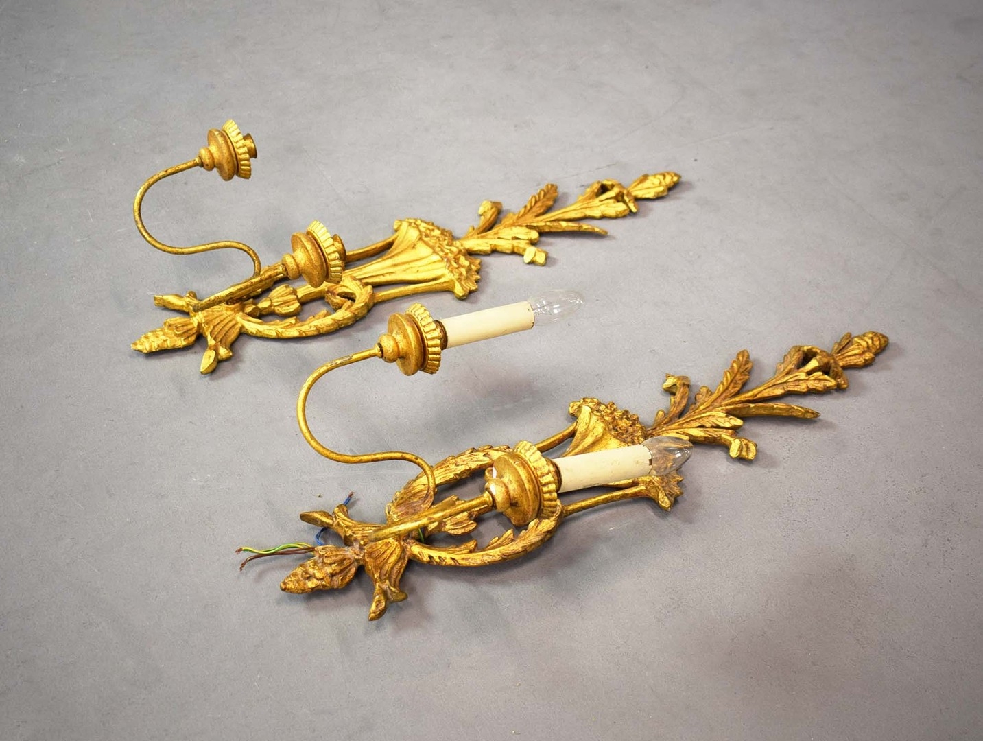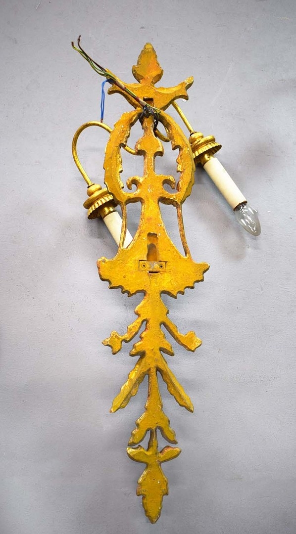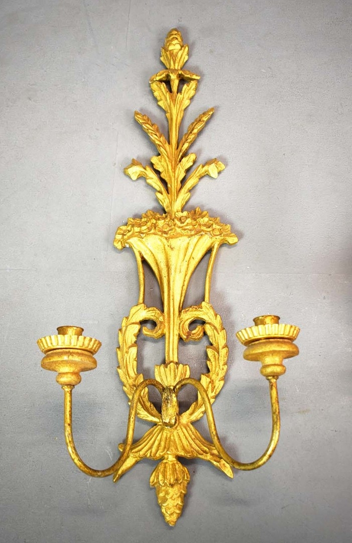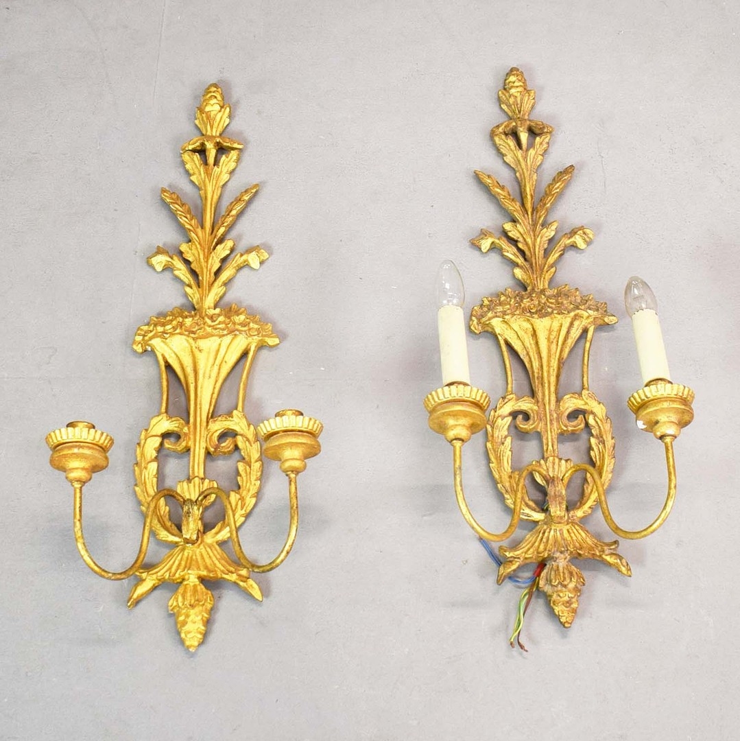 WALL SCONCES, A PAIR, GILT (2). Victorian style each 75cm t x 28cm w, one electrified, one not (2).