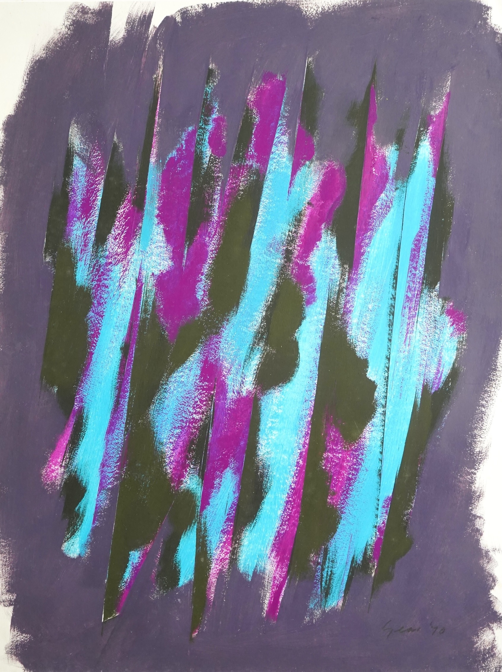 Scottish artist William Gear was born in Methil, Fife, and attended Edinburgh College of Art. In 1937 he studied briefly under Fernand Léger in Paris. After the war Gear worked in Germany, mounting exhibitions for the Allies. From 1948 to 1950 he lived in Paris, where he became affiliated to the COBRA movement. The COBRA artists (the initials stand for Copenhagen, Brussels and Amsterdam, the home cities of many of the group's members), advocated a gestural, near abstract style of painting, influenced by primitivism and the art of children.