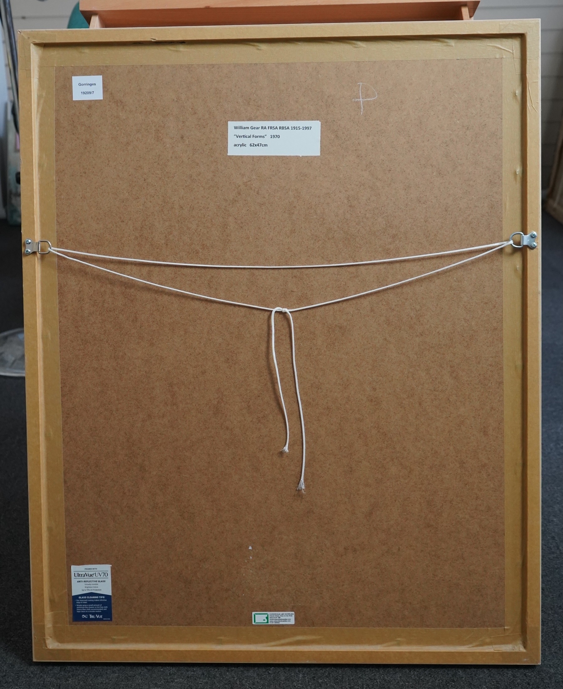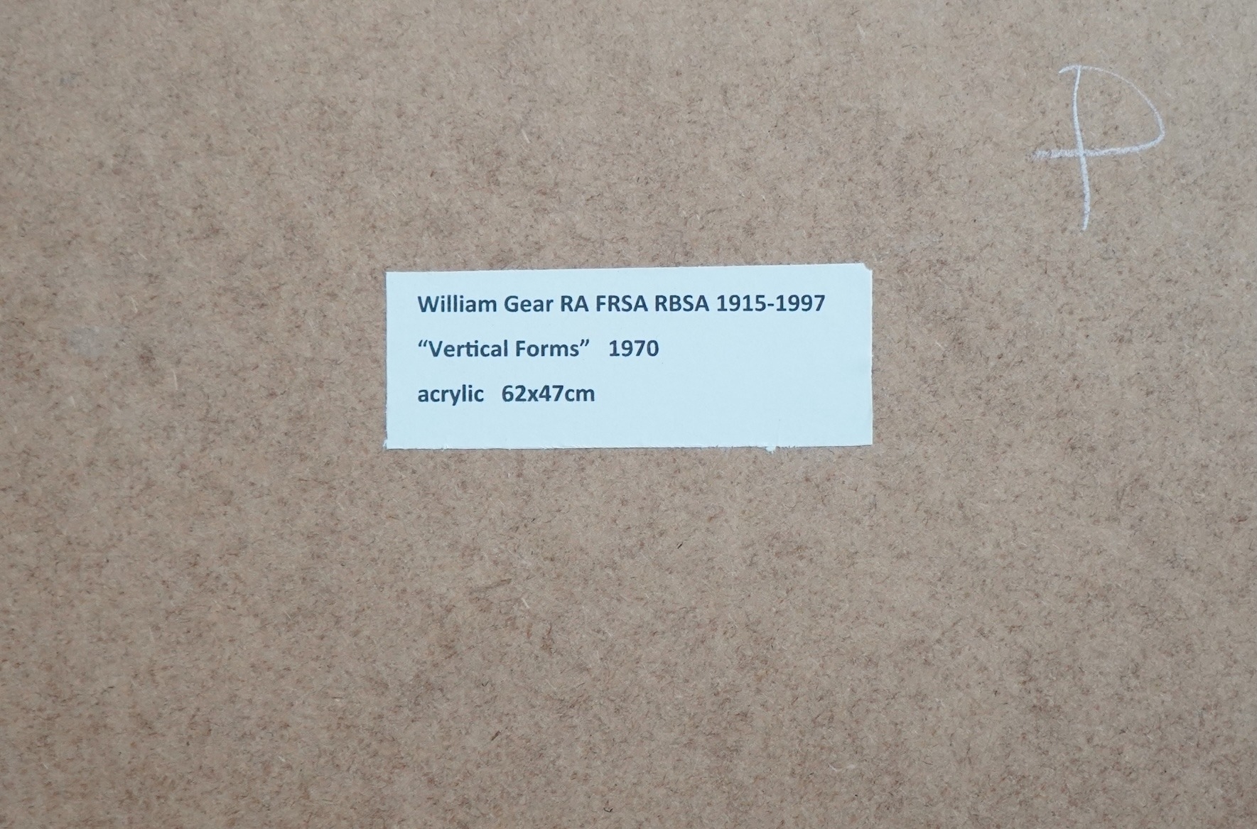 In 1958, Gear was appointed curator of Towner Art Gallery in Eastbourne. However, the local community was resistant to the Modernist art championed by Gear, and every purchase had to overcome fierce opposition. He later said of this time that “I won the battle, I was a casualty if you like, but I won the battle”. In 1960, two paintings by Gear were included in the Royal Academy Summer Exhibition - the first abstract works ever to be shown at the Academy, and which were met with much derision in the press. At the 1962 Summer Exhibition, his submissions were rejected by the RA Hanging Committee, prompting the sculptor FE McWilliam to resign in protest.