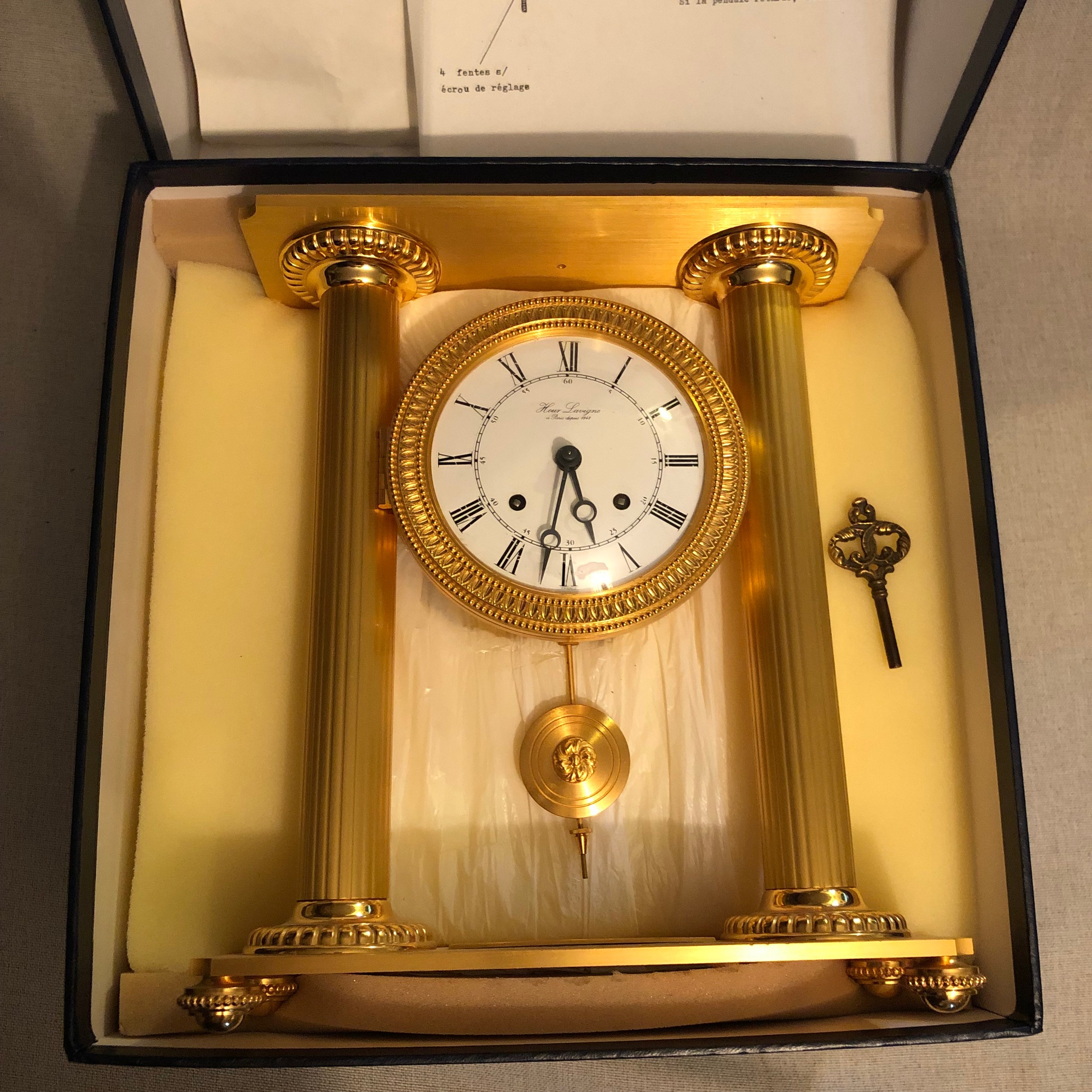 Hour Lavigne French 4 kg clock with Swiss mechanism and key complete with original box and instructions in good working order